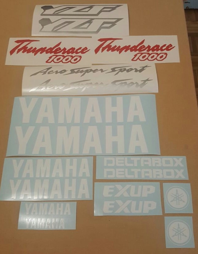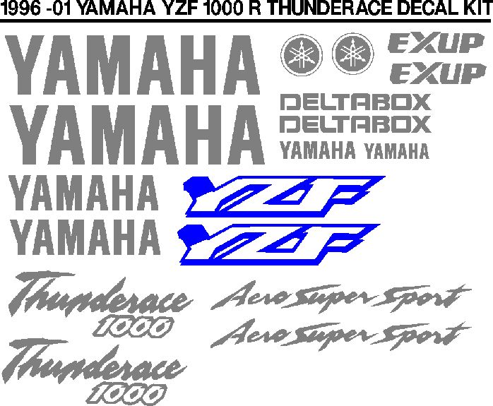 1996 Yamaha YZF 1000R Thunderace graphics stickers decals sets. The decals are precision machine cut from excellent top quality gloss vinyl that has a 5-7 year life span - UV resistant and fully waterproof. Our decals are suitable for clear coating for added protection ( recommeded ). Ideal for application after re-sprays or for replacement purposes. These are not low quality ink printed stickers that blur when washed or fade . We offer all colour options / combinations, OEM and custom sizes to ensure any decal design can fit any fairing area. Many other Yamaha kits are available, as well as a large selection of sponsor logo’s to compliment any kit. Please Call or Whatsapp 0762083114view more for details. Overnight courier available to your door from Durban with a waybill tracking number. All parcels are secured to ensure no damage in transit.
