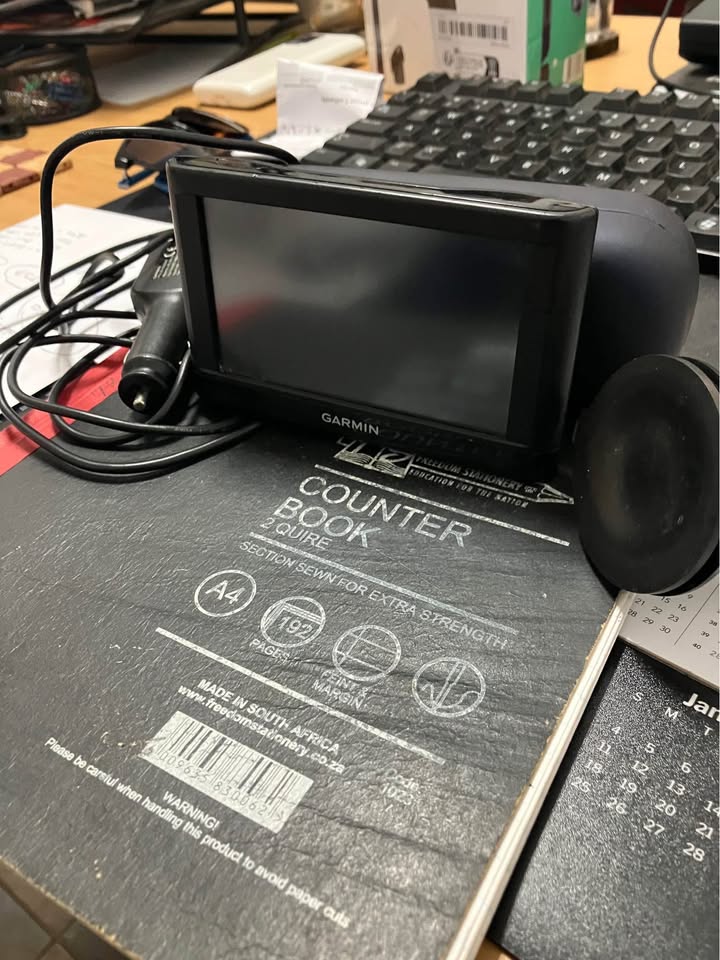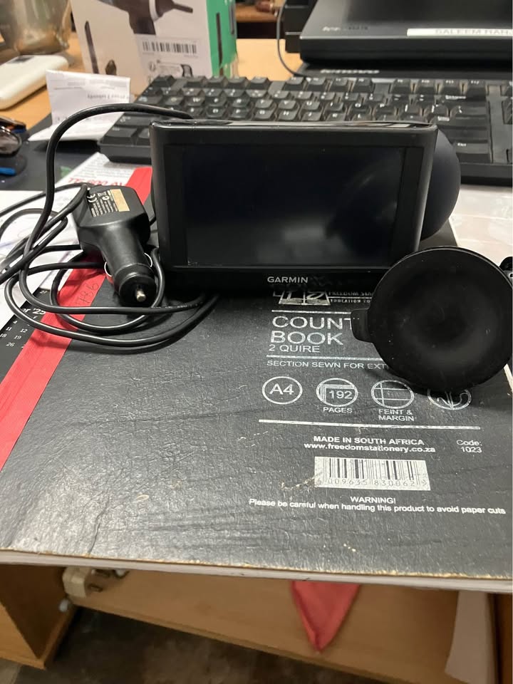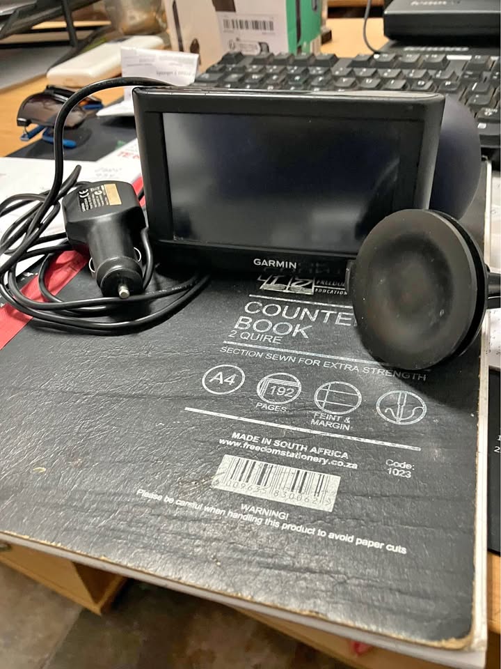Garmin GPS With charging cable Windscreen bracket Large screen Need to load current maps Works 100% Also needs mounting clip Missing one