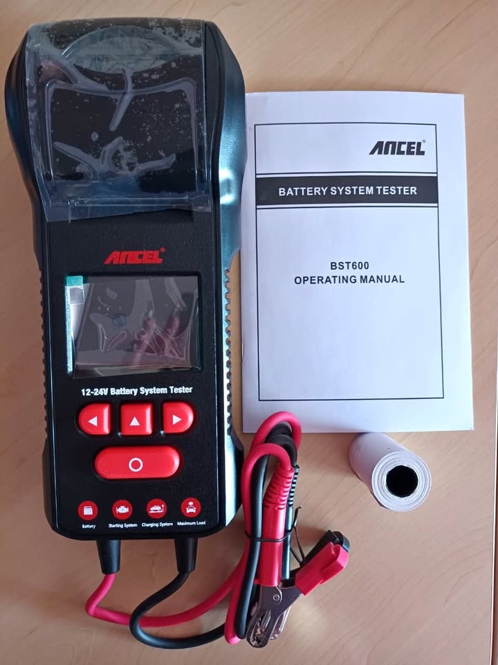 ANCEL BST600 12V/24V 100-2000 CCA Automotive Battery Temperature Load Tester Car Cranking Charging System Analyzer Scan Tool with Printer for Trucks Cars Motorcycles Feature: 1.【UPDATED TESTING TECH】ANCEL BST600 battery load tester is a more advanced battery load test tool with printer, it is can test battery temperature and measure current CCA values. It suits to 12V/24V starting & charging system and can quickly test the cold start current, internal resistance, battery life, and accurately display the battery condition. The features include Battery test, cranking test, Charging test, Maximum load test and reverse power connection protection. 2.【CAR BATTERY TESTER with BUILT-IN PRINTER and PAPER】Its built-in printer with standard thermal printer paper, so you can conveniently attach a printout to a work order, share it with your customers or build a preventative maintenance program of record keeping, enables you to keep printing records for future reference. (Printing Issues: make sure roller is pressed to the paper. If the roller becomes loose, it will cause poor contact between print head and paper, and no words can be printed.) 3.【12V & 24V BATTERY LOAD TESTER】ANCEL BST600 automotive battery tester works on 12 volt & 24-volt lead-acid batteries including regular flooded, AGM flat plate, AGM spiral, GEL and EFB batteries with the test range (100-2000 CCA). Compatible with cars, motorcycles, trucks, RVs, ATVs, SUVs, boats, yachts, mowers and even golf carts. 4.【FAST & ACCURATE】It’s fast and accurate, displaying battery parameters in about 2.5 seconds to advise you of a battery’s full/low or charge/replace status. 5.【SAFE & CONVENIENT】The unit is housed in a rugged casing for easy hand-holding. It’s lightweight and has a backlit display screen for clear reading under any lighting condition, the insulated ABS shell prevents current leaks and is solid enough to withstand damage. Whether you own your personal mechanic shop or private owner, easy to use and convenient to carry around. In addition, it supports 12 languages, such as English, French, Spanish, etc. Description: Battery system testers are used for activated style lead-acid storage battery, and checking the battery conditions (temperature, starting up, charging, electrical loading). Precise circuit and strong digital processing unit make it collect a series of complicated data completely and figure out every test data, which is available by 4-wire Kelvin test connection. Besides it strengthens input protection inside, in order to prevent such situations as polar reversal connection, over-high voltage input, poor contact of the test clamps, and so on. ANCEL BST600 battery tester is designed with convenience and broad functionality in mind. In addition to the printer function, it features a wide capability for the purpose of battery diagnosis and maintenance. It works on 12V and 24V battery systems, includes the actual Cold Cranking Amps test, the health status test, and the diagnosis of both starting and charging systems for common faults. It also has an integrated printer capable of printing out test results for improved service. This tool lets you know the condition of battery system in advance, save a trip and money to an auto repair shop. Specification: Brand: ANCEL. Model: BST600. Name: 12V/24V Battey tester with Printer. Item Dimensions LxWxH: 12.8 x 7.87 x 3.35 inches. Application: For All 12 V 24V Solar Power Systems/RVs/Boats/Motorcycles/Trucks/Cars. Battery Test. Battery Temperature and Voltage Monitor, Cranking Charging Test. Test Multiple Battery Types: Regular flooded, AGM flat plate, AGM spiral, Gel and EFB; Battery Standards Supported: Supports all battery rating systems - CCA, BCI, CA, MCA, JIS, DIN, IEC, EN, SAE, GB. Performance Test: Charging Test, Cranking Test, Battery Test. Print Function: Support. Test result: Status of health (SOH), Status of charge (SOC), Measure CCA value, Battery temperature, Voltage, internal resistance, Ripple Test, load test, Data Review, Print Test Report. Displays test result in merely seconds, more accurate than the low-priced tester. Feature: Tests in-vehicle battery and single storage battery. Quick starter analysis without disabling the ignition. Easy to use and read with large backlight LCD display and menu-driven operation. Support languages English, Deutsch, Italiano, francais, Espanol, polski, русский, Nederlands, Japan and More. Engine System Activation Load Test: Start the engine to make the tester record the lowest voltage in this process automatically. For the 12V system, the standard voltage is 9.6V; for 24V system, the standard voltage is 16V. If the lowest voltage is higher than the 9.6V (for the 24V system, the lowest voltage is over 16V), the system is good. If the lowest voltage is lower than the standard voltage, the system is not good. Maximum Load System Test: For the 12V system, the standard voltage is 12.8V, for the 24V system, the standard voltage is 25.6V. If the lowest voltage is higher than the 12.8V (for the 24V system, the lowest voltage is over 25.6V), the system runs normally. If the lowest voltage is lower than 12.8V (for the 24V system, the lowest voltage is under 25.6V), please check if the engine belt is damaged and the wires are short-circuited. Charging System Test: For the 12V system, the standard maximum voltage is 15V, the standard minimum voltage is 13.3V; for the 24V system, the standard maximum voltage is 30V, the standard minimum voltage is 26.6V. If the current voltage is higher than 15V or 30V, please check the voltage regulator. If the current voltage is lower than 13.3V or 26.6V, please check the connections, wires, and engine. Package Included: 1 X 12V/24V Battey tester with Printer
