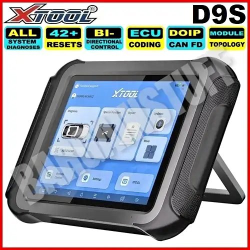 XTOOL D9S PROFESSIONAL ALL-IN-ONE DIAGNOSTIC TOOL WiFi Connection Diagnosis: Compared to Bluetooth and Cable Connection Diagnostics, WIFI Connection Diagnostics has a faster transmission speed and a Longer Communication Distance, and not limited by the length of diagnostic cable, make work is more efficient, convenient and stable. Advance ECU Coding/ECU Configuration: XTOOL diagnostic tool D9S has the ability to perform ECU Coding (for BENZ/BMW Coding, for VW/Audi/Skoda), and custom configurations are designed to unleash the hidden functions for BMW, for Ford/Lincoln, for Mazda, for VW/Audi/ Skoda, for Toyota//Lexus, etc. You can activate the higher-level car functions and disable any annoying features. New launched PMI function for Ford, Lincoln, and Mazda to copy data into new modules. Bi-Directional Control Capability Save $$$ from Dealer: XTOOL scanner D9S features full bi-directional control ability to verify system input/output such as turn on/off radiator fan, A/C Clutch On/Off, Fuel Pump, Window/ Mirror/Door Lock Test, Pump & Value Tests, Interior & exterior lights Test, Sound horn Test, etc. 42+ Services & Calibration/Initialization/Matching/Relearn Functions: D9S Professional scan tool performs 42+ comprehensive services including oil reset, EPB, SAS, Throttle, BMS, ABS Bleed, injector coding, key fobs programming, Fuel Trim Reset, Cylinder Power Balance, Crankshaft Sensors Relearn, Zero Point Calibration, Fuel Injector Balance, Language Change, Stop/Start Reset, A/F Reset, etc. Note: Please contact us with VIN com to check compatibility. IMMO/Key Programming: D9S Can Reprogram new keys+ Add new fobs+ keyless remote+ Disable lost keys. Note: Please check compatibility before purchase as functions vary across vehicles. Support CAN FD / DoIP: Support CAN FD / DoIP: access new communication protocols of CANFD (for MY2020+ GM models), and DOIP (for BMW E/F/G Chassis, Jaguar, Land Rover vehicle makes). For VAG Guided Functions: D9S can perform Special Functions, ECU Coding Complex Functions. Guided Function can help your diagnostic step by step with for VW/Audi/Skoda, etc. 3 Years Free Updates: XTOOL D9S diagnostic tool comes with 3-YEAR FREE software updates to optimize user experience and improve software issues to add more vehicle coverage and incoming features irregularly updated. Upgraded of D9 With Top Hardware Configuration: XTOOL D9S possess with 9.7inch, Android 10.0 OS, Quad-Core 1.5GHz CPU Processor, 4GB RAM & 128GB ROM, which greatly increased the speed of running multiple task. With 6400mAh stronger rechargeable battery, Support fast charging. Perfect choice for advance DIY, auto repair shop, garage, and home mechanic who prefers for bigger screen. OE-LEVEL FULL SYSTEM DIAGNOSTIC WITH TOPPLOGY MODULE MAPPING XTOOL D9S automotive diagnostic computer enables in-depth OE-level diagnostics previously only available through dealer tools. Faster system-wide diagnostics with topology diagrams, a clear view of the communication structure and everything between modules. D9S can access and scan all available vehicle modules such as ABS, SRS (airbag), TCM, PCM, BCM, IMMO, chassis, suspension, parking brake system, HVAC, lighting system, radio system, etc. Read and Clear Codes, display DTC definitions, turn off check engine light (MIL), ABS, Airbag, Transmission warning light, reset monitor; Display Real-Time Data Streams in text or graphic form, such as misfire data, engine speed, transmission oil temperature, air flow sensor data, long/short fuel adjustment, fuel pressure, actual fuel temperature and required fuel temperature, cylinder balance ratio, etc.; Retrieve Freeze Frame data to show parameters when recording DTC; Perform active tests, such as EVAP test, idle re-learn, injector test, ABS motor pump cycle, window, door, sunroof, wiper test; D9S ADVANCED ECU CODING & ECU CONFIGURATION ECU Coding Capability for VW/AUDI/SKODA ONLY which Performs Online Coding, Component Matching, Adaptive Data Reset, Flash Hidden Functions to optimize vehicle performance and customize car settings. Flash Hidden Functions (ECU Configuration) for BMW/VW/AUDI/ SKODA/TOYOTA/LEXUS/SCION/for MAZDA/FORD/LINCOLN, help refresh hidden functions to reprogram adaptive data for certain components after making repairs or replacements. You can activate higher-level car features and disable any annoying ones. such as disabling the seat belt buzzer and rolling down the windows with the key fob. Recode Changed Modules, Auto Side Mirrors Folding, Refresh Hidden Features, Auto Engine Start-Stop Renew, ECUs Coordination, Reinforce Performance Note: D9S Not Support Performing ECU Reprogramming. BI-DIRECTIONAL CONTROL/ACTIVE TEST Bi-Directional Control Capability to verify system input/output by sending commands to the vehicle's systems/ components to operate and test the relevant actuators of the vehicle, accurately determine whether a specific system, component or subsystem in the vehicle is operating well and locate problems, Such as: EVAP Tests, Compression Test, Turn On/Off Radiator Fan, A/C Clutch On/Off, Fuel Pump, Window/Mirror/ Door Lock Test, Pump and Value Tests, Interior & Exterior Lights Test, Sound Horn Test