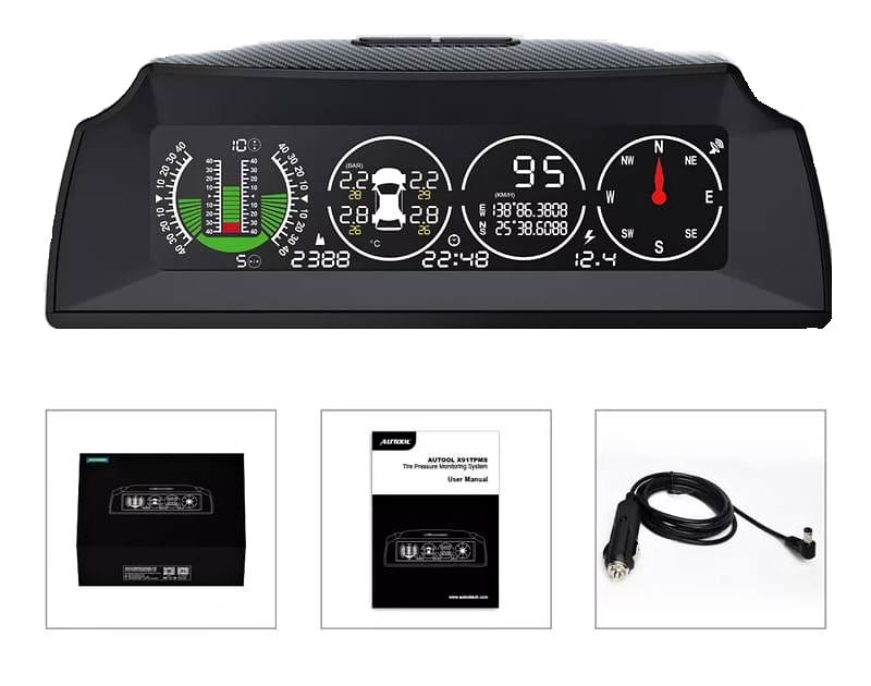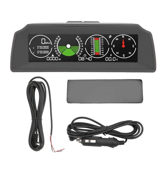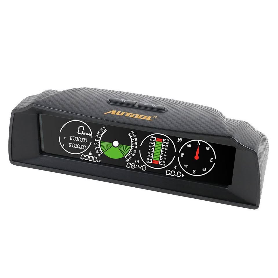 Autool X90 GPS Slope Meter Inclinometer Car Compass HUD Pitch Tilt Angle Protractor Clock Latitude Longitude The Autool X90 is a smart GPS multi-functional horizontal speedometer for driving, fully supports high-precision monitoring of car speed, vehicle tilt angle, vehicle pitch angle changes, compass, time and car battery voltage status, to ensure your driving safety. Precisely shows vehicle tilt angle with clear notification, when the angle is over 40°, alarm alerts. Precisely show vehicle pitch angle changes, when the angle is over 40°the alarm alerts to ensure your safety X90-GPS Product Instructions: 1. Park the car on a level surface, stick the adhesive on the product, adjust and fix it in the vehicle for easy horizontal view. 2. Before driving, connect the power supply and wait to receive the satellite GPS signal until the data shows normal. 3. Long and hold the setting button and click the start button to adjust the electronic clock. 4. Press and hold the start button, and click the setting button to adjust the time of the X90. NOTICE: The device has KMH and PMH now, short press the button M can switch them. When the PMH lights, its on PMH counting. When the PHM faded out, its on KMP counting.