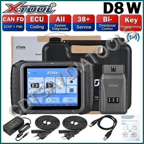 XTool D8W Bluetooth Diagnostic Tool With Special Functions Including Bi-Directional & Key Programming The Xtool D8W is an Bluetooth automotive smart diagnostic system with 8 inches LCD display, which is designed for mechanics, electricians and car maintenance shops. It supports automotive full system diagnostics, including reading ECU version information, reading fault codes, live data and freeze frames, 38+ Special Functions, & Key Programming Support CAN FD & DoIP, ECU Coding, Bi-Directional Control. XTool D8W auto scanner diagnostic tool can access and scan all available modules and systems in your vehicle; such as ECM, TCM, ABS, SRS, BCM, IMMO, BMS, TPMS, SAS, fuel system, light system, W wiper system, A/C system, etc. To perform OE-level full diagnostic functions. • To Read/Clear DTCs: (Diagnostic Trouble Codes), Retrieve ECU Information, View Live Data, View Freeze Frame, Actuation Test, ECU coding and Special Functions. • 8-in-1 Live Data Stream: Display 8 data streams (Graphics & Text) at one time, to better help you monitor and analyze the health status of the system. • Auto VIN & Scan: Automatically identify your car information without manually entering the VIN (Vehicle Identification Number) and quickly scan your car to find the cause of the vehicle failure. • Select Vehicle by Area: Scan the car faults by selecting the car model from the menu. Note: Functions vary by the car manufacturer, model and year XTool D8W bi directional scan tool can use active tests to output commands to the ECU, to turn on/off control modules or components without using the vehicle controls, thus saving diagnosis time. Namely: • EVAP Tests. • Compression Test. • Turn On/Off Radiator Fan. • A/C Clutch On/Off. • Fuel Pump. • Window/Mirror/Door Lock Test. • Pump and Value Tests. • Interior & Exterior Lights Test. • Sound Horn Test. 38+ Special Functions: • Oil Reset: Perform reset for a new countdown of engine oil life system. • EPB Reset: Reset brake pads to maintain the electronic braking system safely and effectively. • SAS Calibration: Erase fault SAS memories and make calibration for Steering Angle Sensor. • BMS Reset: Register the newly replaced car battery into the car computer. • Gearbox Match: Matching the gearbox/transmission after replacement. • ABS Bleed: Bleed the air out of the ABS system for firm brake pedals. • Key Programming: Add new keys, disable lost keys, remote learning. • Injector Coding: Code the new injectors after replacement for accurate fuel injecting control and improve fuel efficiency. • Other Special Functions Includes: Throttle Relearn, Suspension Calibration, Trans Adaptation(Gearbox Match), TPMS Reset, ABS Initialization, Seat Calibrations, Zero Point Calibration(of yaw rate sensor/seat weight sensor, etc), Window/Door/ Sunroof, Headlight Adjustment, Airbag Reset(airbag reset and clear airbag crash data), Idle Relearn, Power Balance, Transport Mode, Tire Upgrade, Tooth Learning, VGT Learn(VGT Turbo Calibration), Fuel Trim Reset, Fuel Alcohol Composition Reset, Air/Fuel Reset, Start/Stop Reset, Language Change, and continuously growing. Note: Special Functions vary across vehicle makes, models, year. Please come to us with VIN number to check compatibility before purchase. Support Powerful Key Programming: The IMMO service can disable a lost vehicle key and program the replacement key fob. One or more replacement key fobs can be programmed. like programming new key fobs, Read PIN code/pin code calculation, Check number of keys, Generate key, Add key, All key lost. • Read Pin Code. • Generate key, Key Refresh. • Make Dealer Key. • All Key Lost. • Immobilizer Data Reading & Writing. • Backup IMMO Data. • Remote Frequency Detection. • Immobilizer Module Replacement. • IMMO ECU Reset & Coding. • Mercedes lnfrared Key Read/Write. • And more… Note: Not all cars support key programming. Please send the specific car model to the seller to check the compatibility before purchasing.