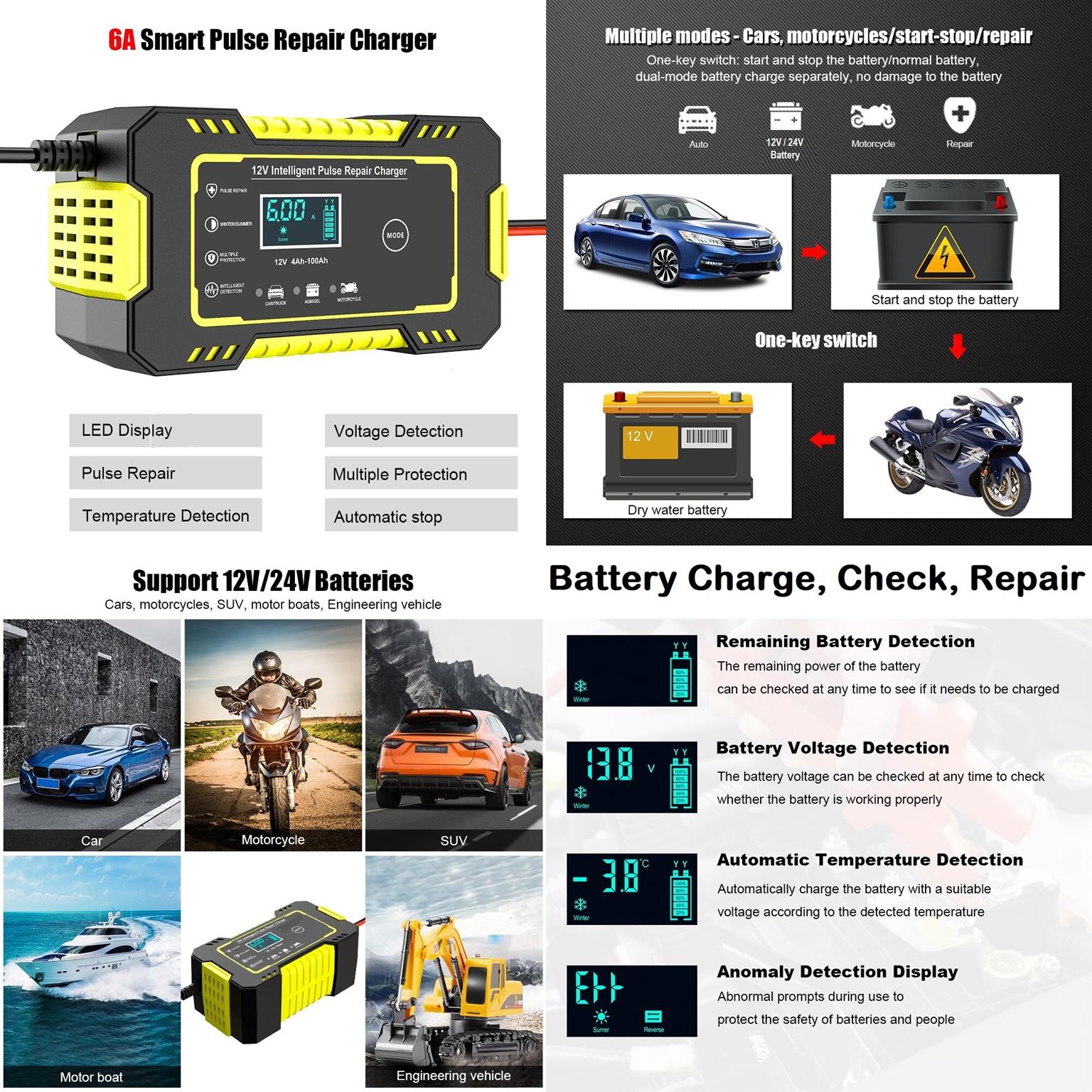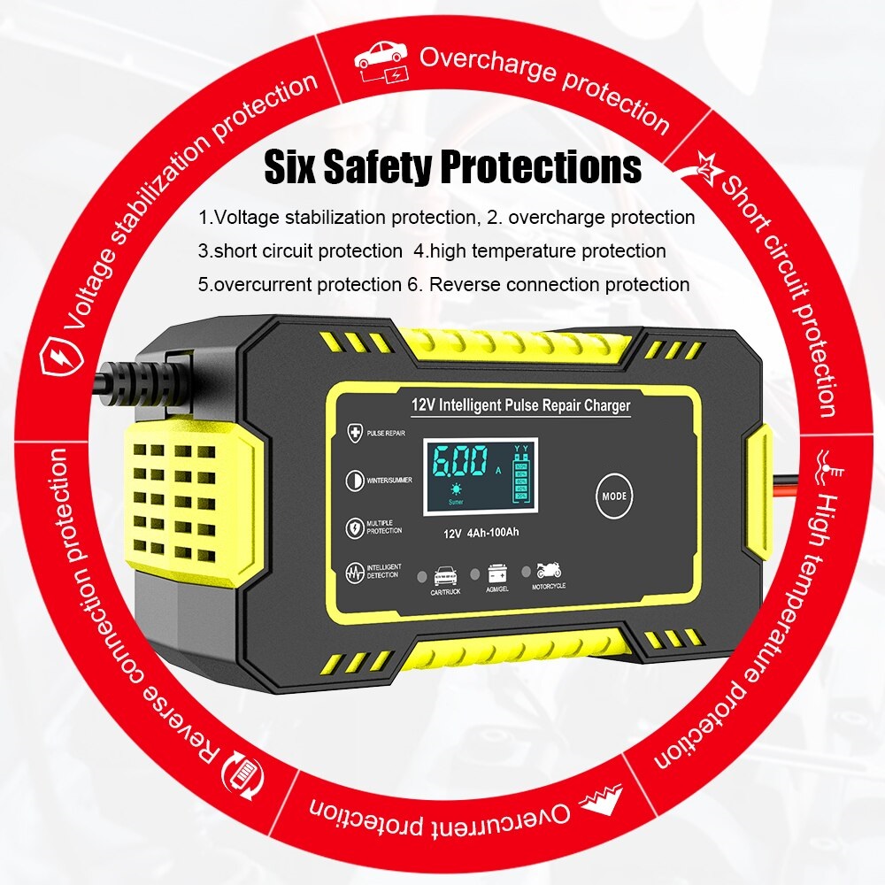 Fully Automatic Battery Charger 12V 6A Smart Pulse Repair LCD Battery Charger for Automobiles & other 12V batteries.