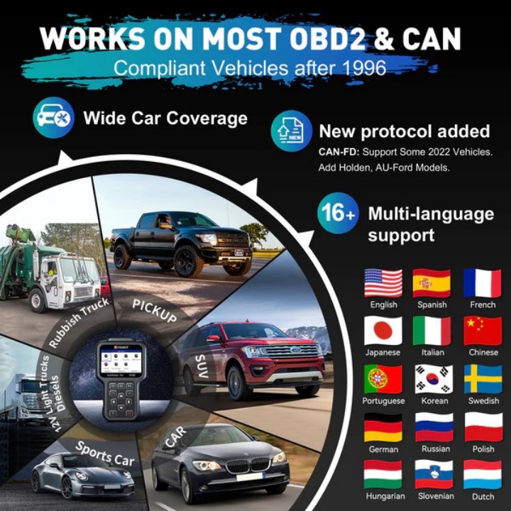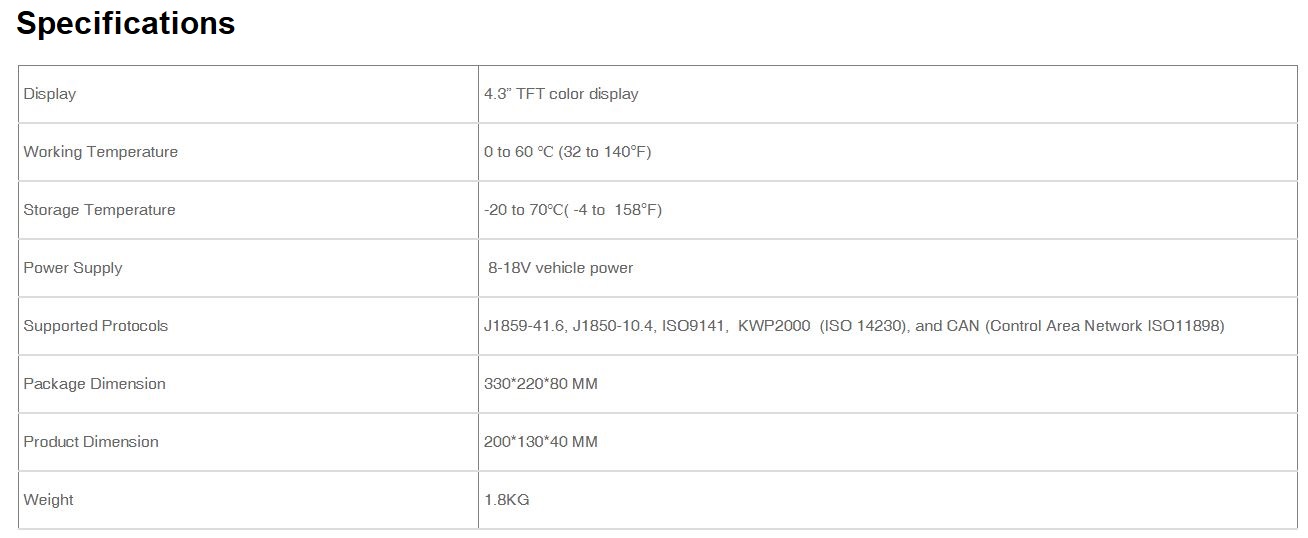 Life time free update let you always have the latest bug fixes, new vehicles coverage, newly added parameters and functionalities at your fingertips.