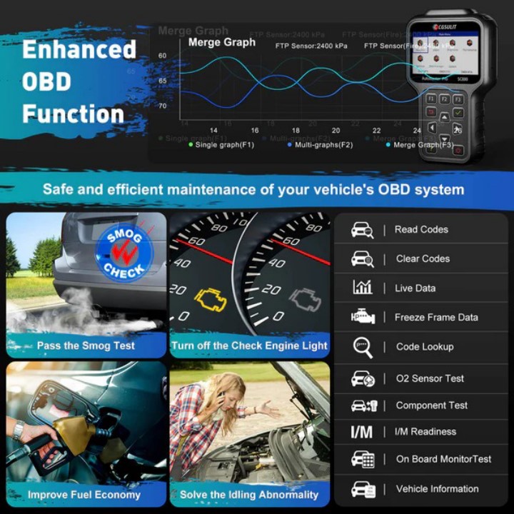 Shows live data of vehicle ECU, sensors, and modules in text and graph formats. Support merges interactive live sensor graphs for easy and intuitive diagnosis.