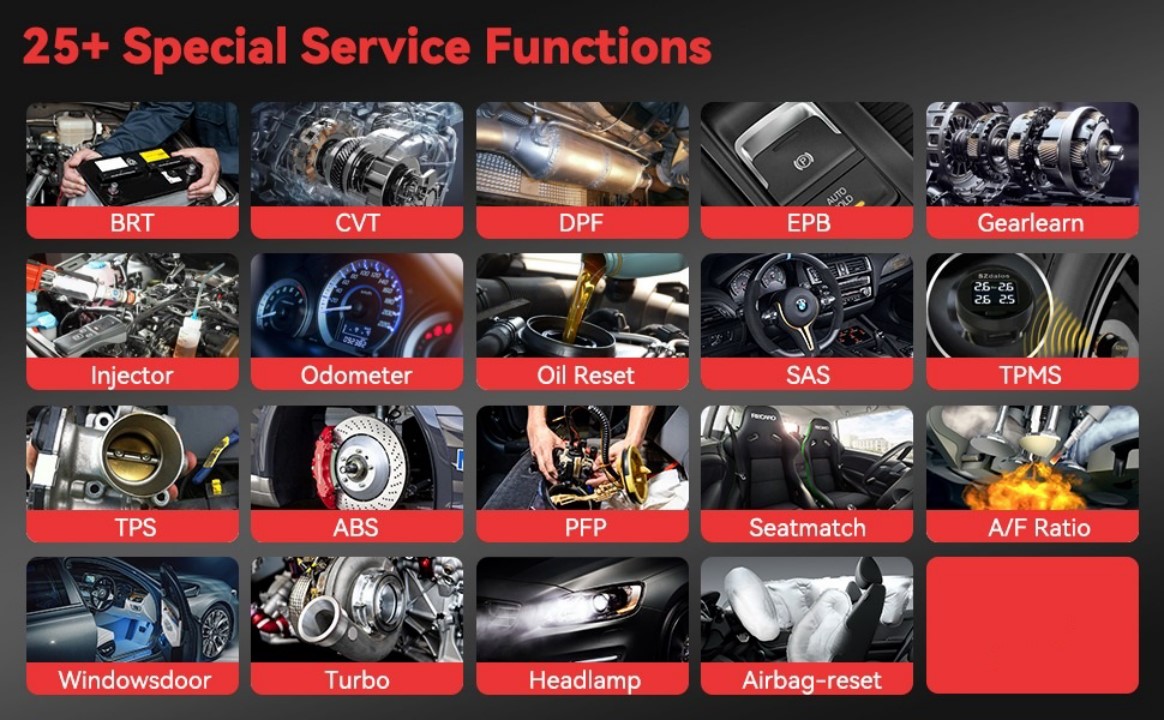 Support oil service reset functions on 50 makes, support Electronic Parking Brake (EPB) service on 45 makes.