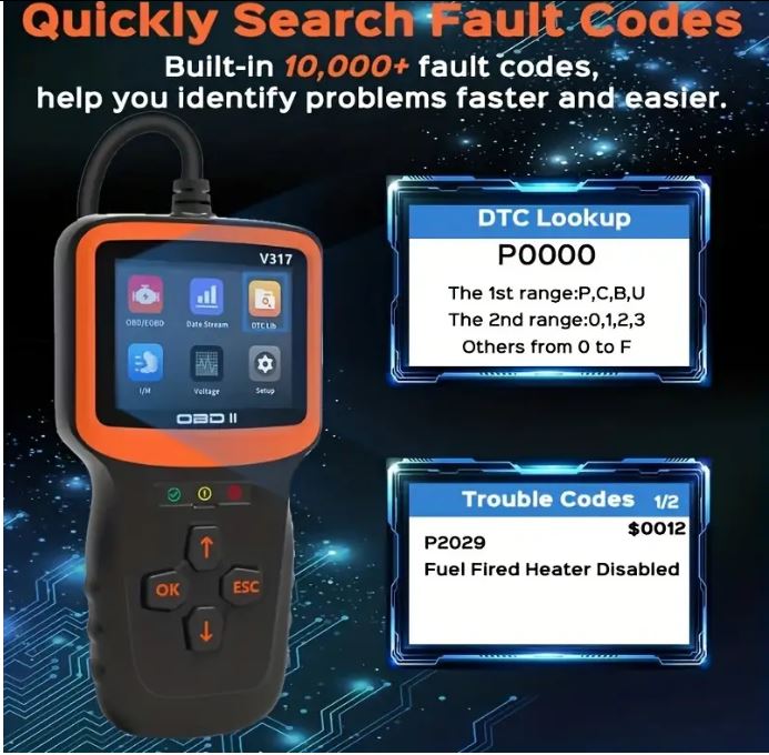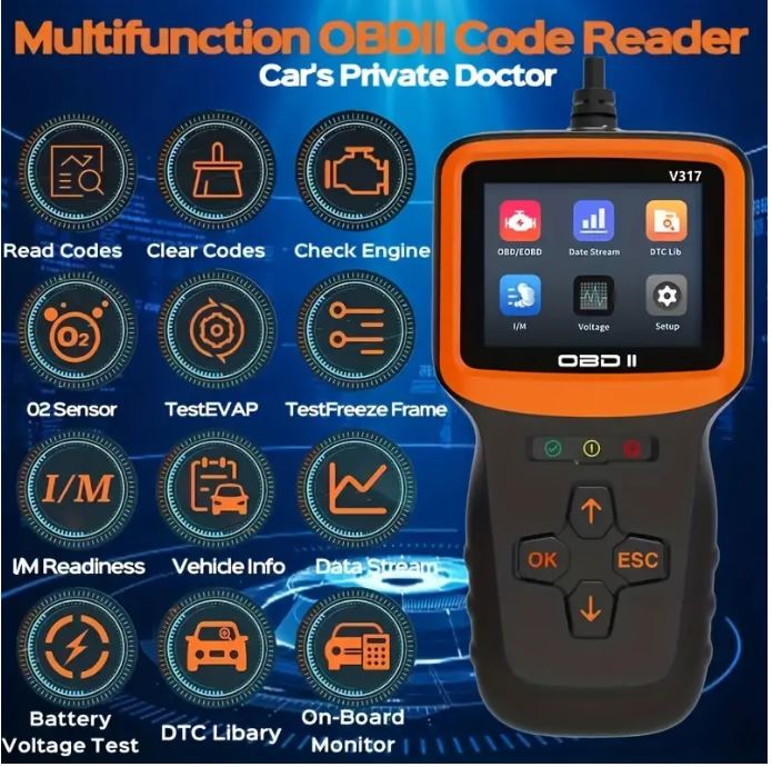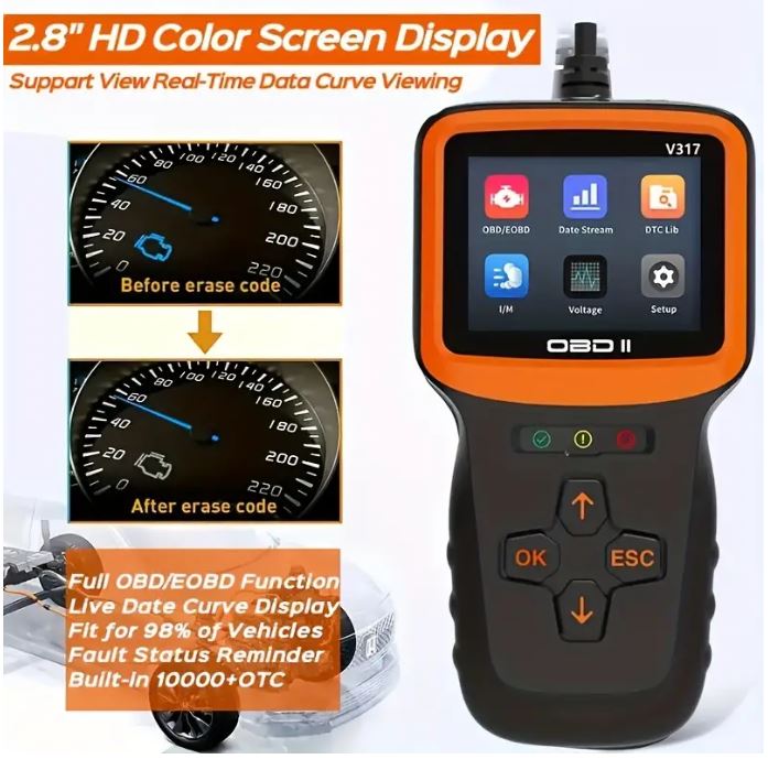 V317 OBD2 Diagnostic Tool with Check Engine Light Code Reader & Reset - USB Powered, Compatible with All Cars After 1996