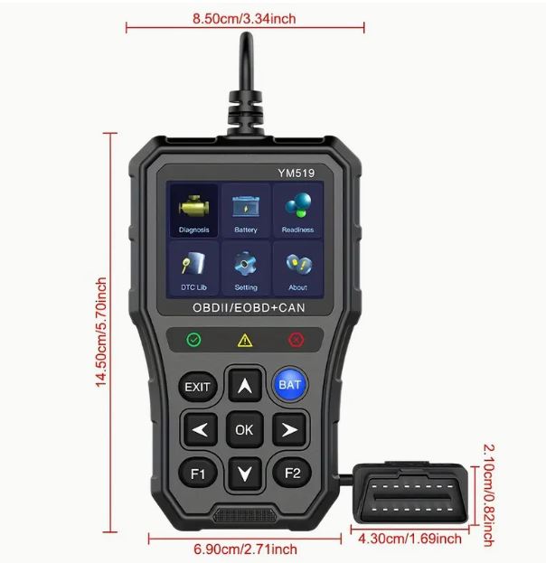 YM519 Fault Code Scanner OBD2 Diagnostic Tool Code Reader Check Engine System Battery Tester