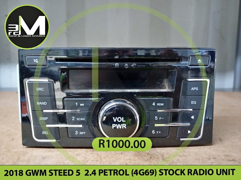 MV0740 2018 GWM STEED 5 2.4 PETROL (4G69) STOCK RADIO UNIT R1000 To enquire about parts from a vehicle, LANDLINE ☎ - CHARLES 📱 - HILSON 📱 - BRUNO 📱 - 083 704 2774view more 728 Dame Avenue, Rand Leases , Roodepoort, 1709 We deliver in and around JHB / PTA as well as courier for your convenience nation wide and to neighbouring countries. All our engines and manual gearboxes come with a 30-day guarantee, 7-day on all automatic gearboxes, terms and conditions apply. **Please note all electrical components, like our Lock sets, are non-refundable and non-returnable.**