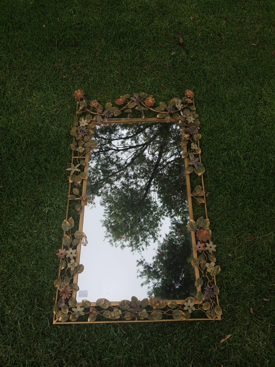Beautiful Italian metal Foliate and Drop-crystal mirror.