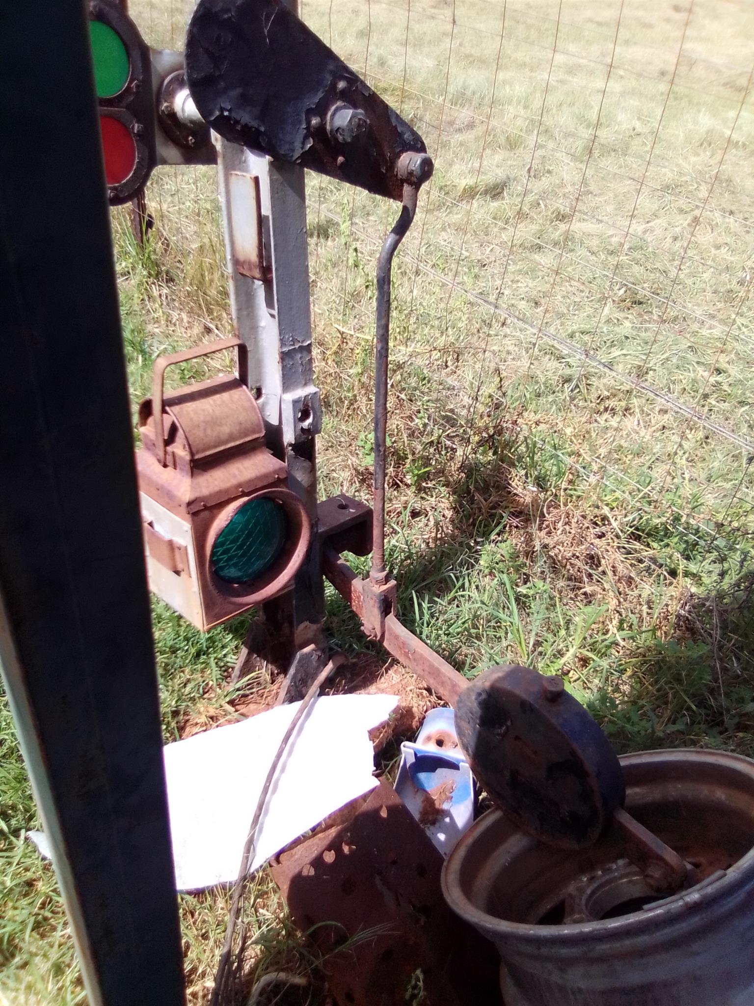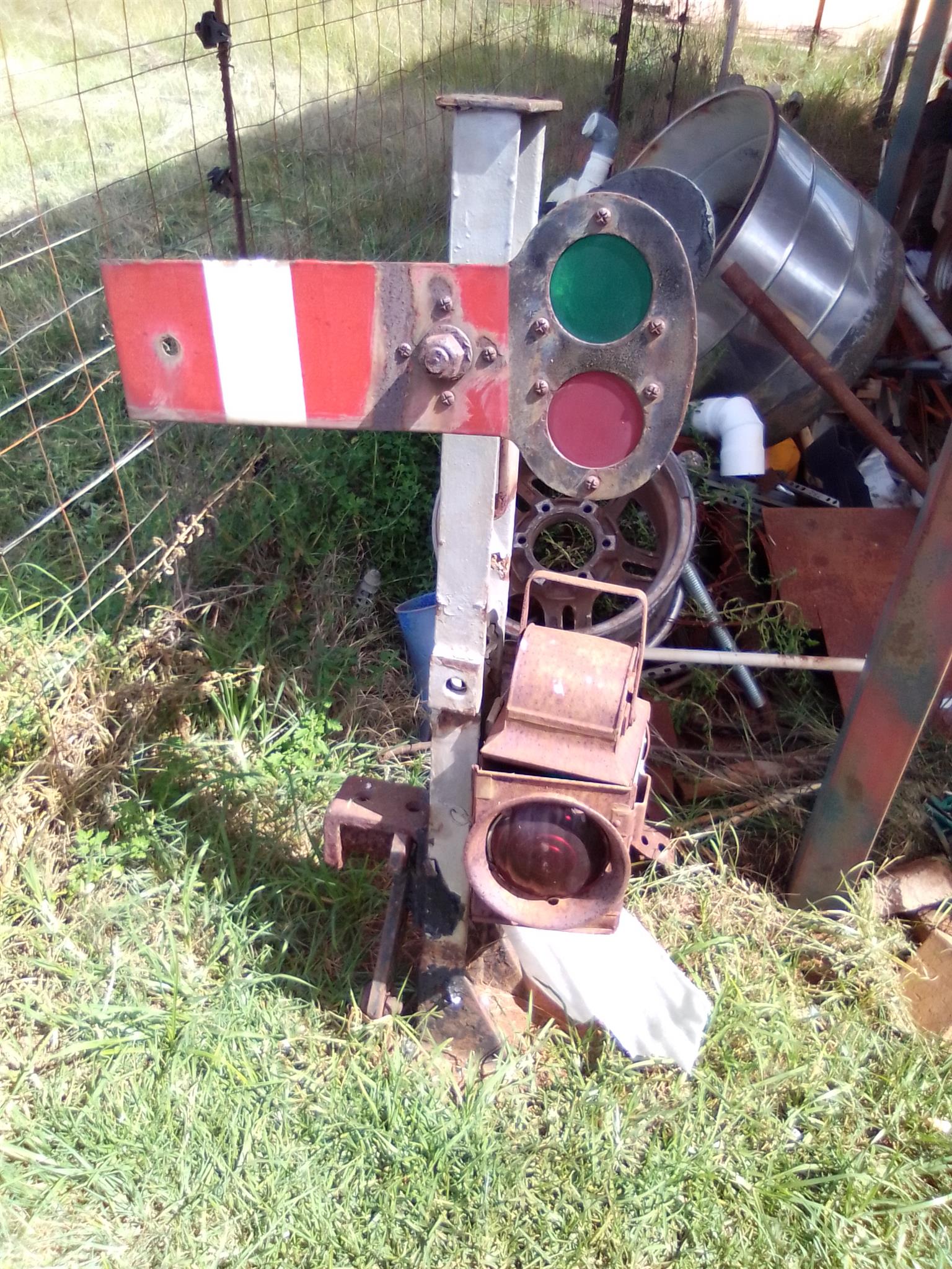 SAR dwarf semaphore signal,95%complete with lenses, control arms and counter weight. Extra lamp casing with red and green lenses but no lamp on structure. Not restored,100% original condition as used. Not restored.