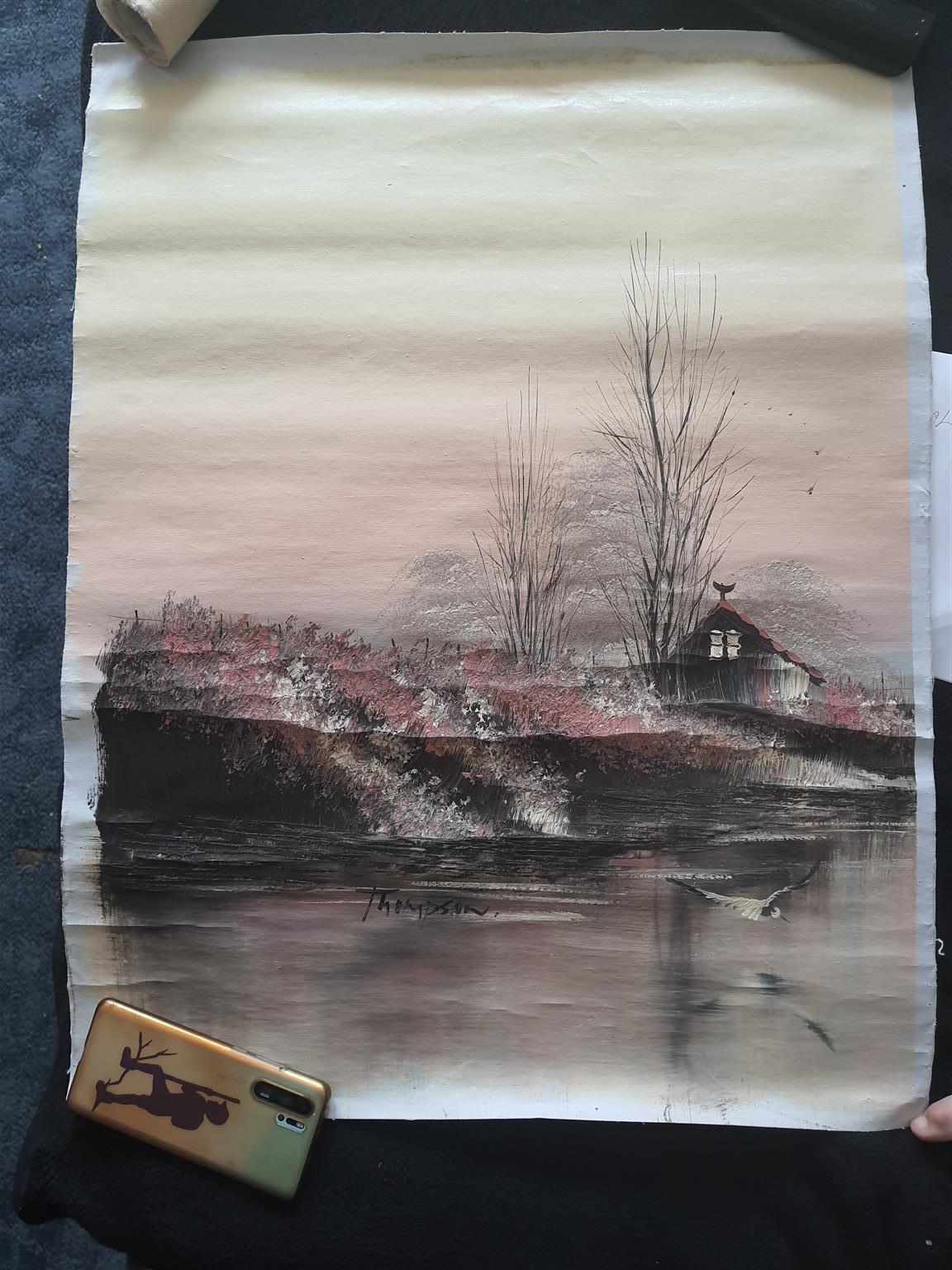 Two original Thompson paintings are for sale. The two paintings are matching. They are on canvas. They were bought about 35 years ago and they are still in the original package as when bought. They are in immaculate shape.