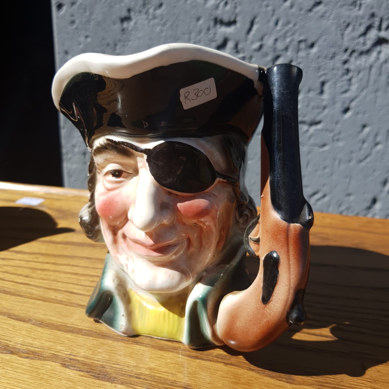 This Toby Mug featuring a sailor with an eye patch and flint lock handle is a must-have for any fan of nautical or pirate-themed decor