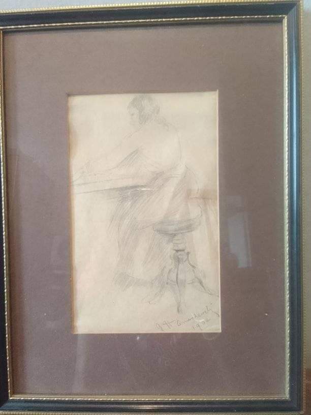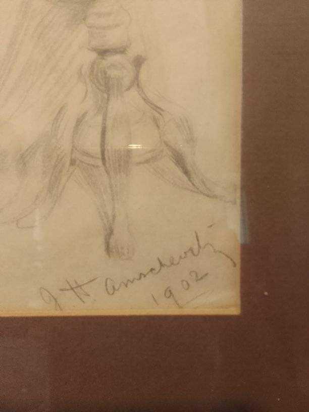 A vintage pencil drawing in a good condition by an unknown artist signed and dated 1902 up for sale