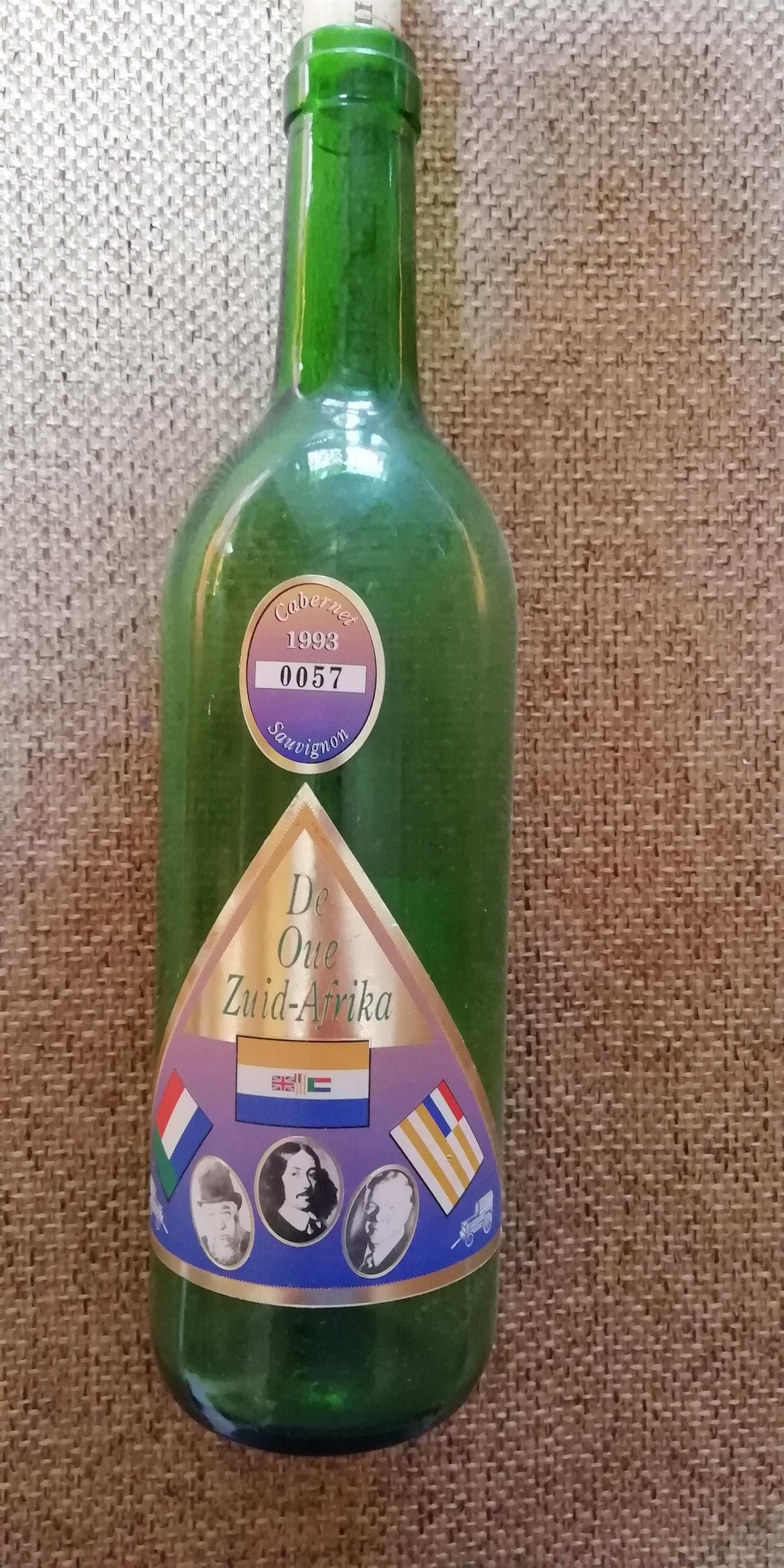 De ou Zuid - Afrika wynbottel (leeg met vlae van Boere Republieke) R150.