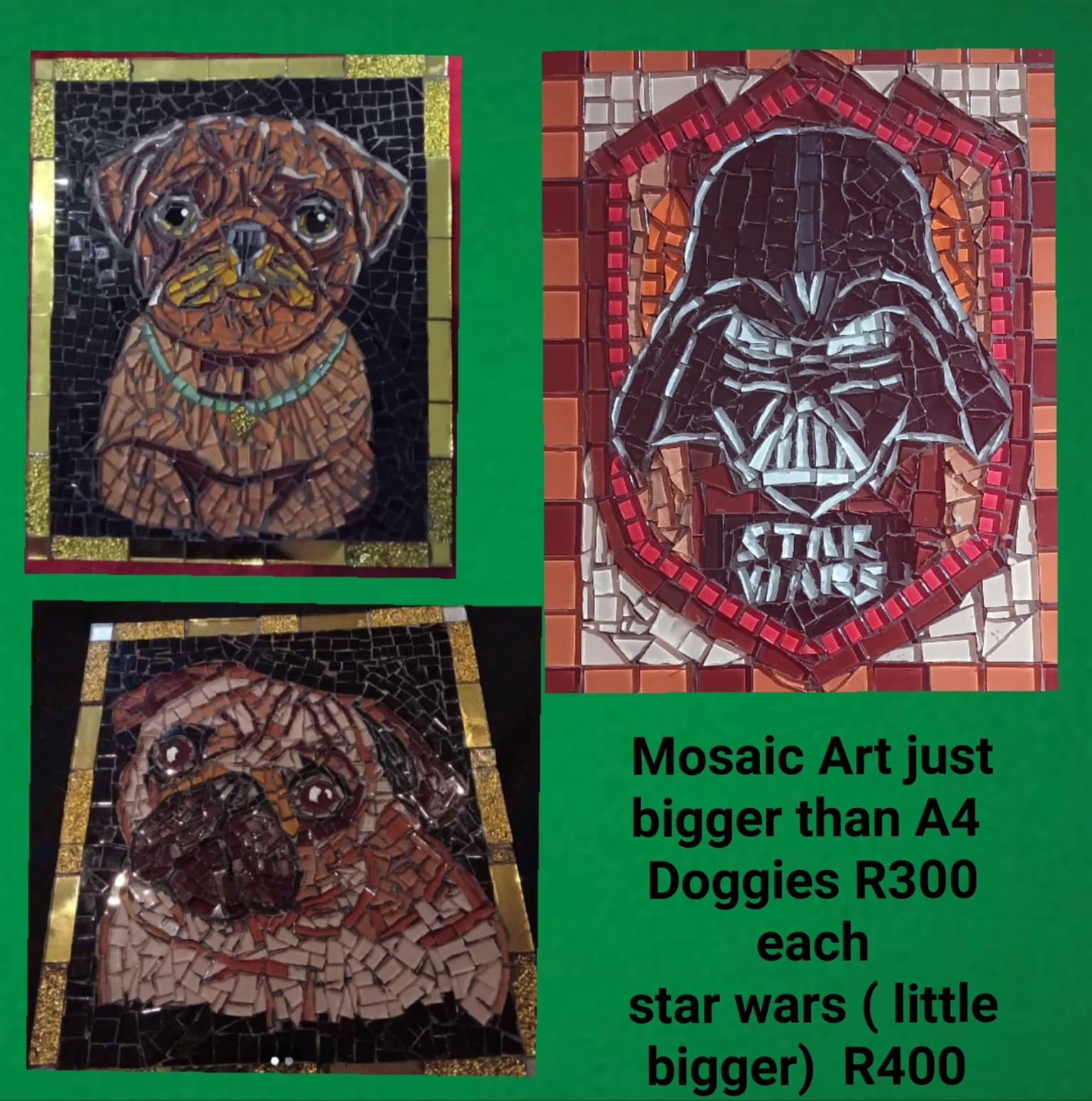 Mosaic dogs A4 size R300 each and Star wars little bigger than A4 R400