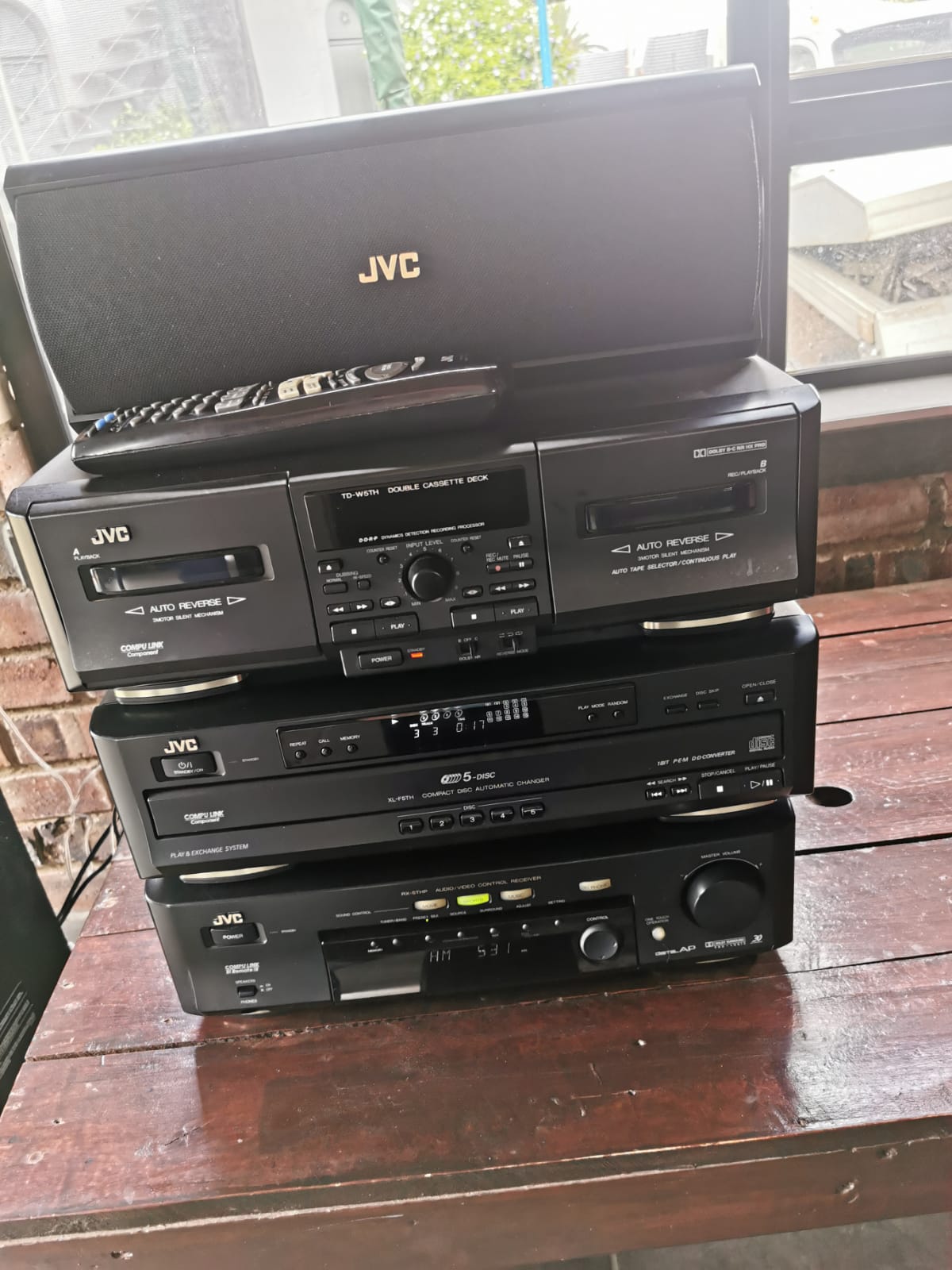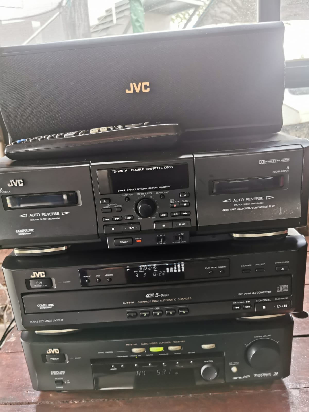 JVC HI-FI COMPONENT SYSTEM WITH 5 SPEAKERS AND TAKES 5 CDS. WITH REMOTE WORKS PERFECT