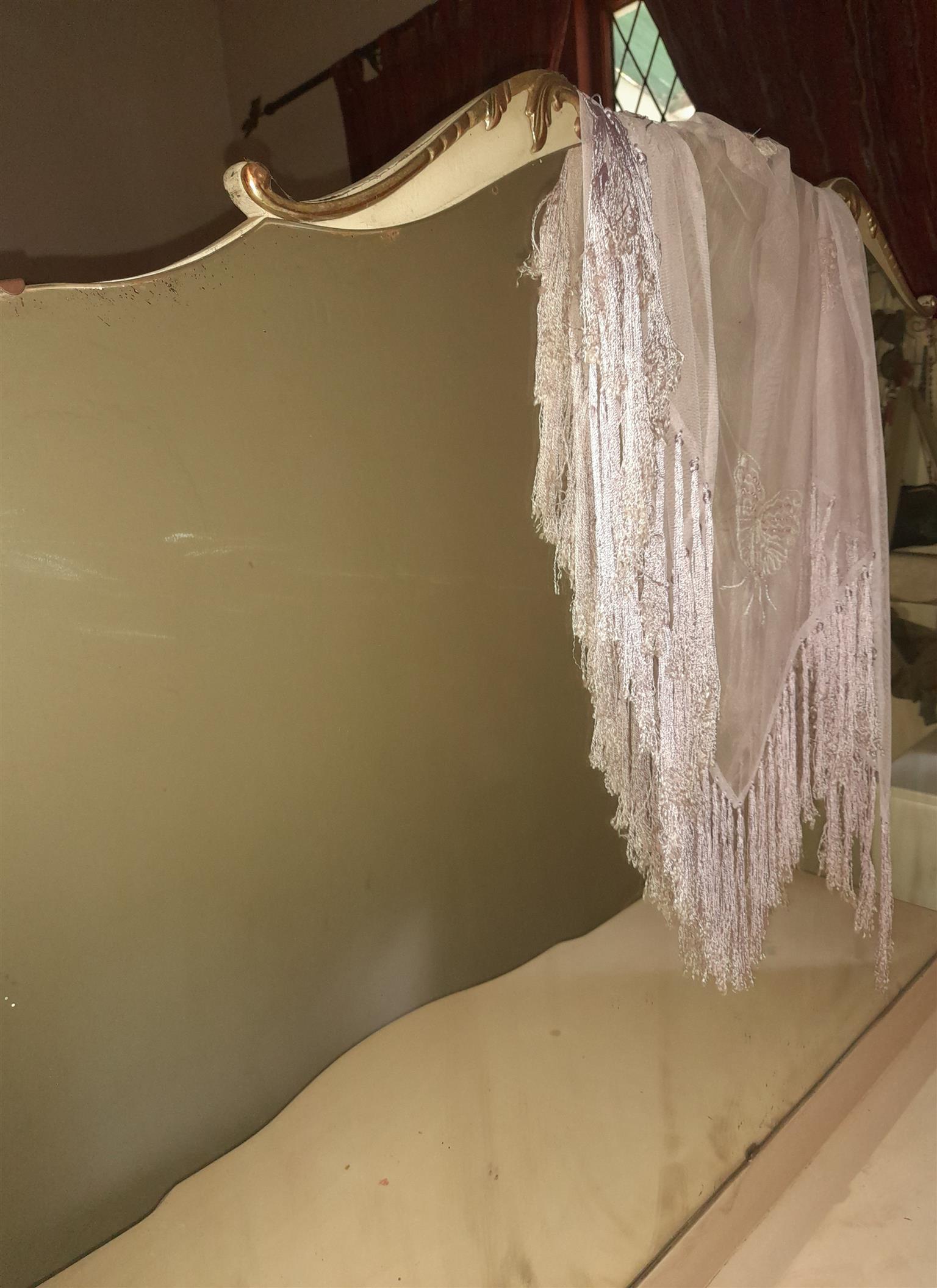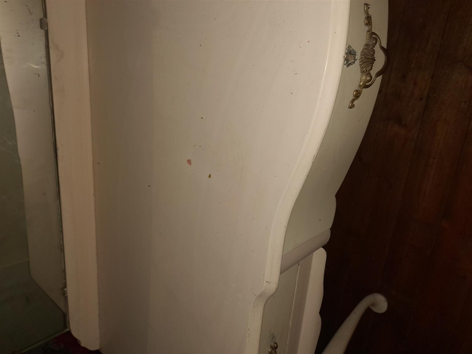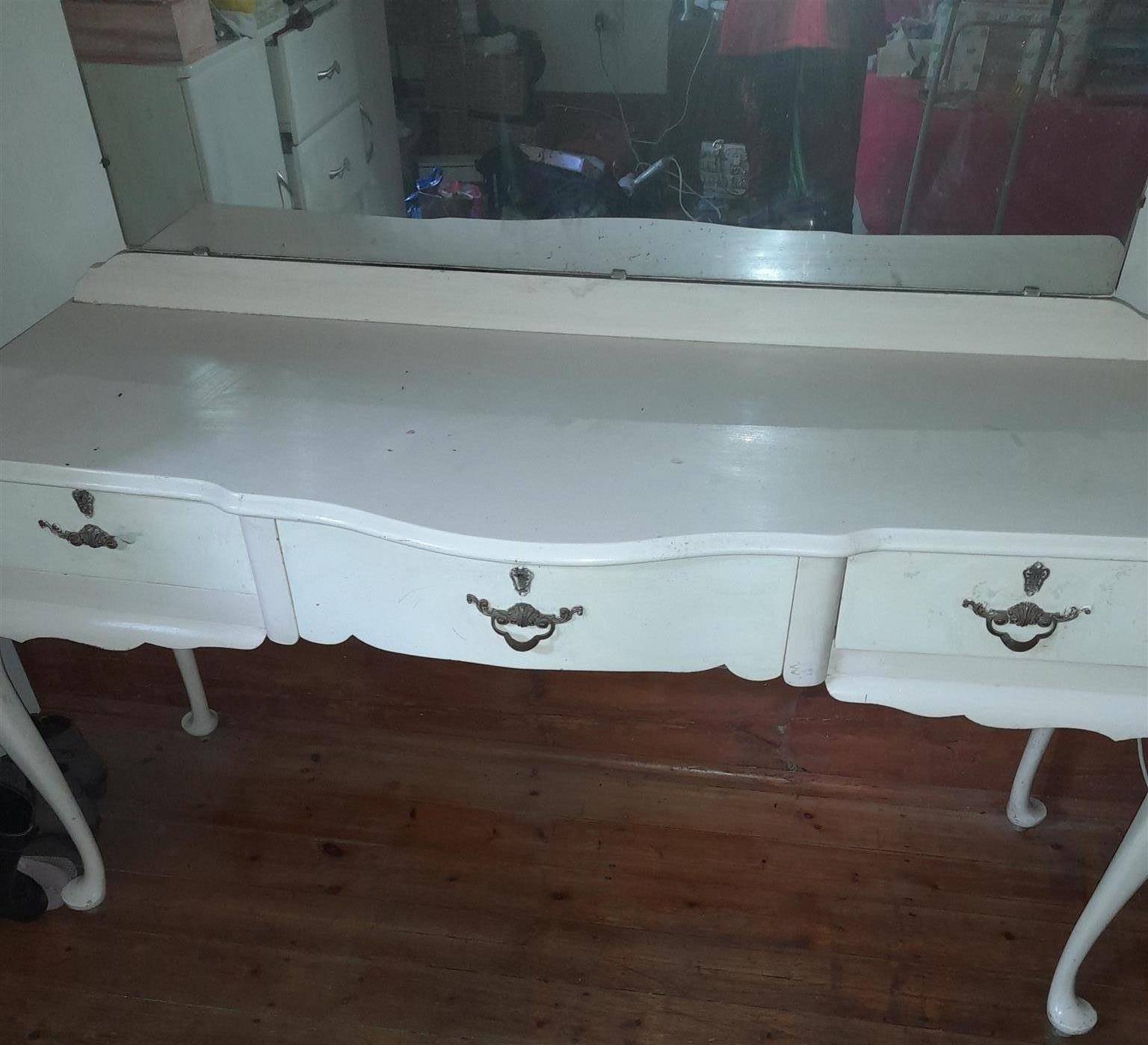 Ornate large white dressing table. 3 drawers with large attached mirror. Clawed feet. I excellent condition