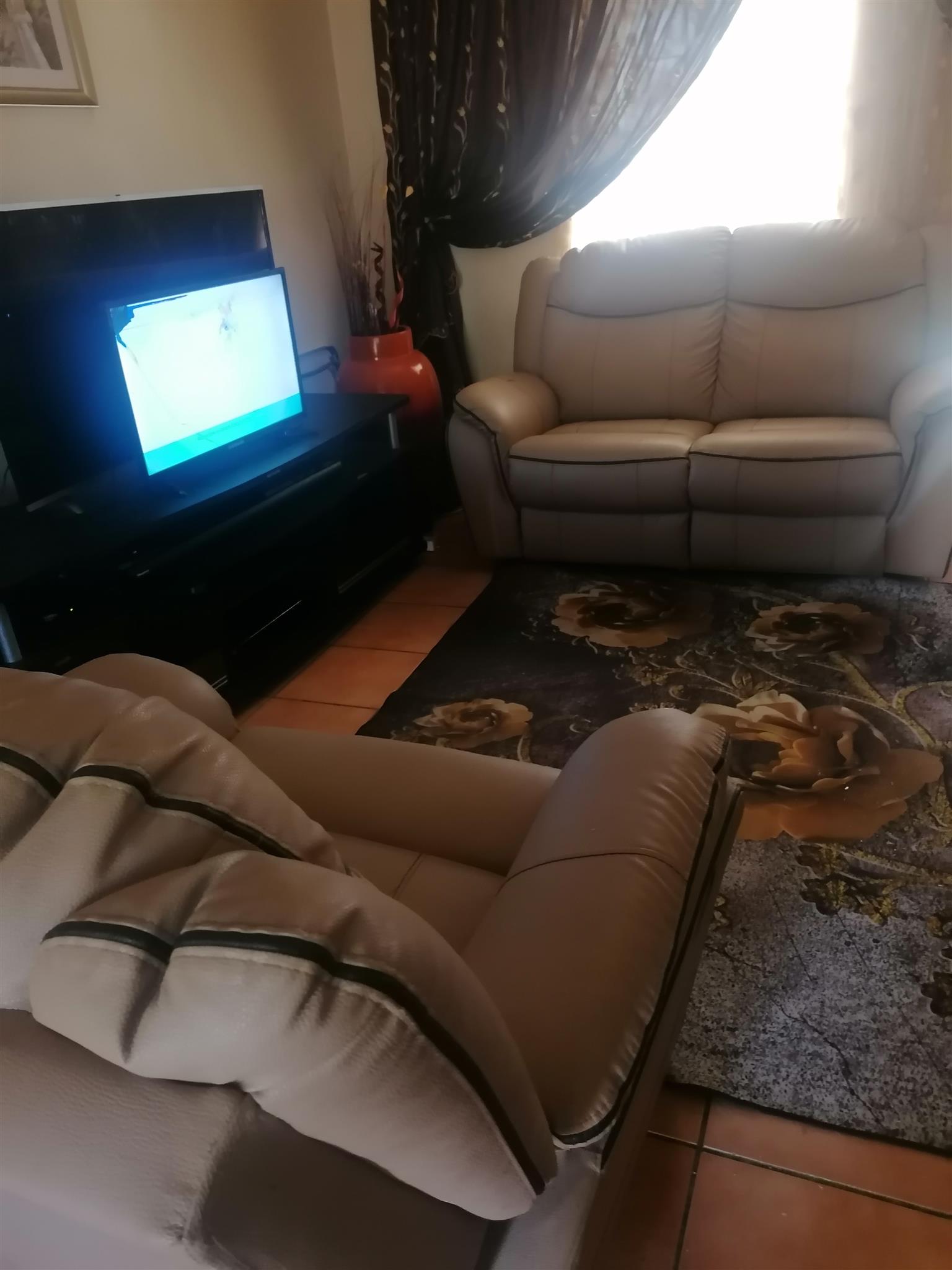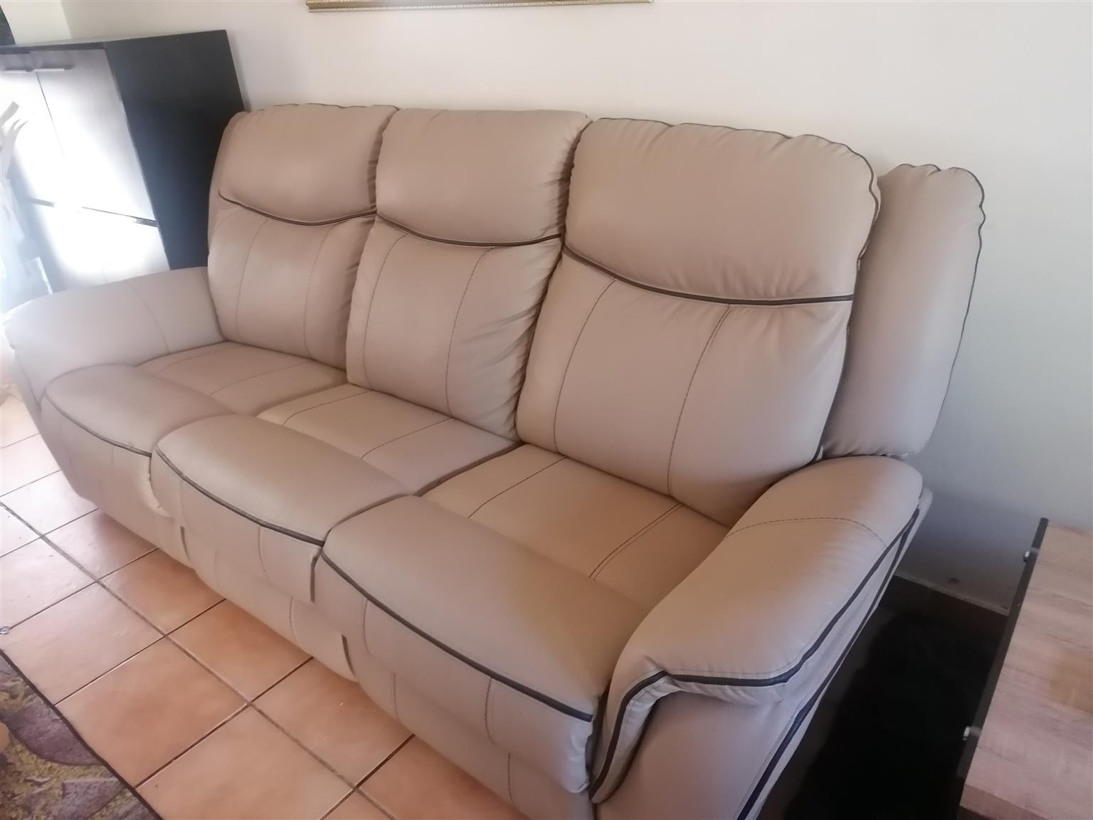 2 year old cream with brown trimming recliner 3 piece lounge suit