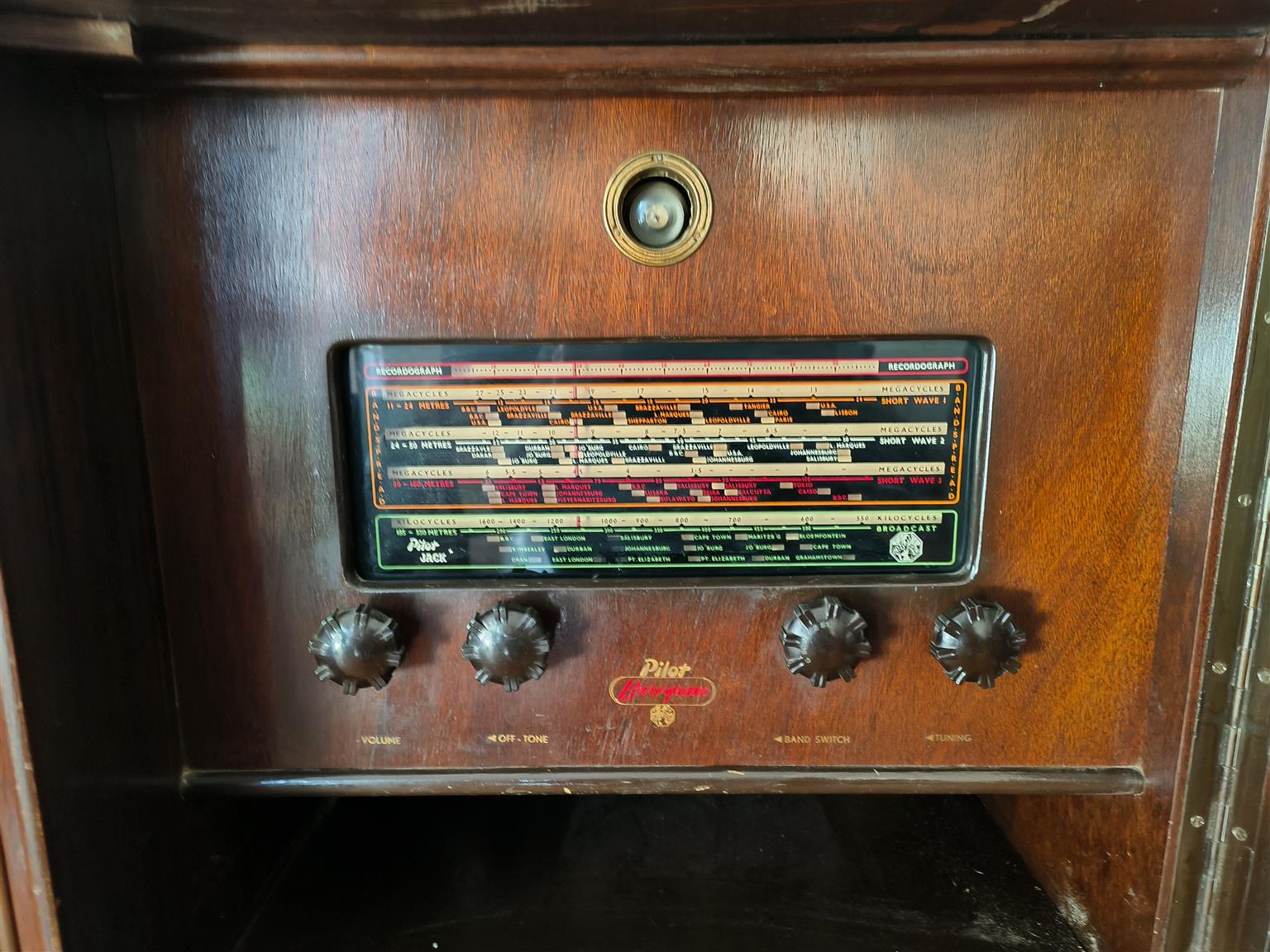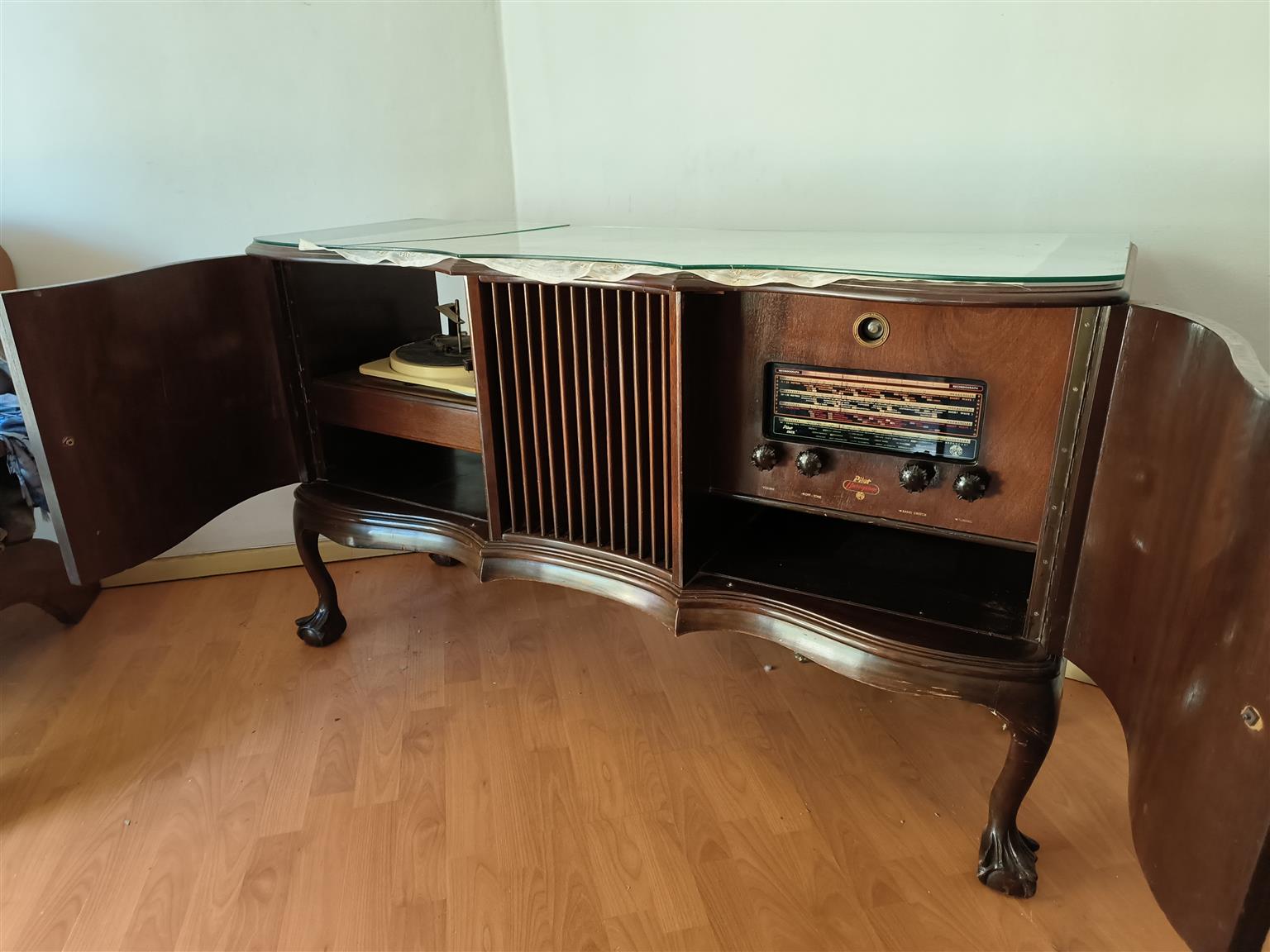 Valve operational Radio Gramophone Sideboard. This is still working. Need to allow valves to heat up and you can hear America or Europe, anywhere ...short wave...👍