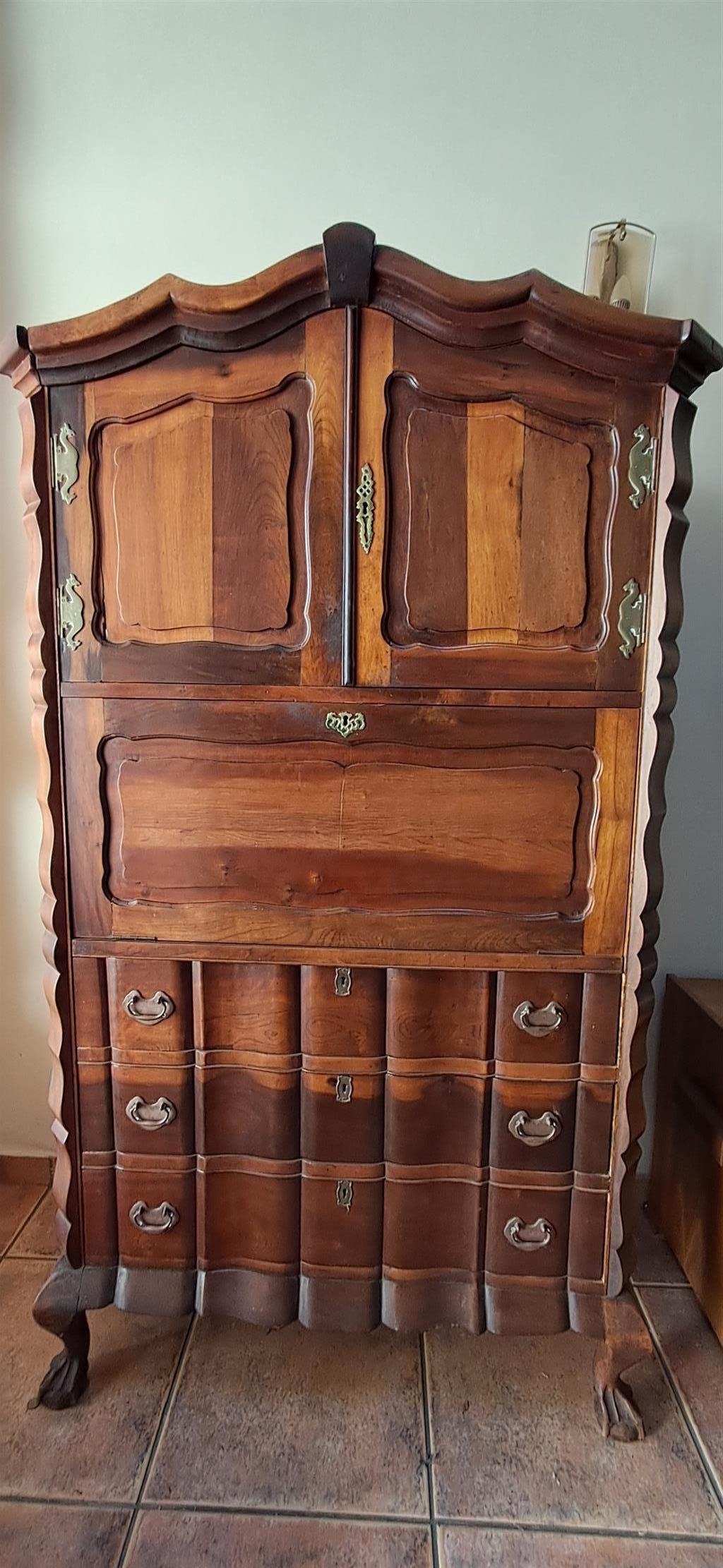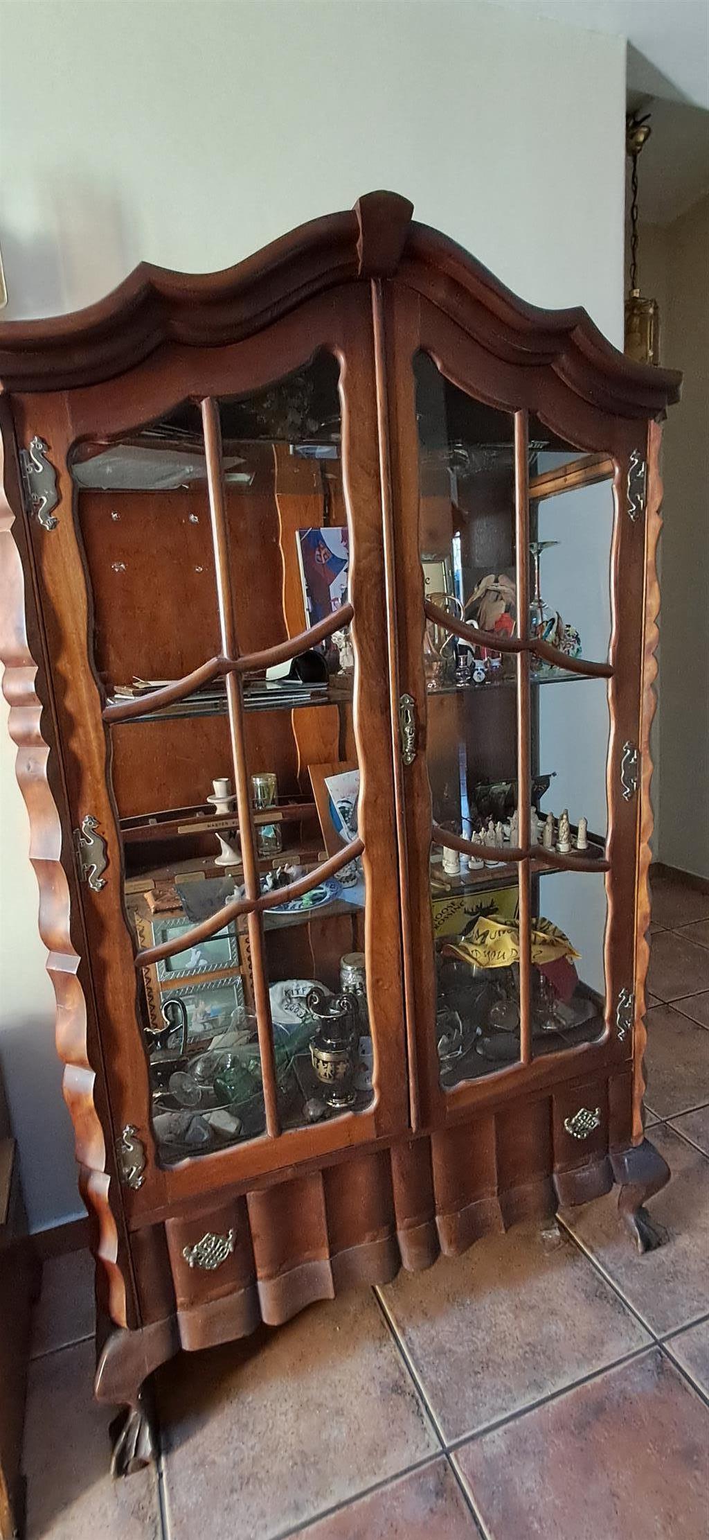 Liquor cabinet with cupboard and 4 drawers. Display cabinet with glass panes and one drawer. Ball and claw design.