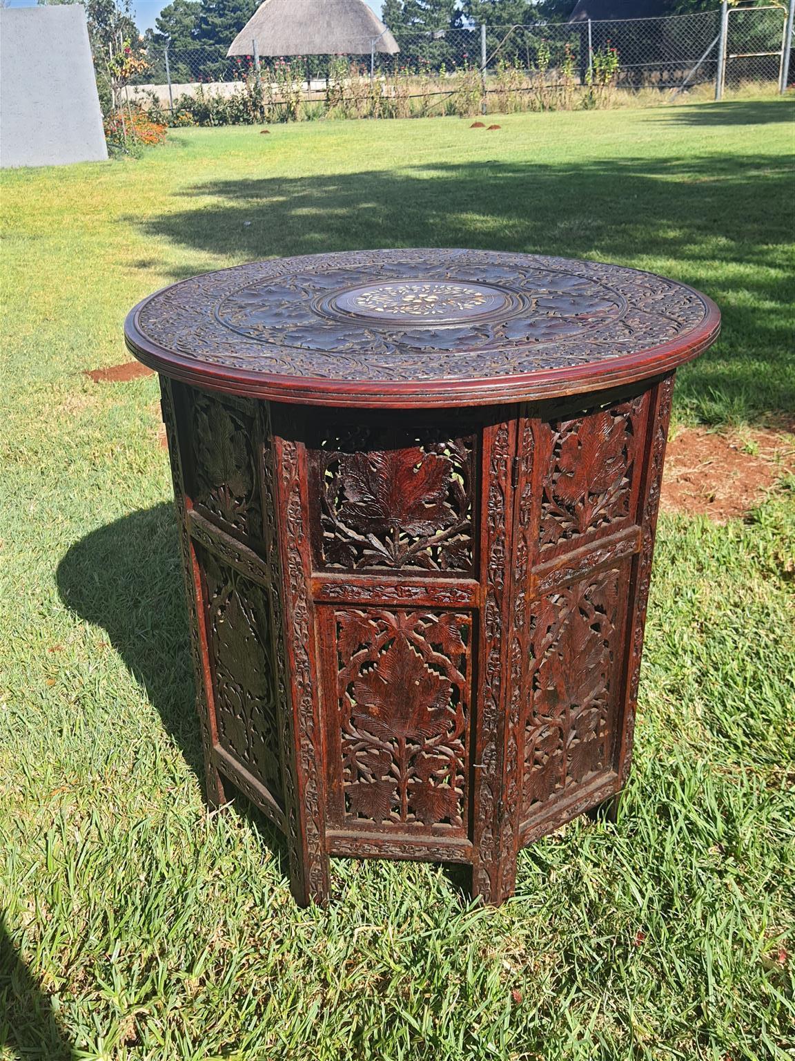 Damascus, bone inlaid with good carved detail, folding tray table, circa 1900.