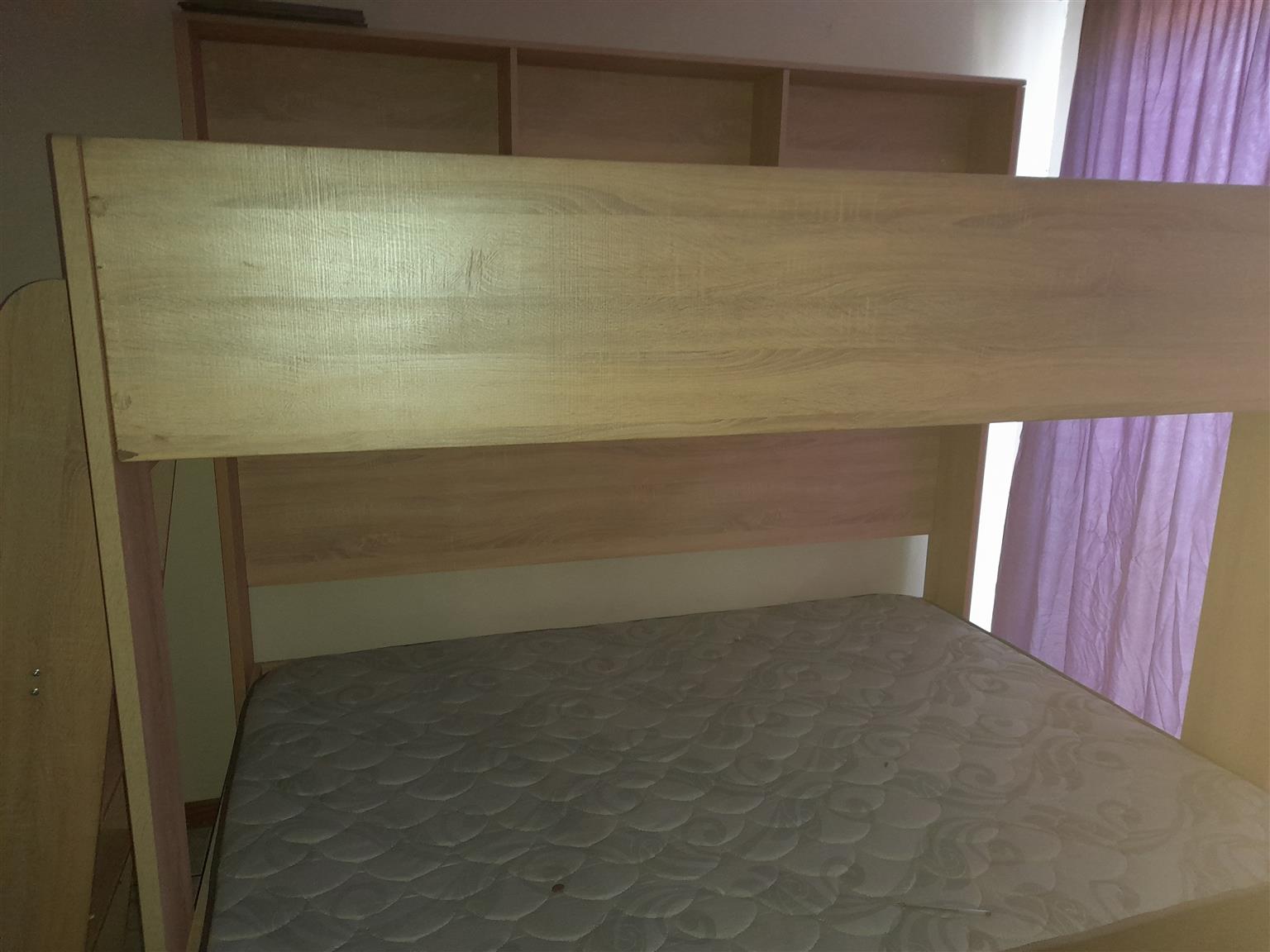 Wood Double Bunker, double bed and Single bed with ladder bookshelf. More details: