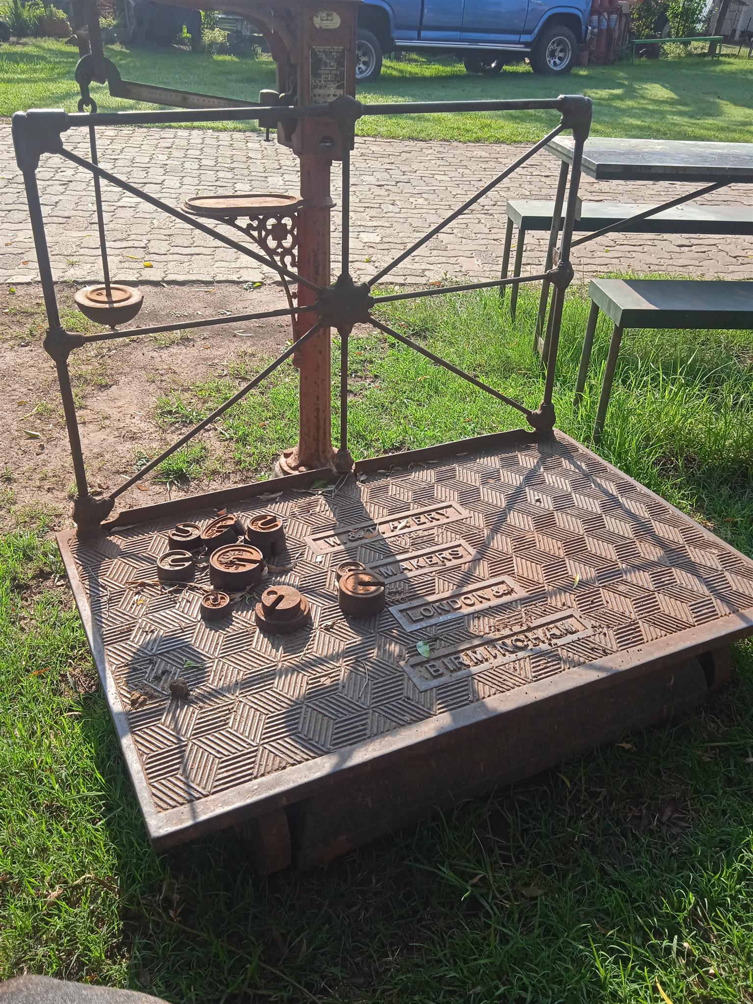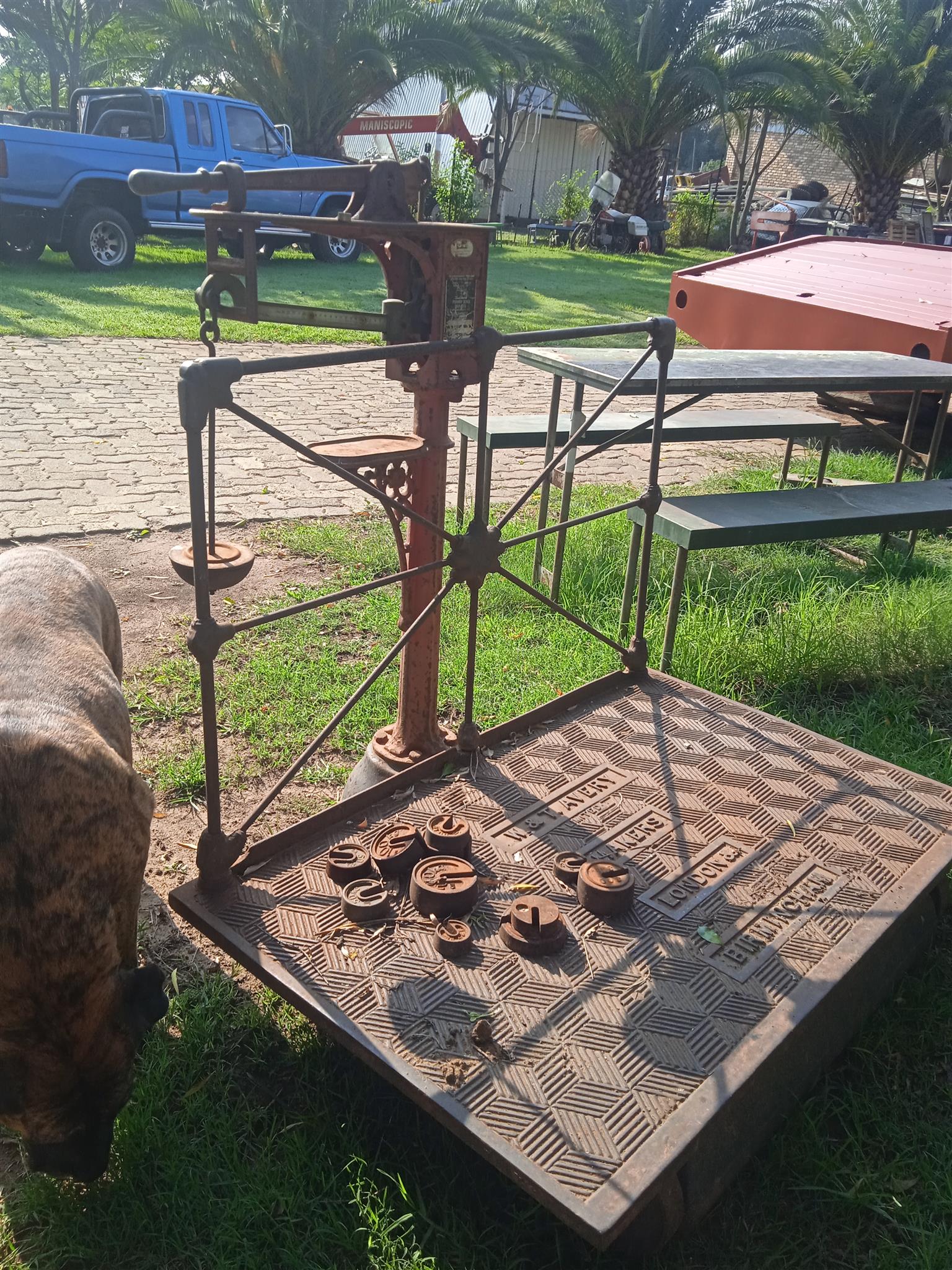 Avery scale dates back to 1945. Was used on an old railway platform. Works with pounds and kg. Comes with accessories. Selling at R5500.