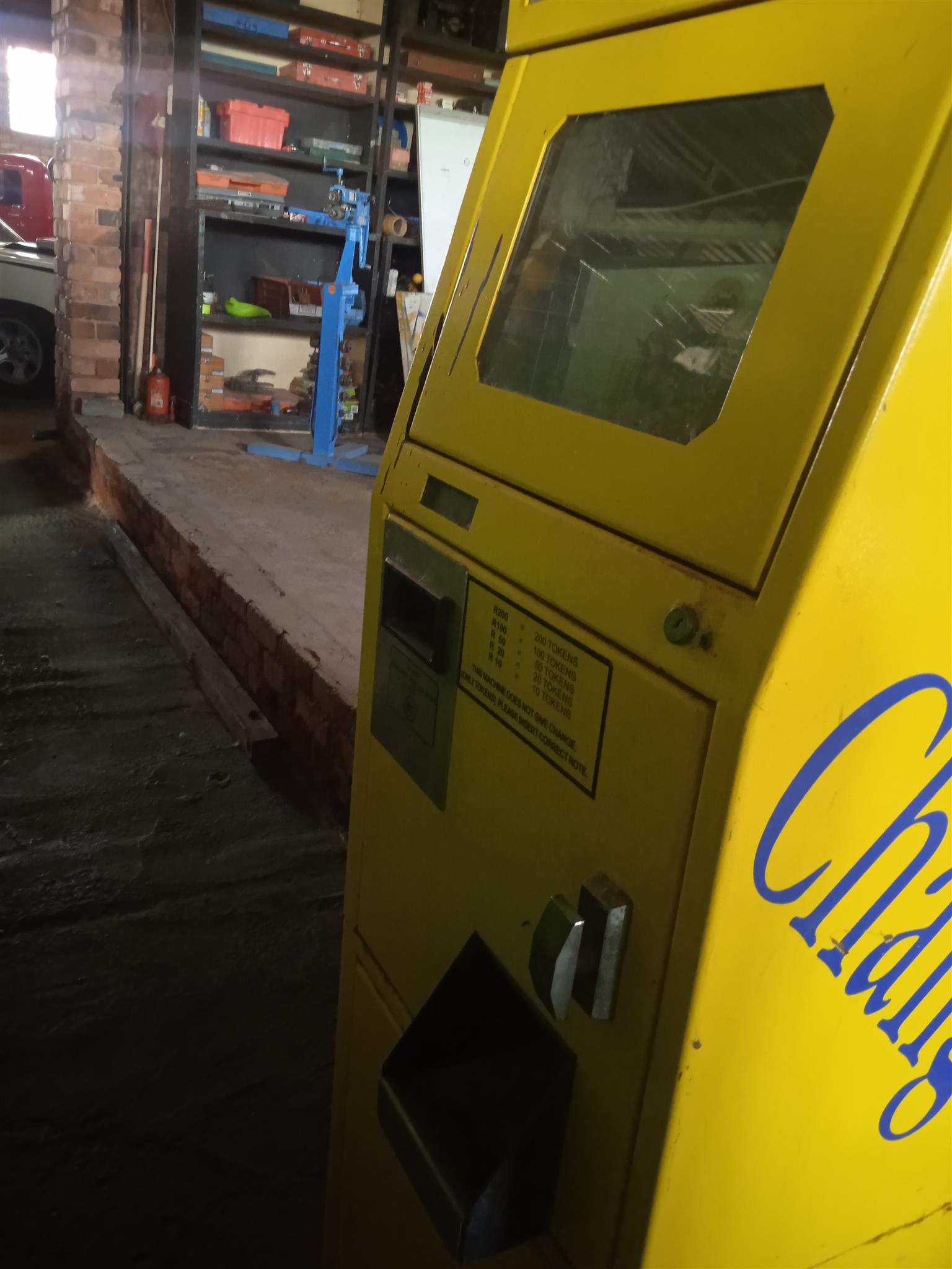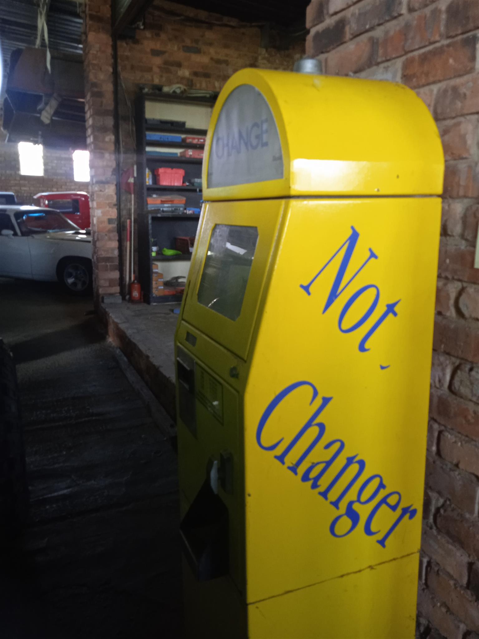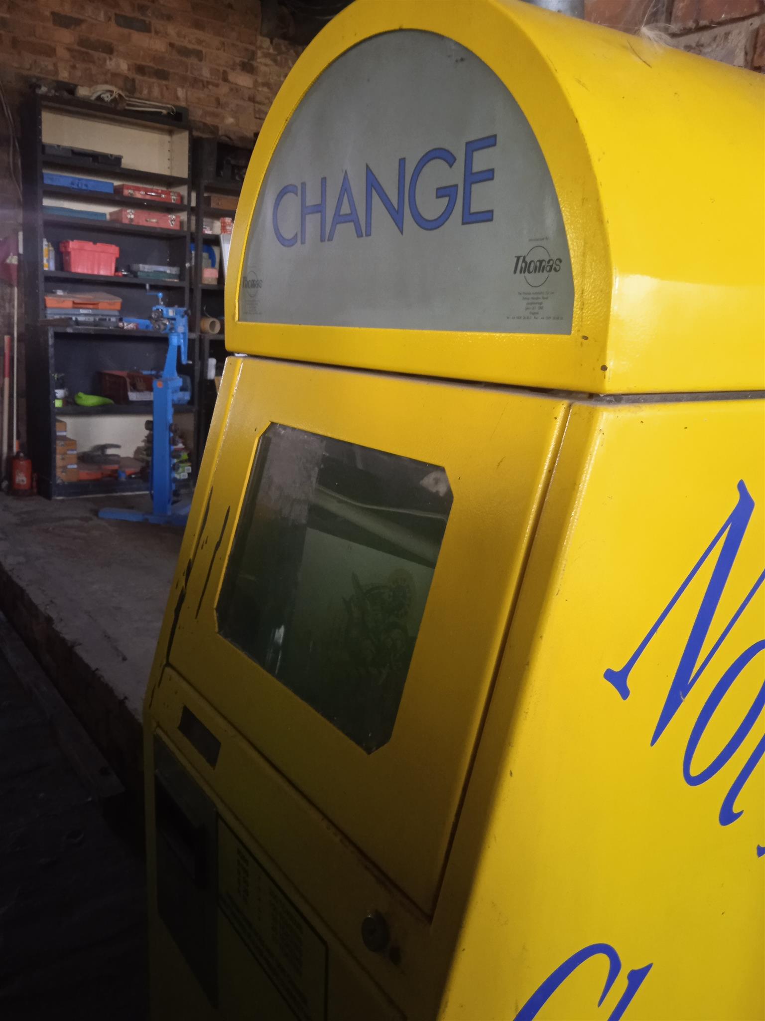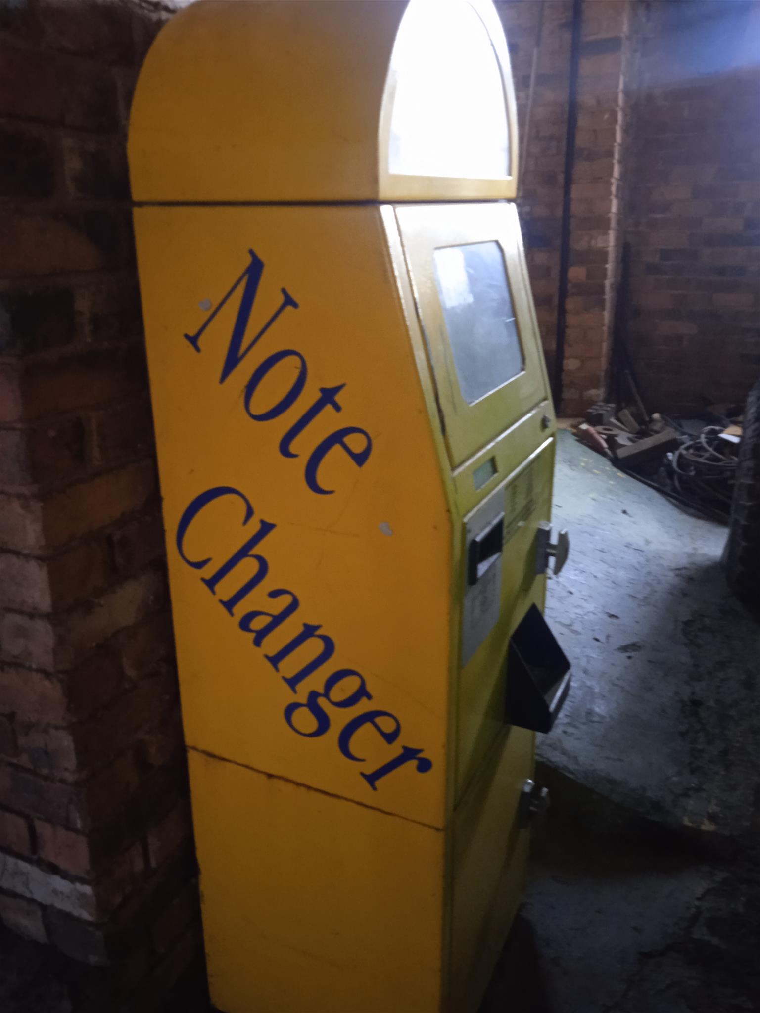Coin change over machine. Came from Emperors Palace games arcade. Not in working condition. Selling at R2500.