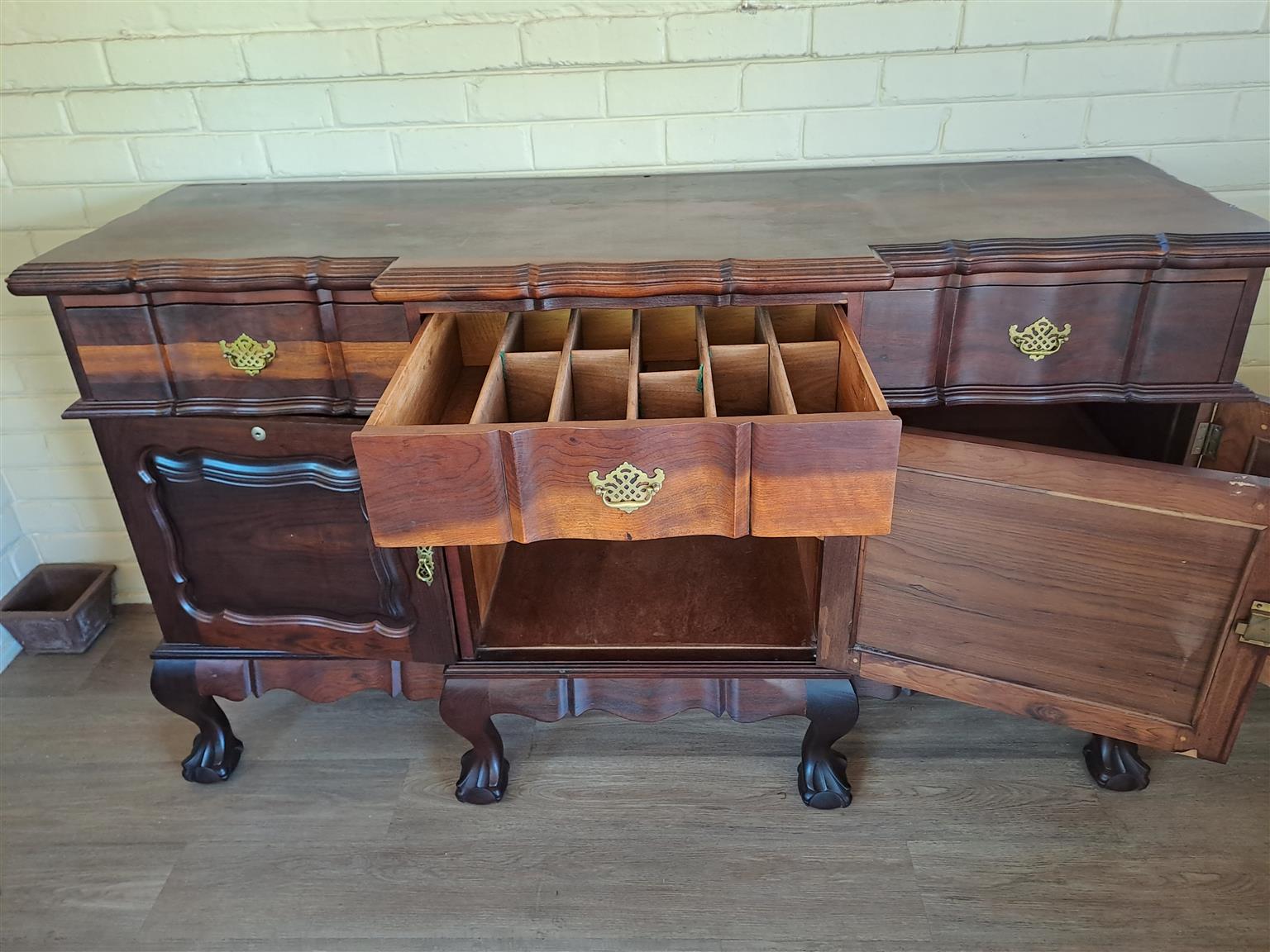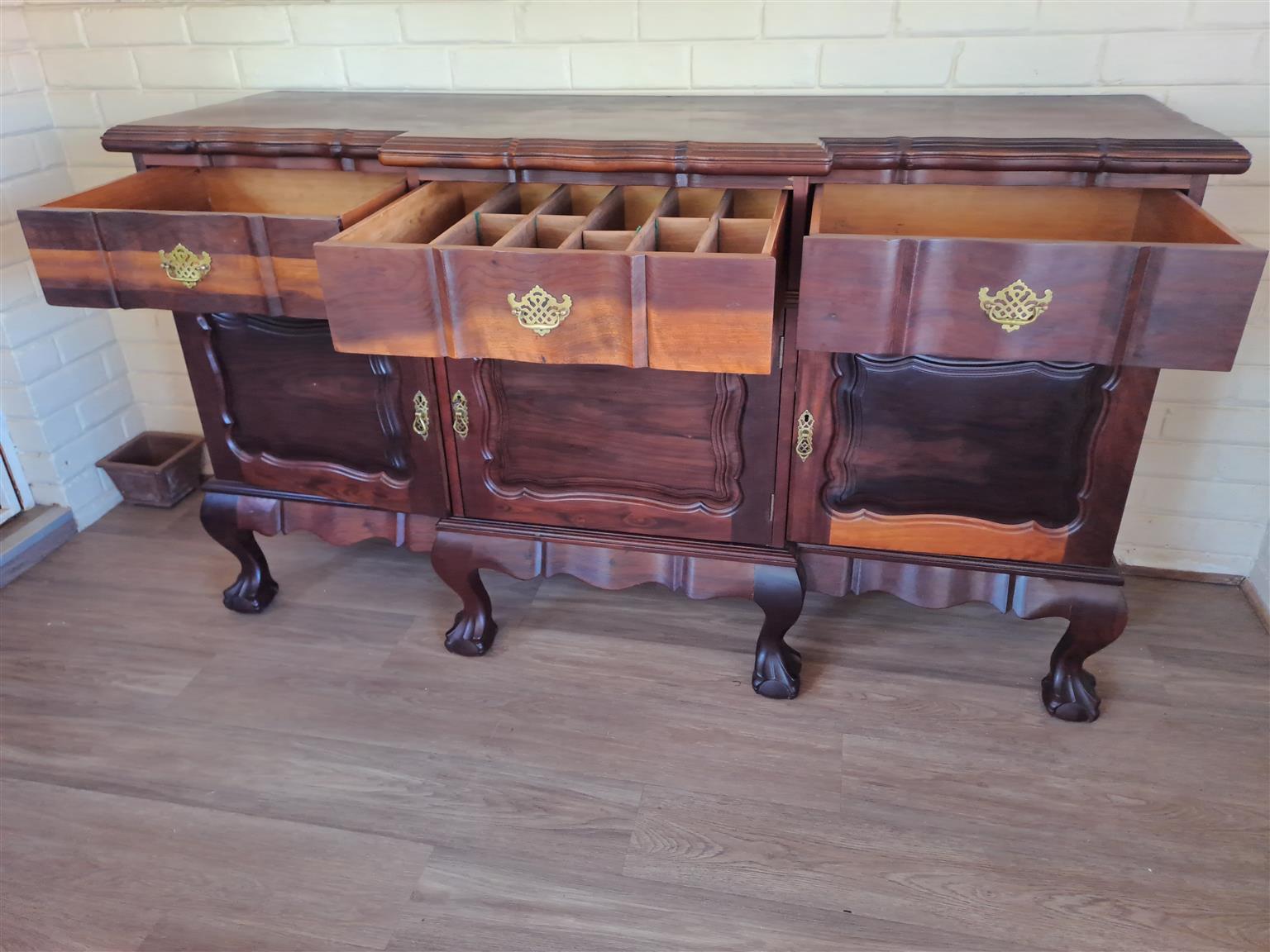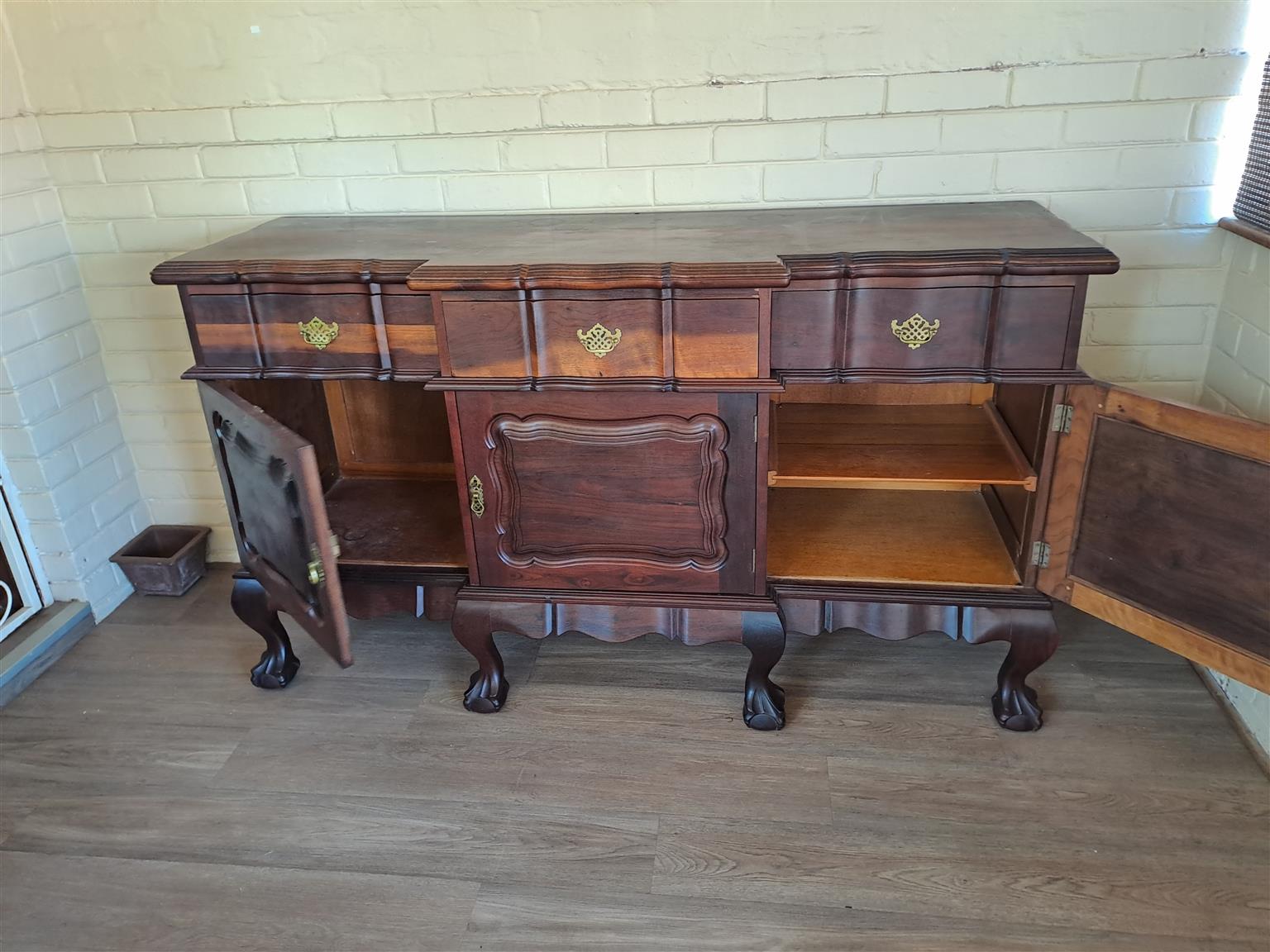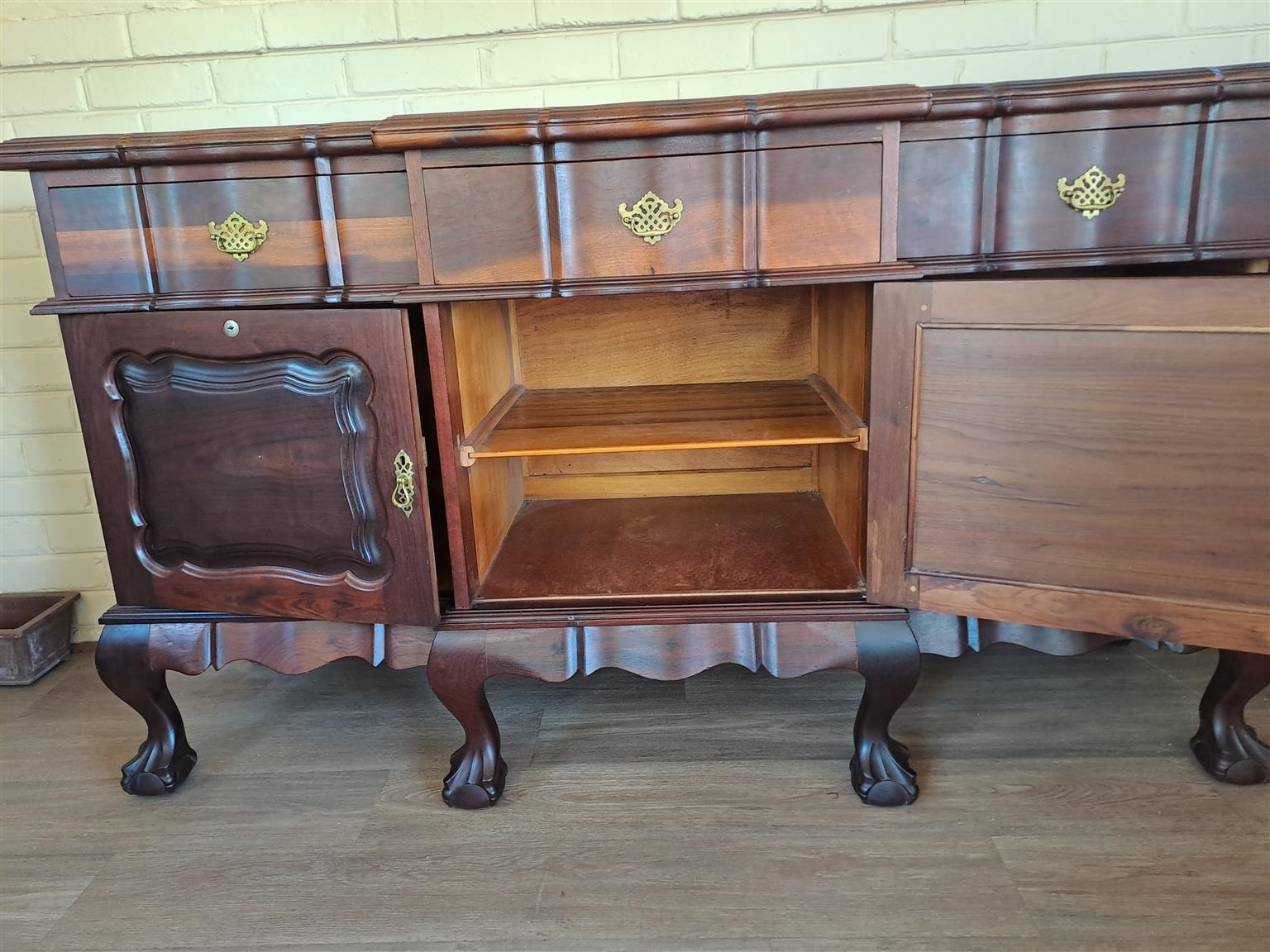Large sideboard. With 8 ball and Claw legs. Was used in a Salon with a huge mirror on top. Very rare find. Solid Imbuia