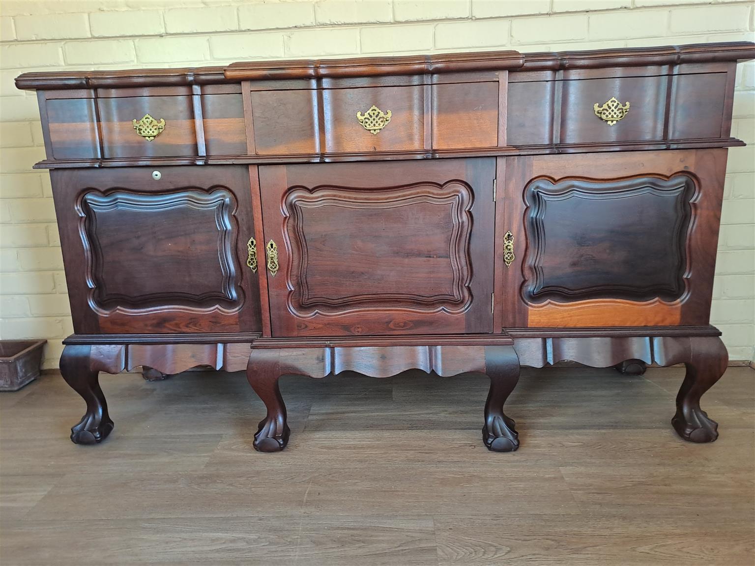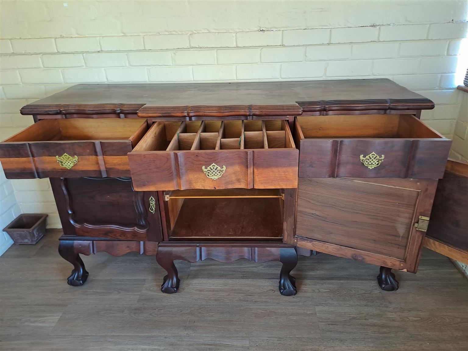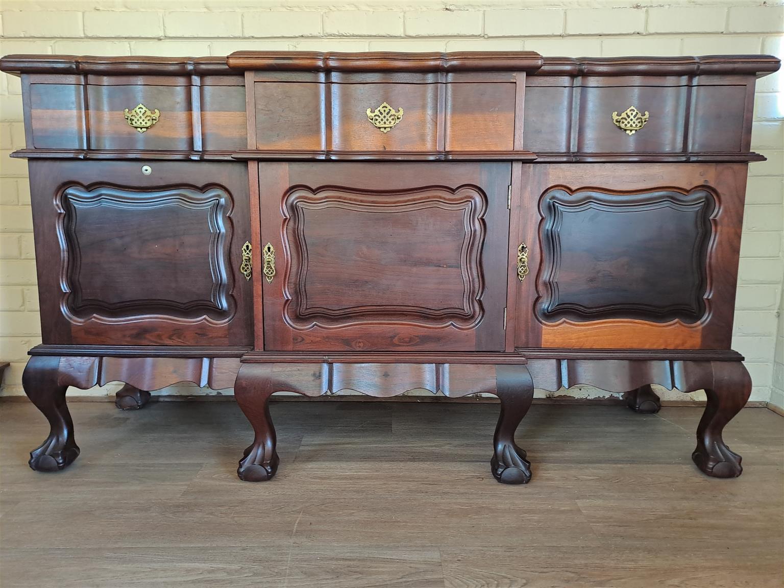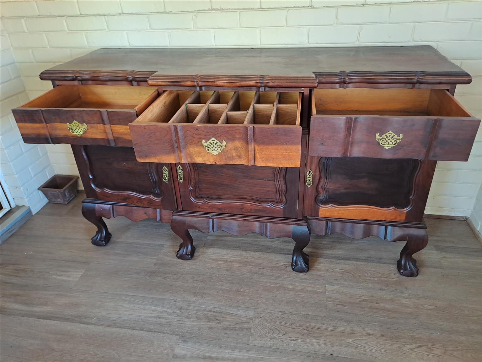 Large sideboard. With 8 ball and Claw legs. Was used in a Salon with a huge mirror on top. Very rare find. Solid Imbuia