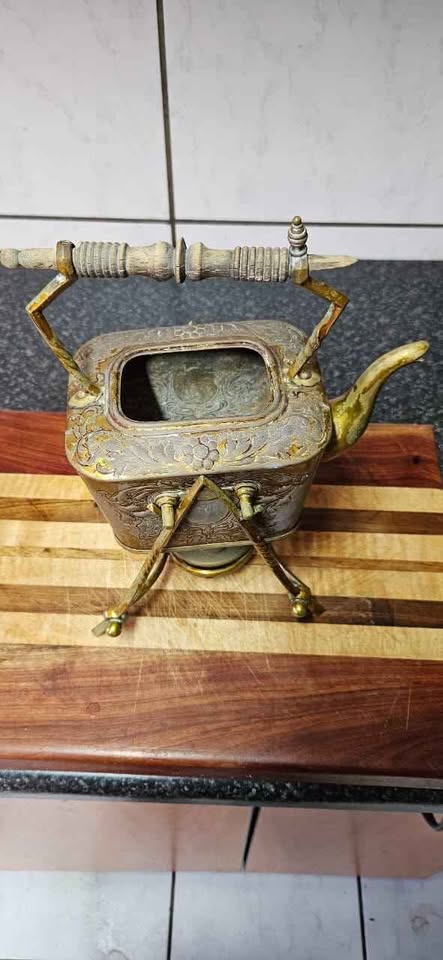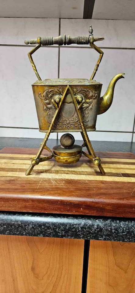 Antique Victorian Quality Brass Kettle with Stand & Oil Burner