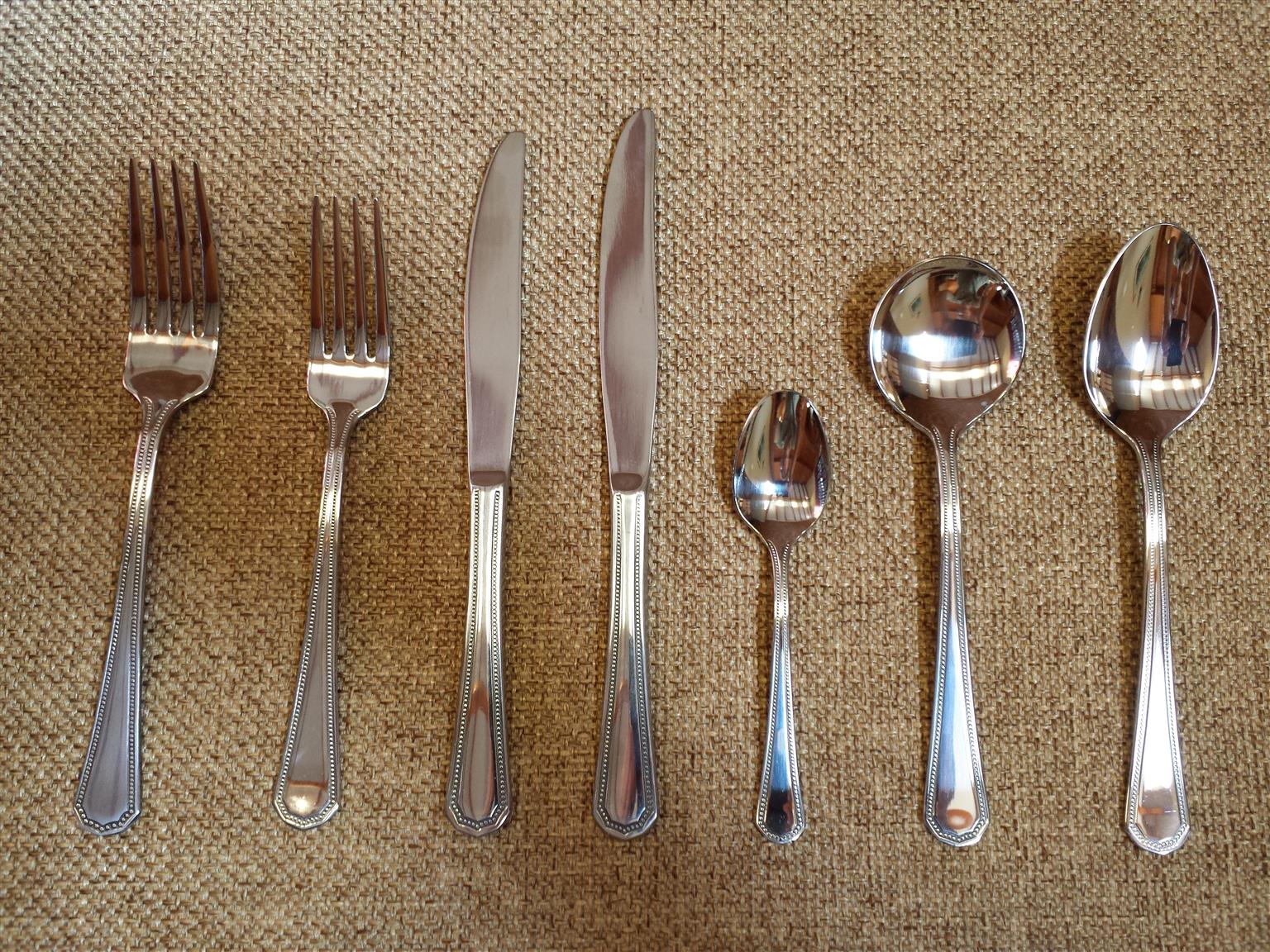 Oneida 18/8 stainless 84 piece cutlery set. This set is brand new and unused, still in original plastic pockets. Two different size forks and knives, all packed in wooden case (included): R6000.00.