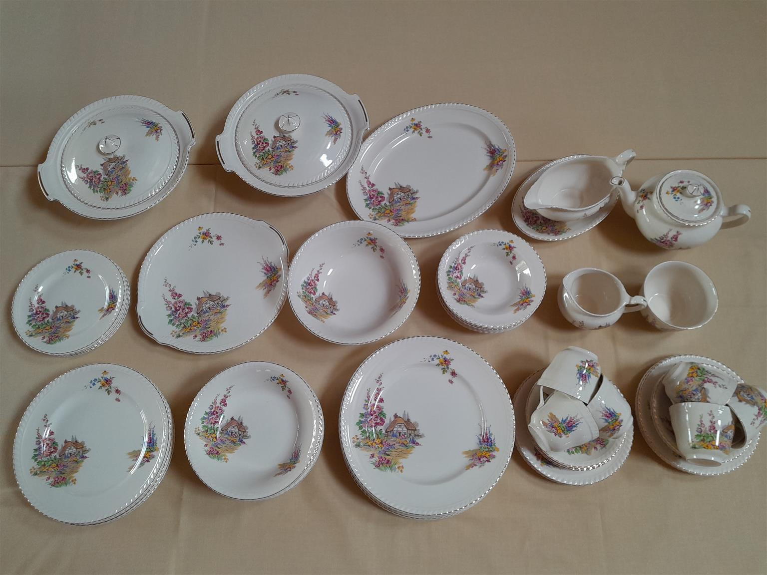 Johnson Bros Old English Cottage (gold trim - made in England) 60 piece Dining set (as new). No chips or cracks. All pieces are in "as new" condition with no fading and absolutely no wear: R6000.00