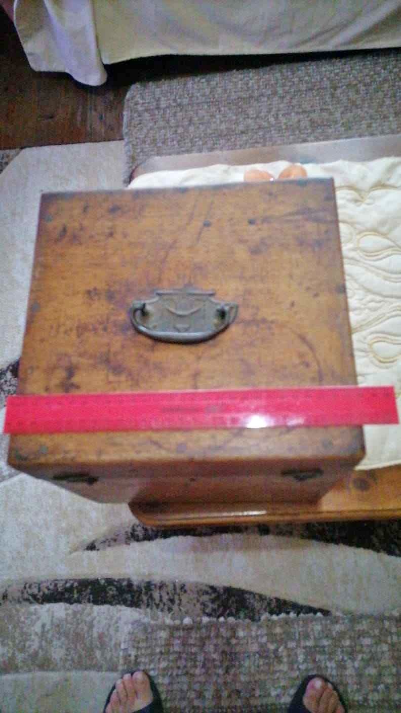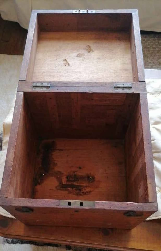 Vintage handmade wooden storage box with dovetail joints and a metal handle. Origin: Europe Time Period: Mid-20th Century Description: Handmade storage boxes like this one were once common in households for storing various items or just displayed ornamentally. Most of these type boxes were made in early 19th century, however am not 💯 certain of time manufactured. Box measures 280mm x 280mm. Has all its original clasps and hinges. WhatsApp 0️⃣ 8️⃣ 2️⃣ 4️⃣ 9️⃣ 5️⃣ 7️⃣ 0️⃣ 6️⃣ 9️⃣ for more. Collection Fettes Road, North End Shipping can be arranged for buyer's account.