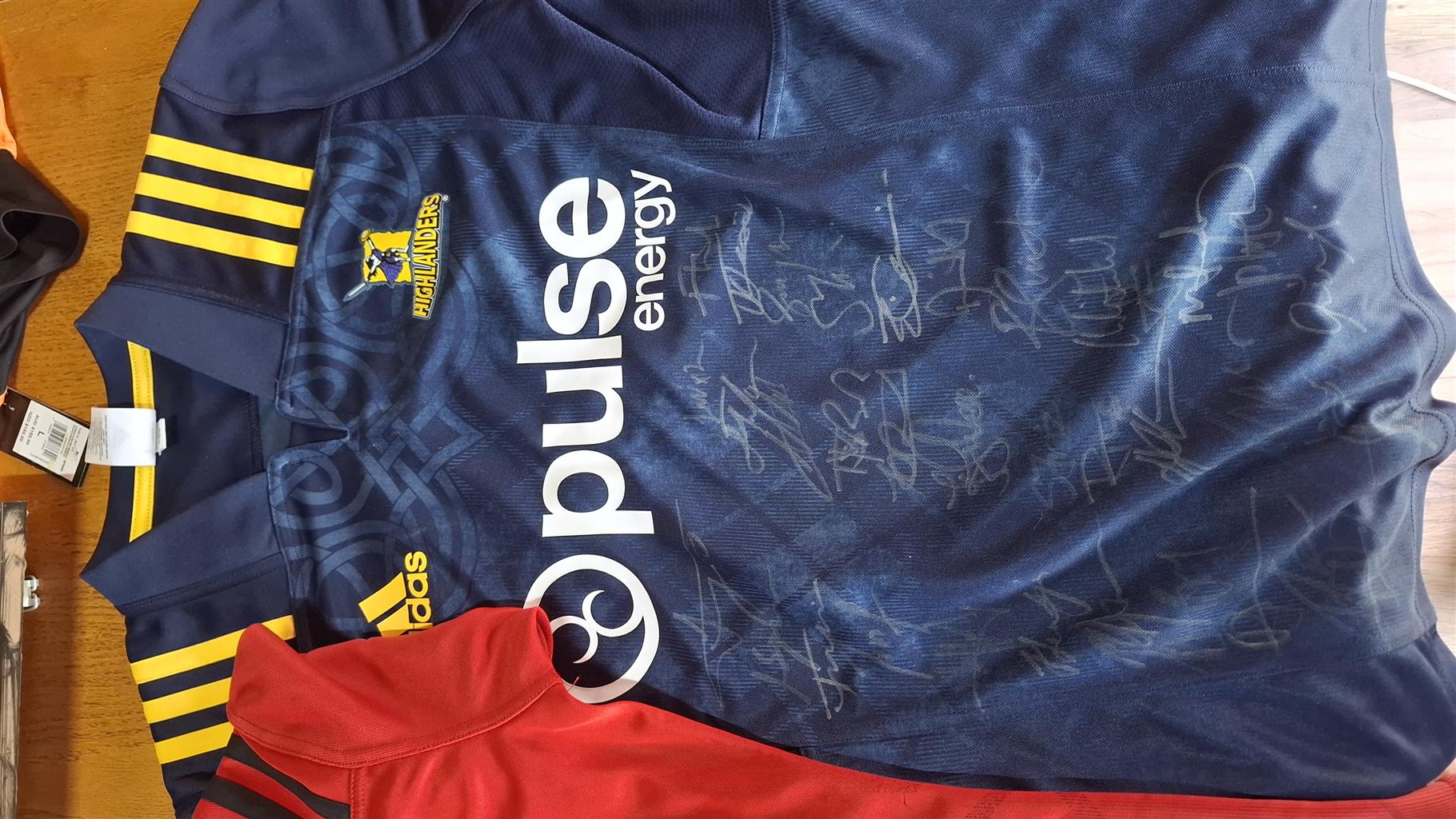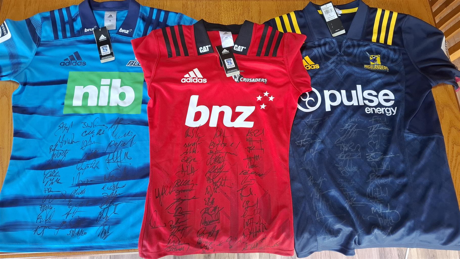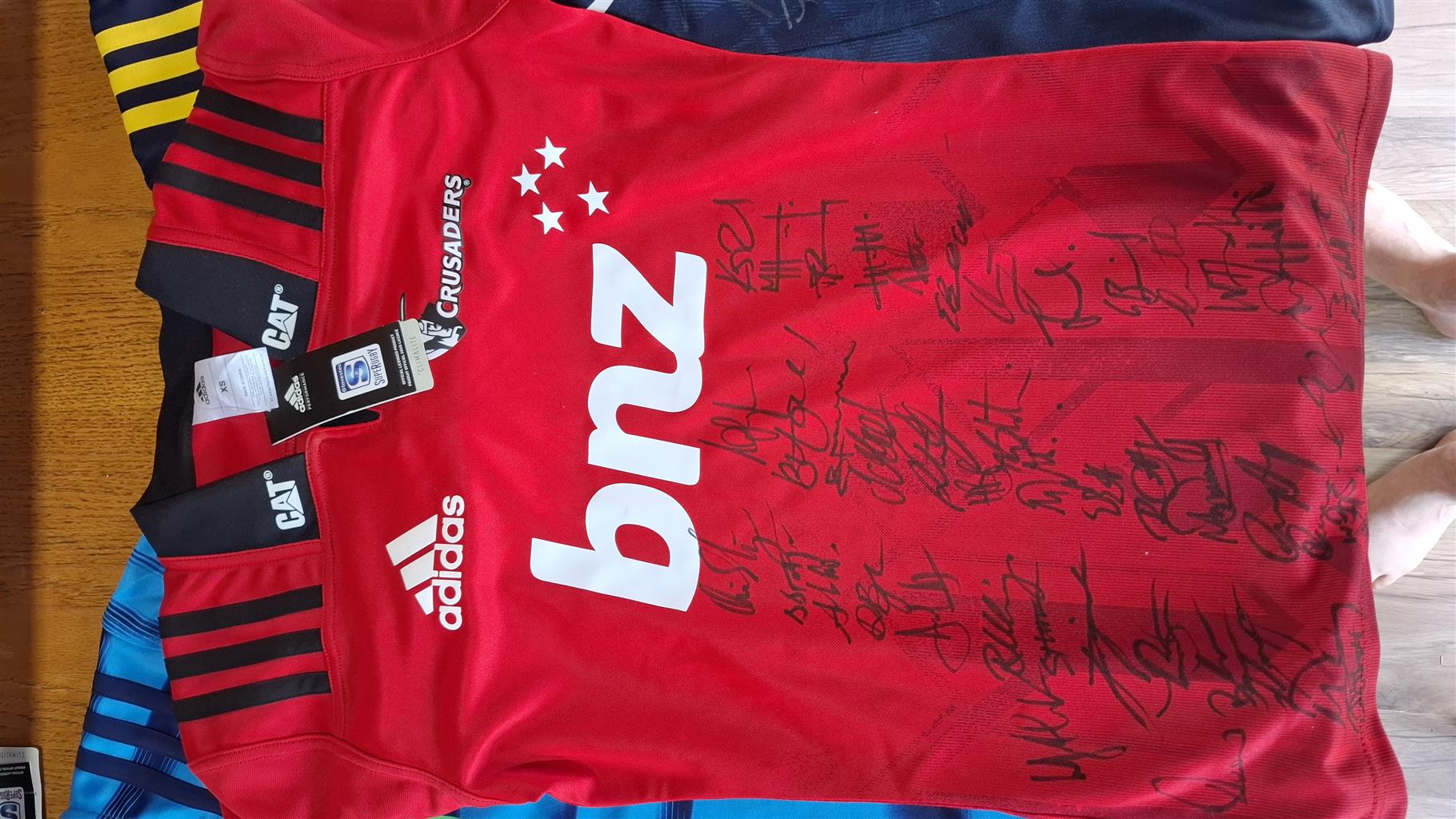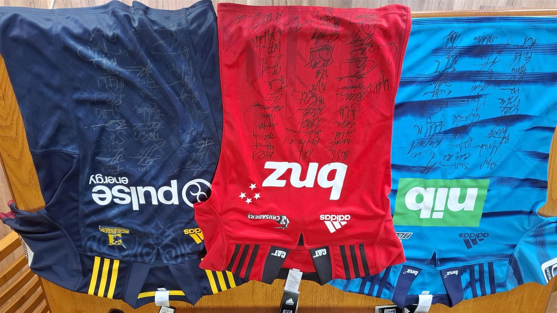 Crusaders, Blues, Highlanders signed jerseys from the 2018-2019 squads, which included some of the best All Black players.