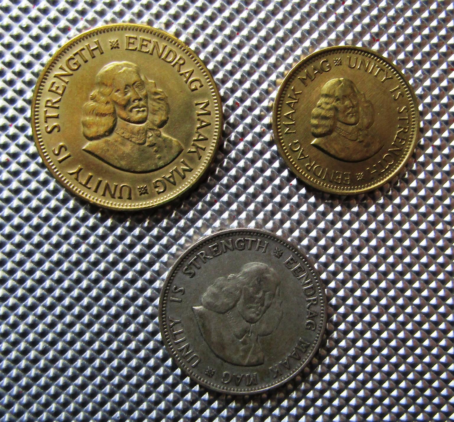 1962 20c; 1961 1c; 1961 1/2c South African Coins