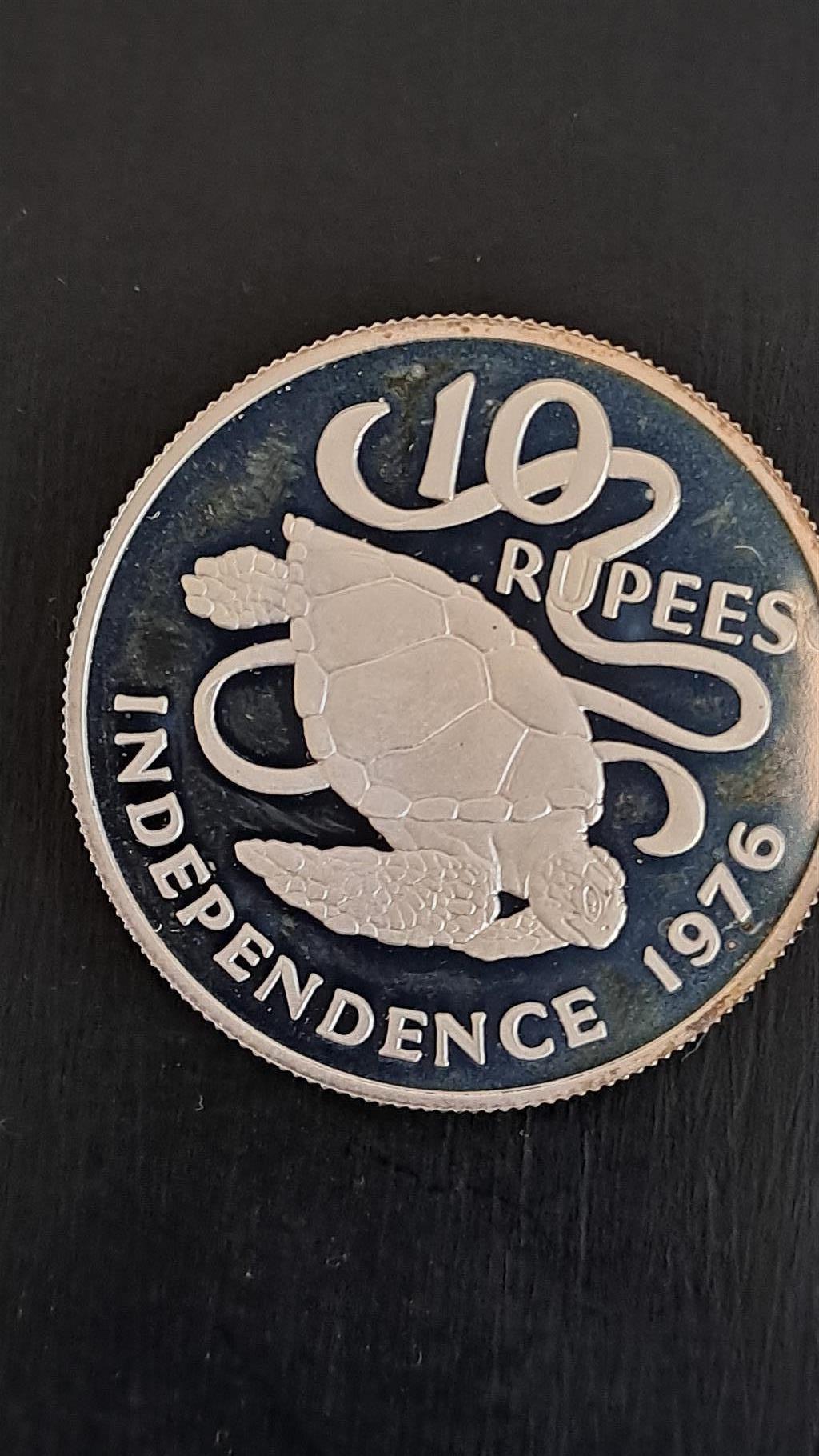 Rare, Seychelles 10 Rupees 1976 Wildlife Green Sea Turtle commemorative coin, uncirculated. A Silver coin with a mirror finish proof coin in excellent condition. It has been part of a coin collection for several years. Sellers accommodation now changing. Best offer secures.