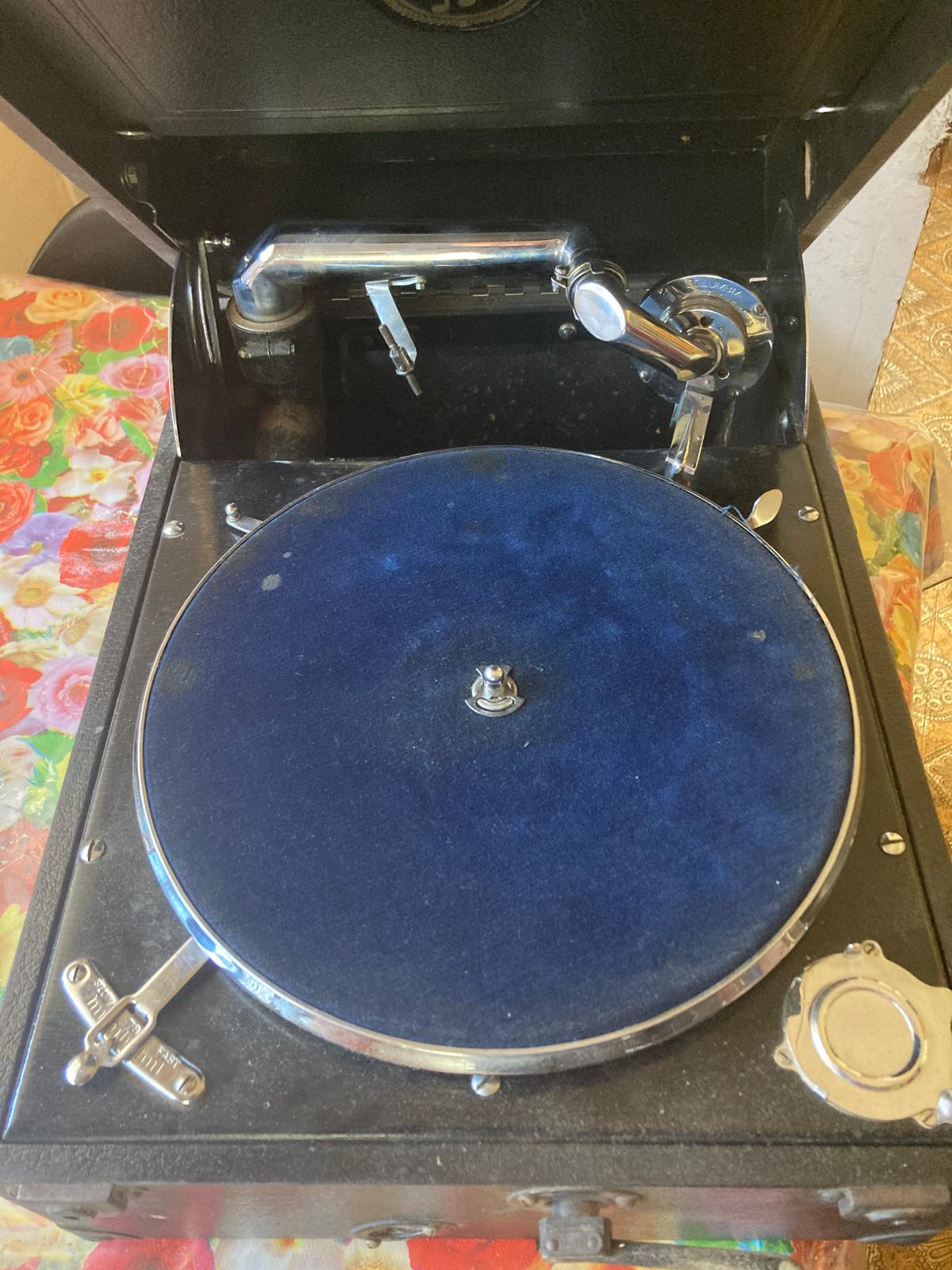 Antique gramophone player - collector's item. Probably more than 100 years old. Serial No 54689. Plays 78-speed vinyl records. Collection of records also available. In good working condition. It is really an item to be exhibited and I haven't got the space.