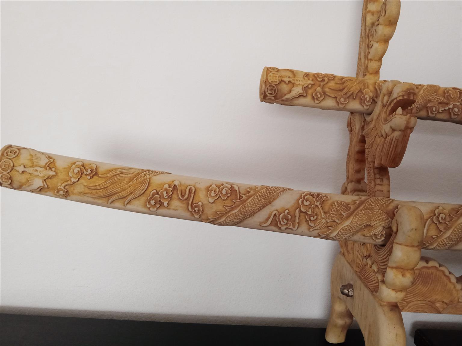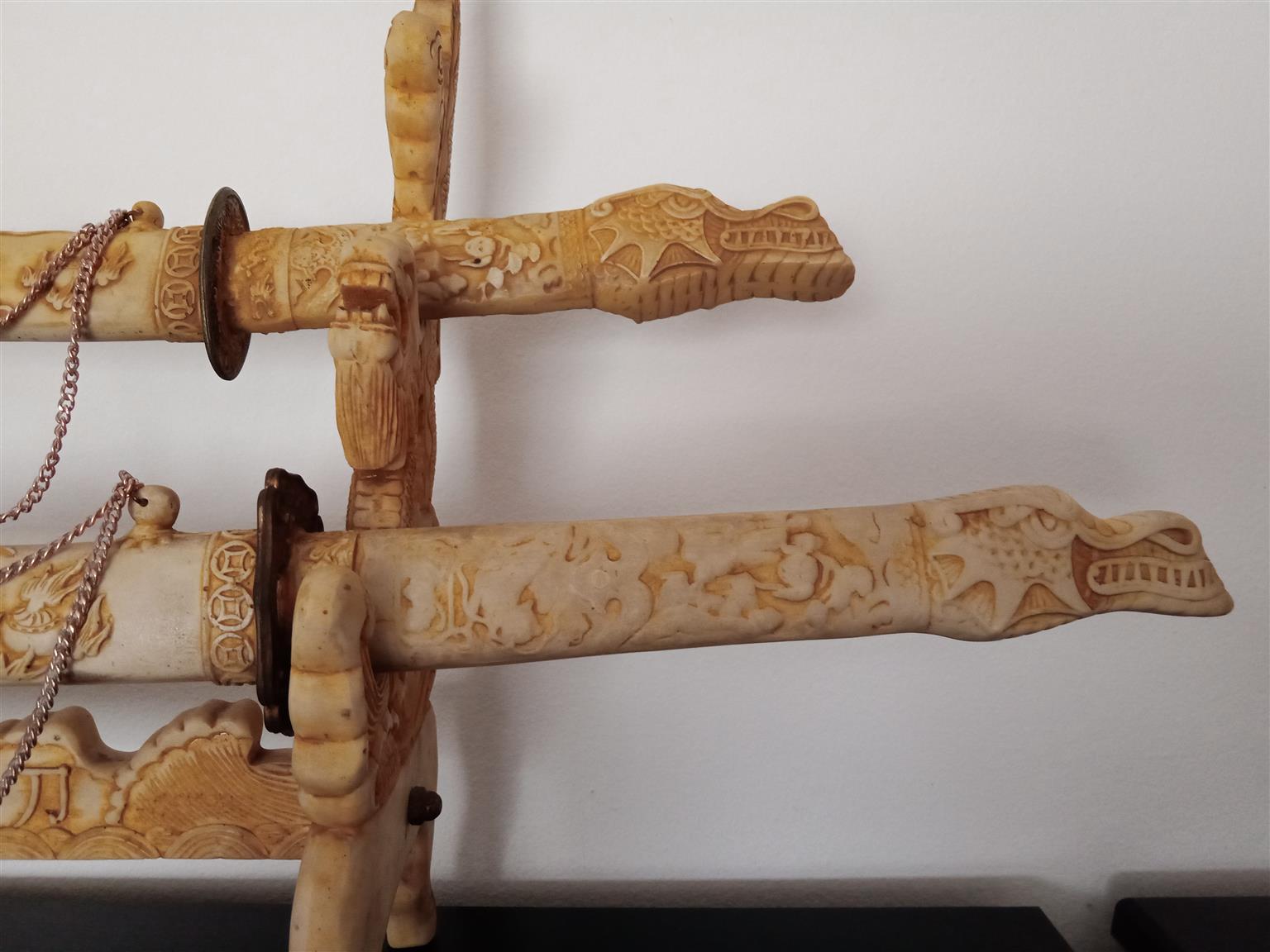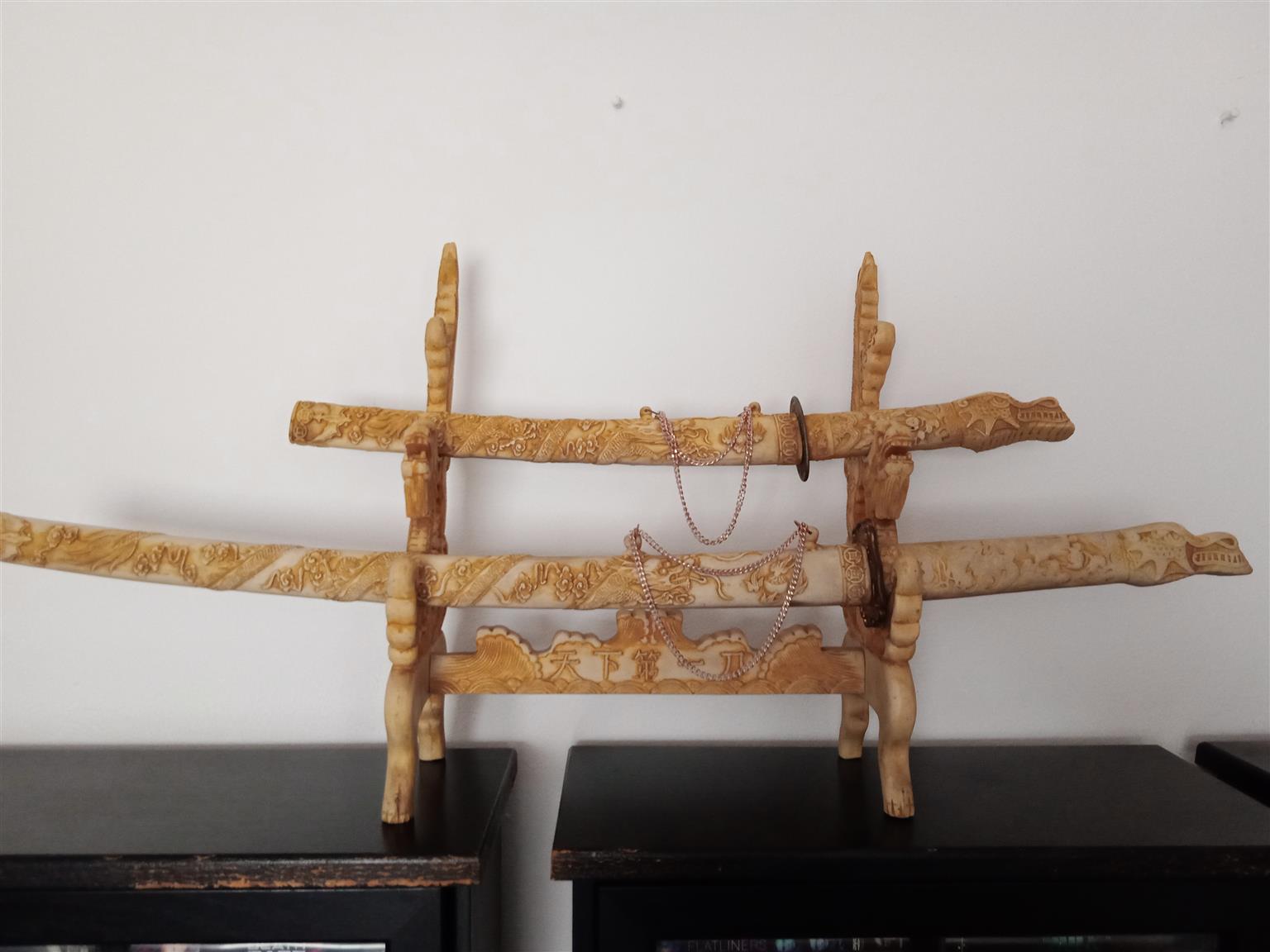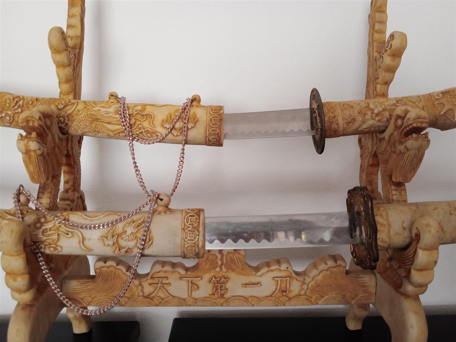Ornamental Coral Display Sword set……. Large 82cm long ….Small 54cm long…..stand height 37cm……cash only R5 300…..buyer must be older than 18 years