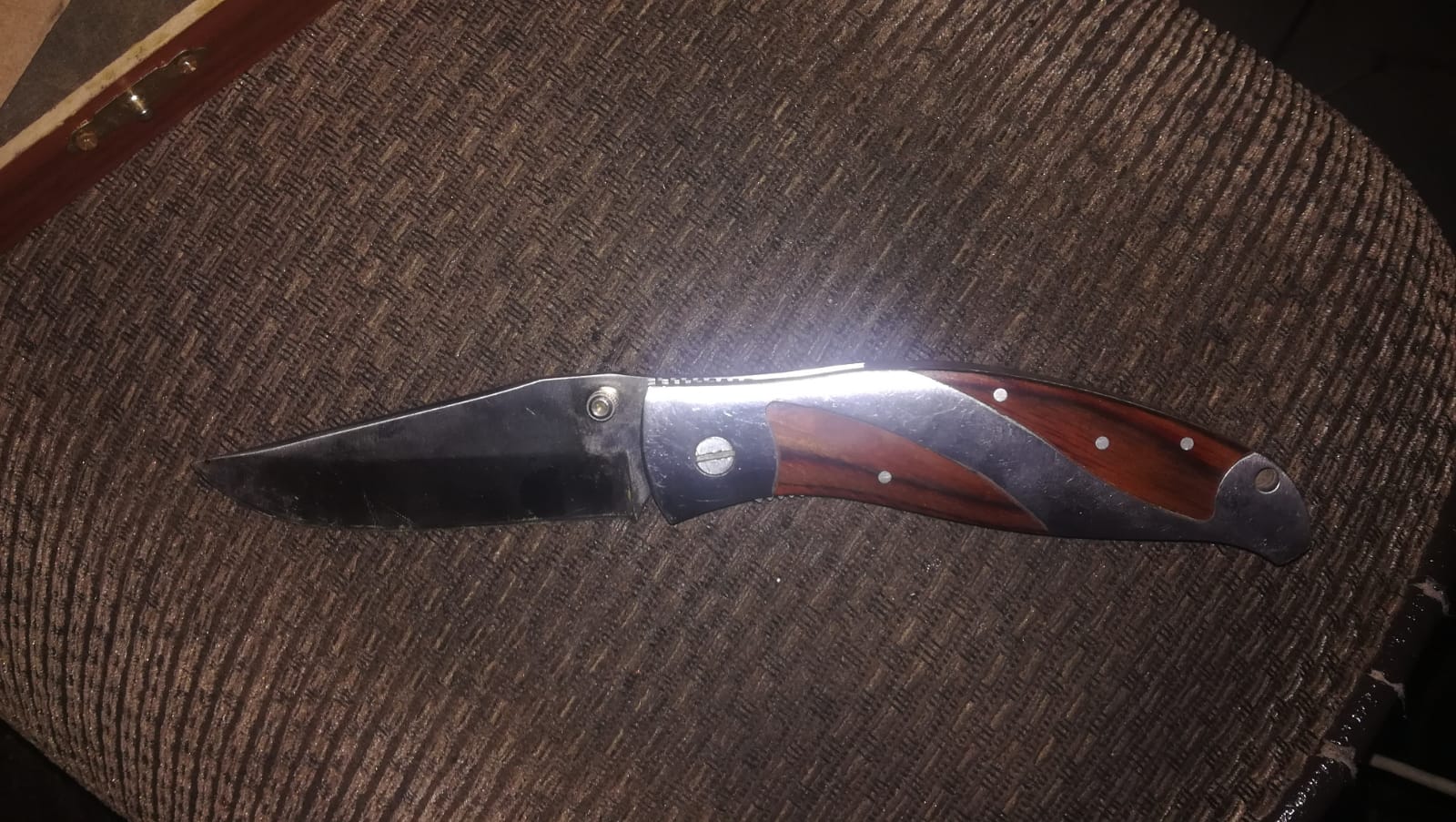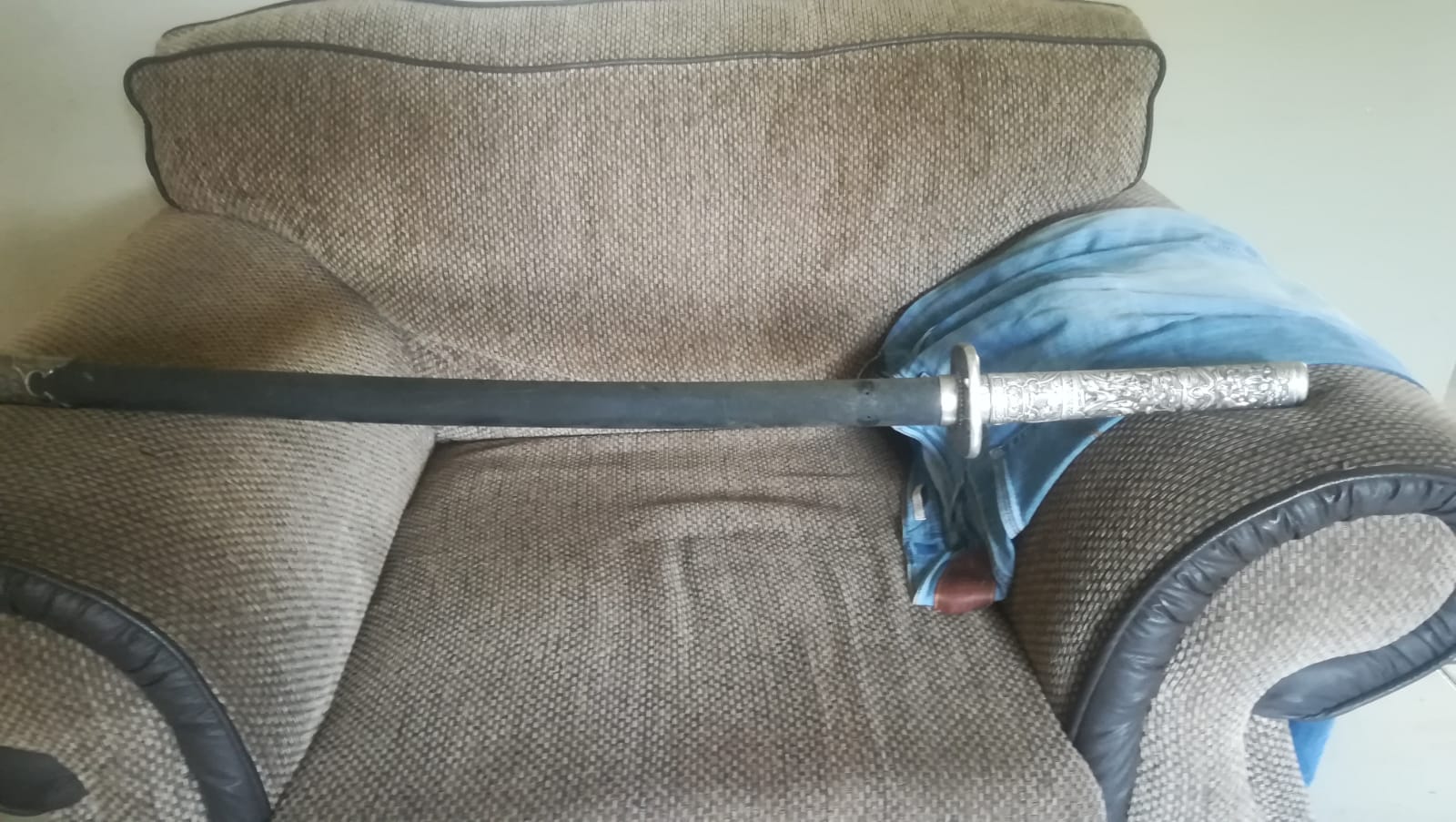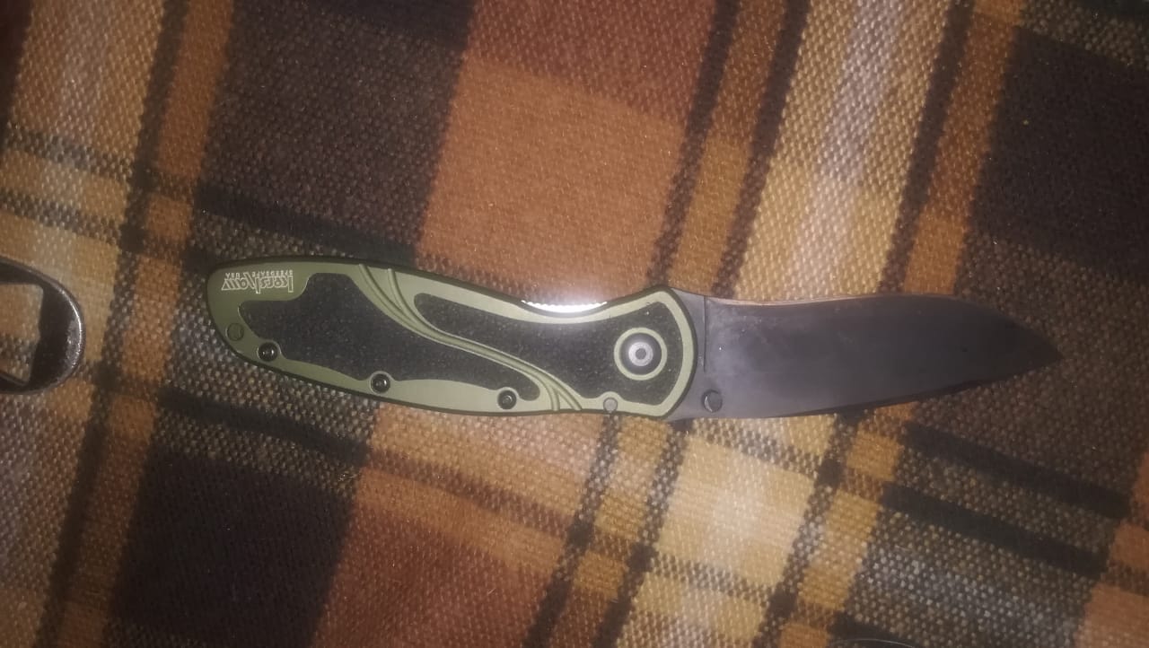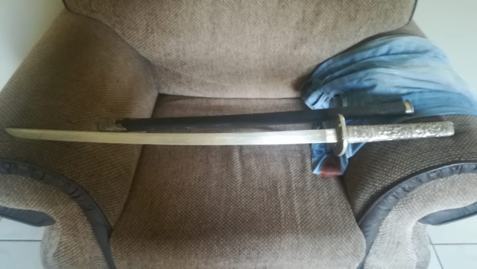 Ornamental Japanese sword and a kershaw hunting knife. More details: