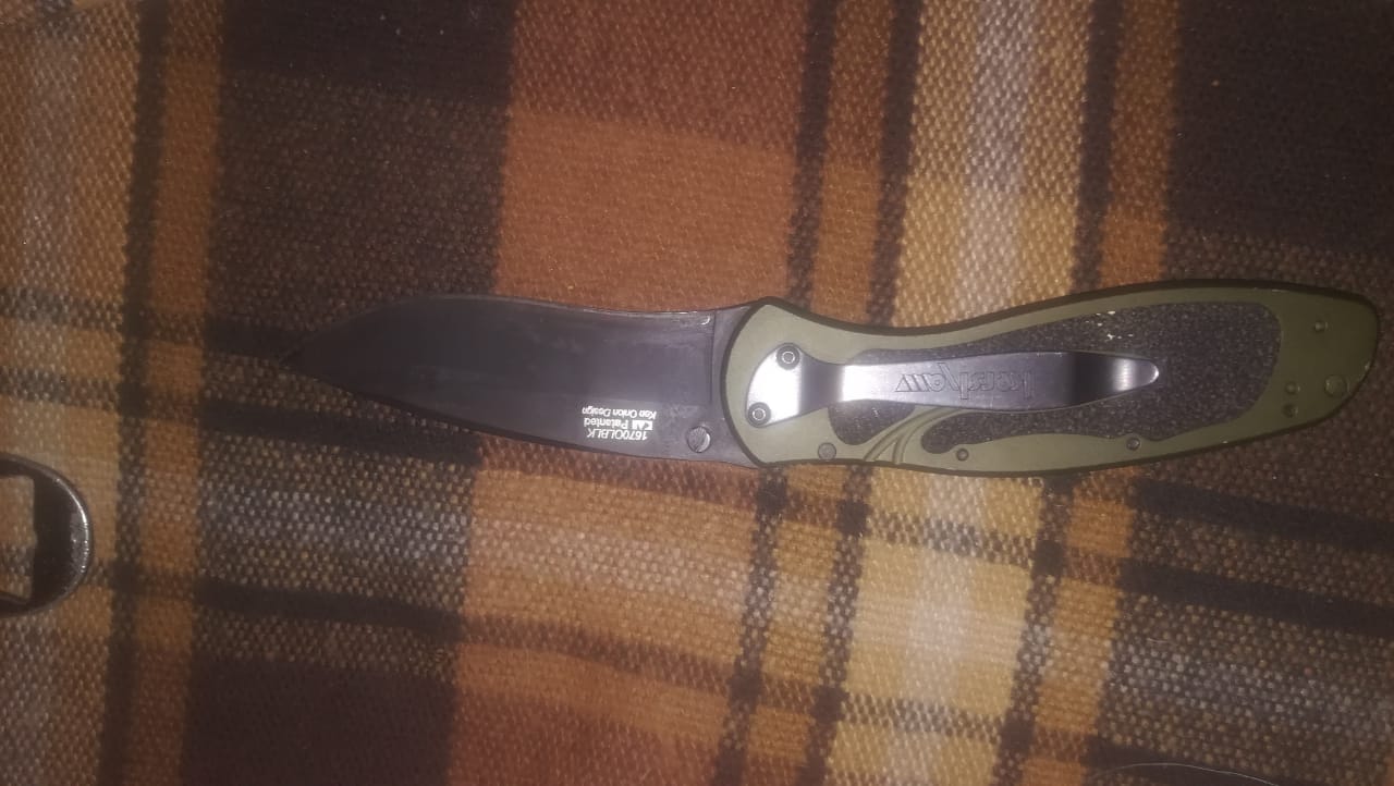A beautiful ornamental Kitana with sheeth and sheeth dagger as well as a kershaw hunting knife(1670blk) Ken onion design