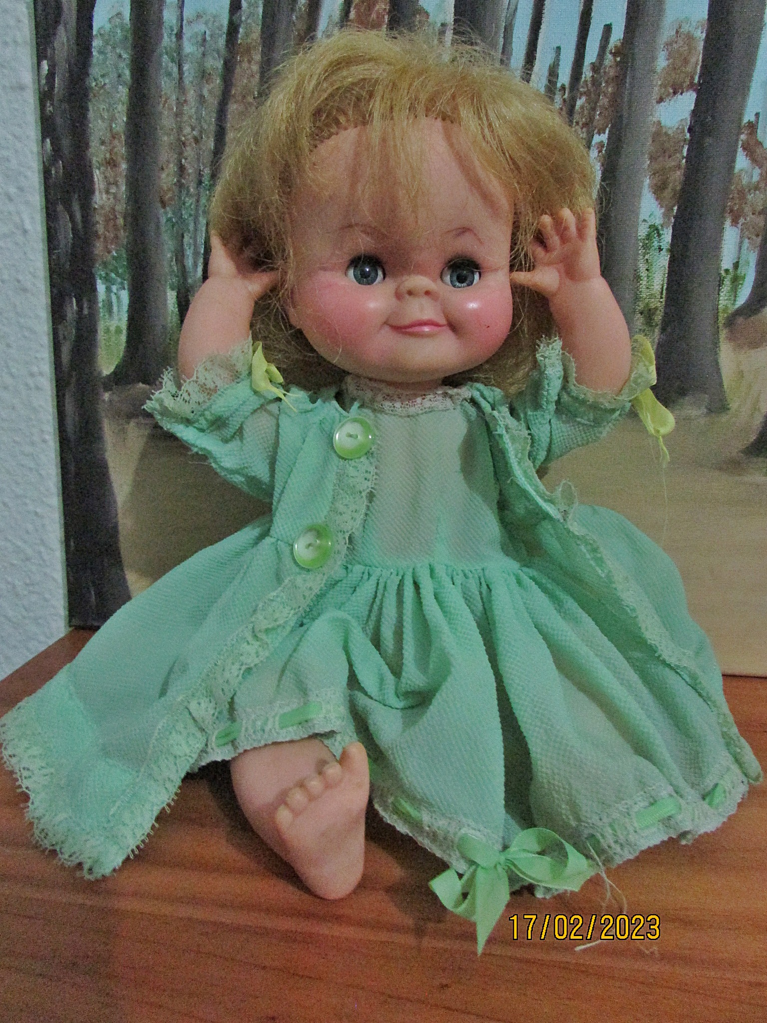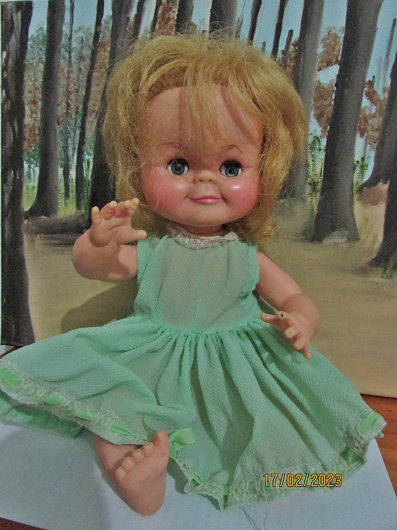 Vintage Doll 345mm tall. 60 Years old. Good condition. Well looked after. De-clutter. Postage for buyers account.