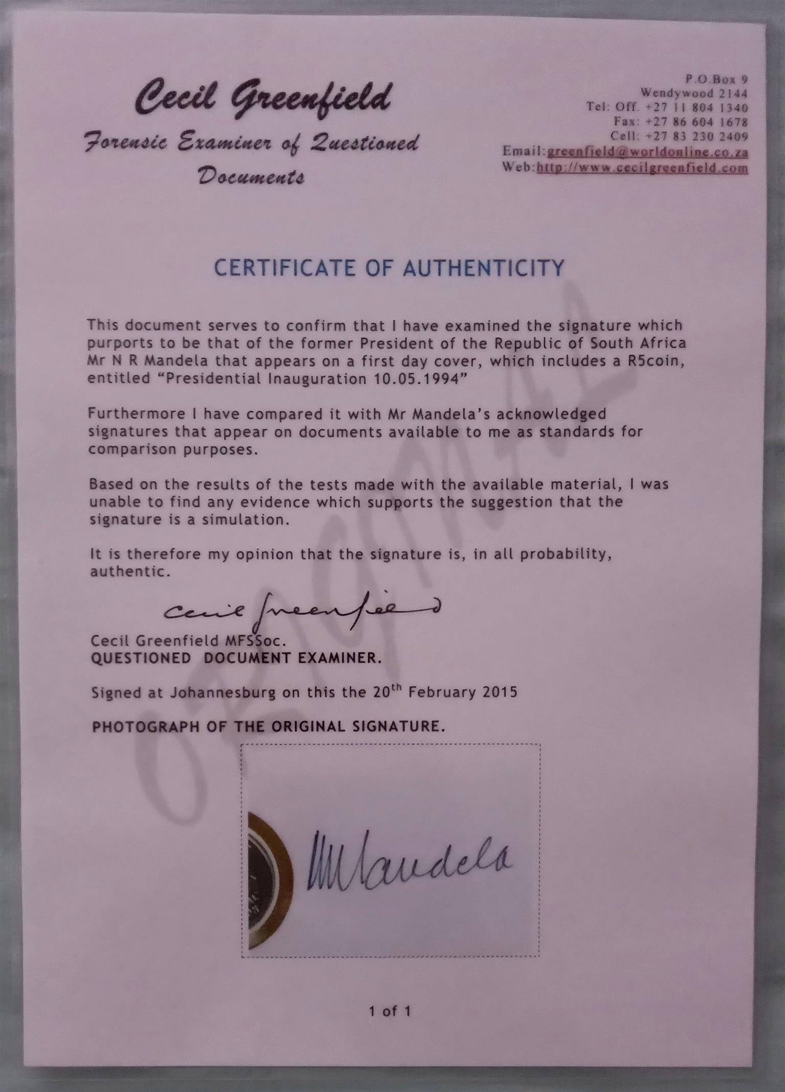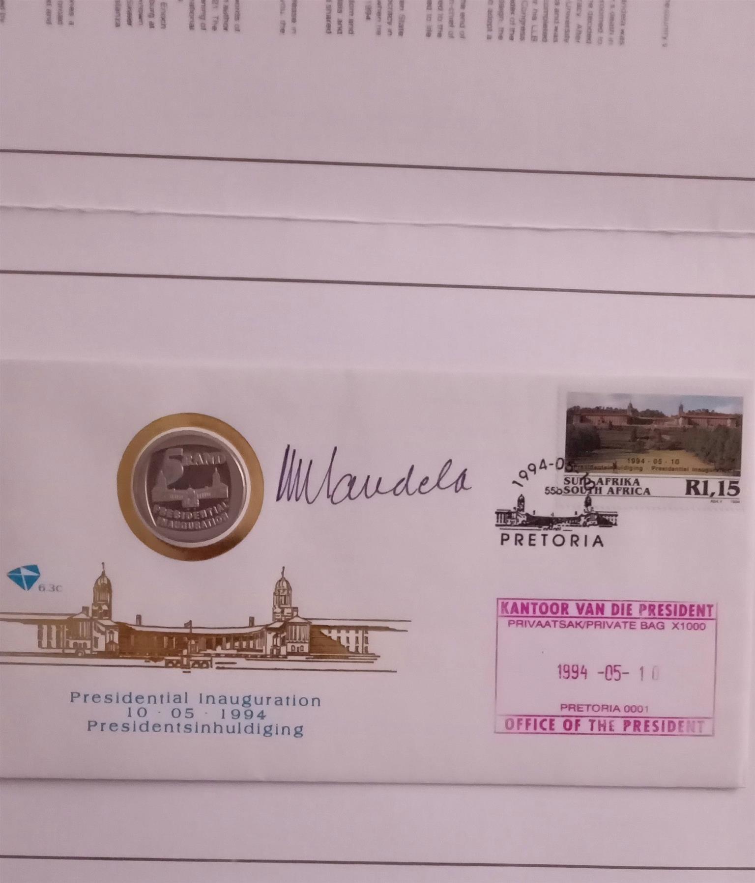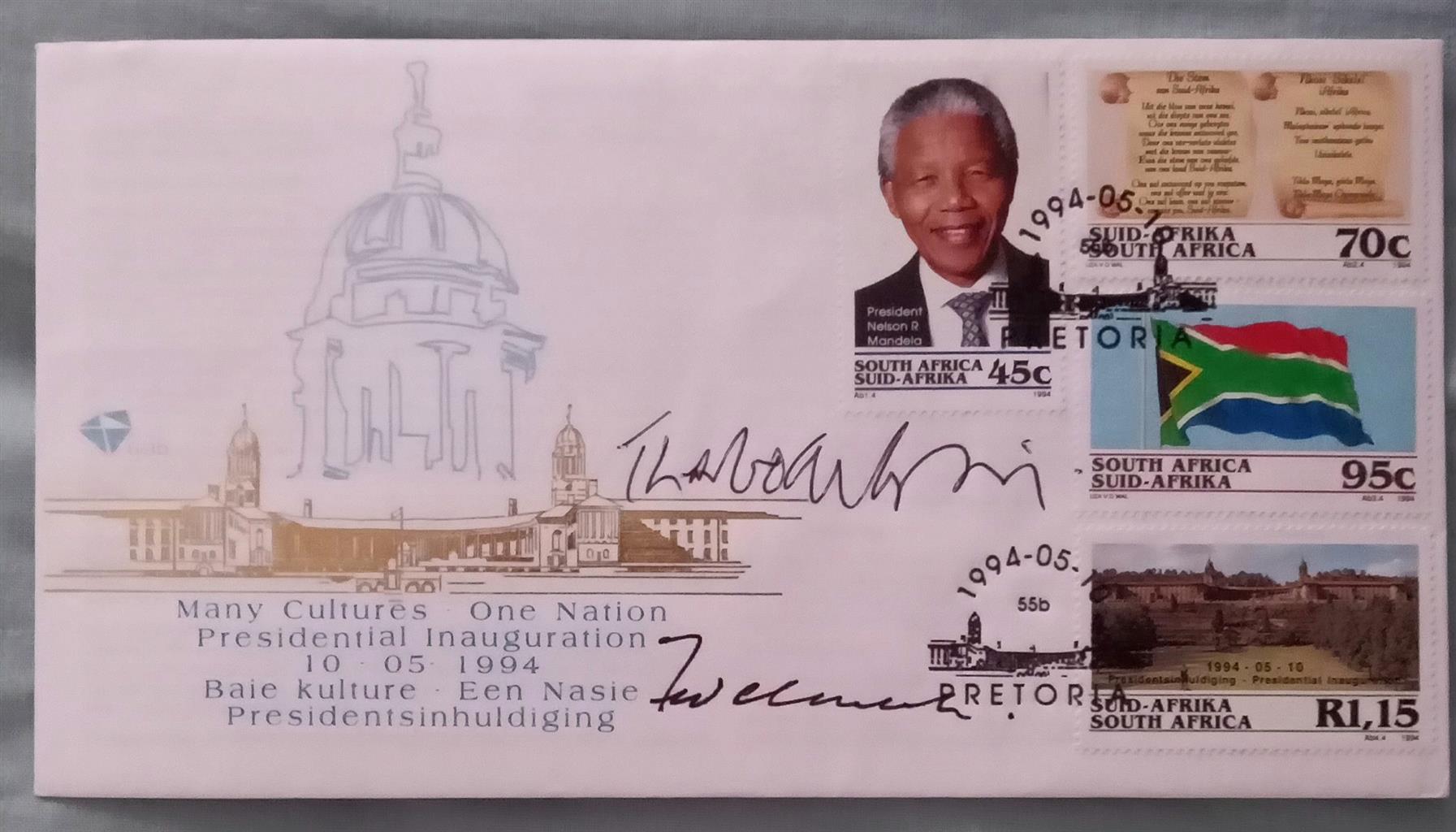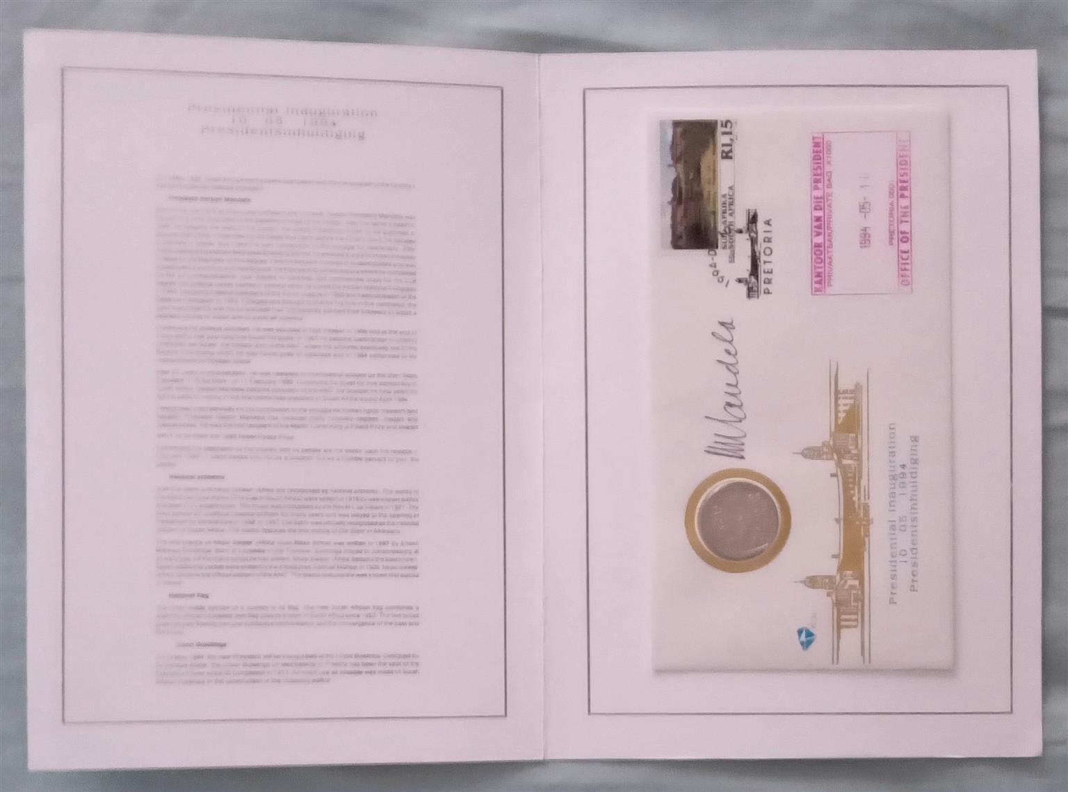 1994 Mandela Original Signed VIP Folder with proof R5 plus COA plus Original signed FDC by 2 x Deputy President's FW de Klerk & Thabo Mbeki