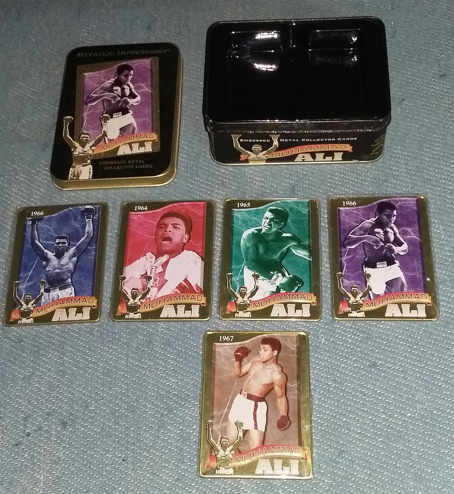 Urgent sale Muhammad Ali 5 original embossed metal collection cards in original packaging for sale. Evaluated price is $1,300 dollars / R23,450.44 Rand's selling price R4,000 O.N.C.O to any collectors make me an offer and no silly amounts I know the value of these card's if interested contact
