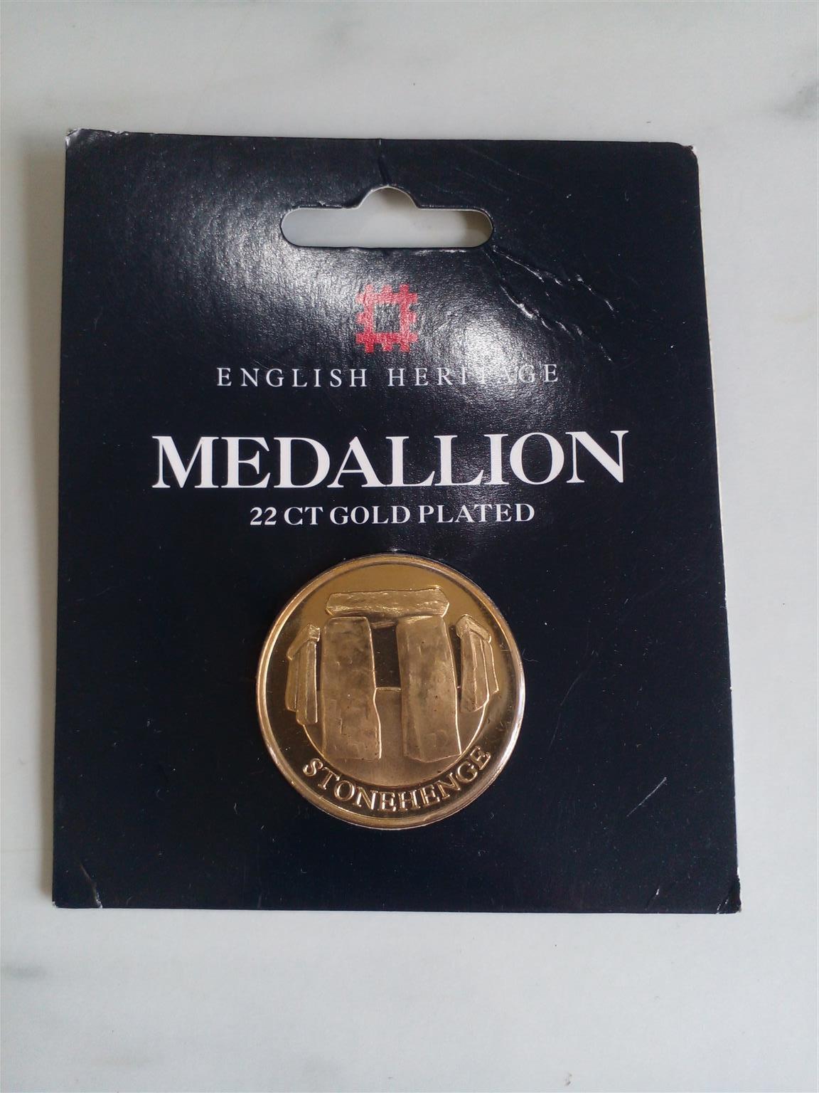 Stonehenge medallion for sale. 22 Carat Gold Plated Medallion