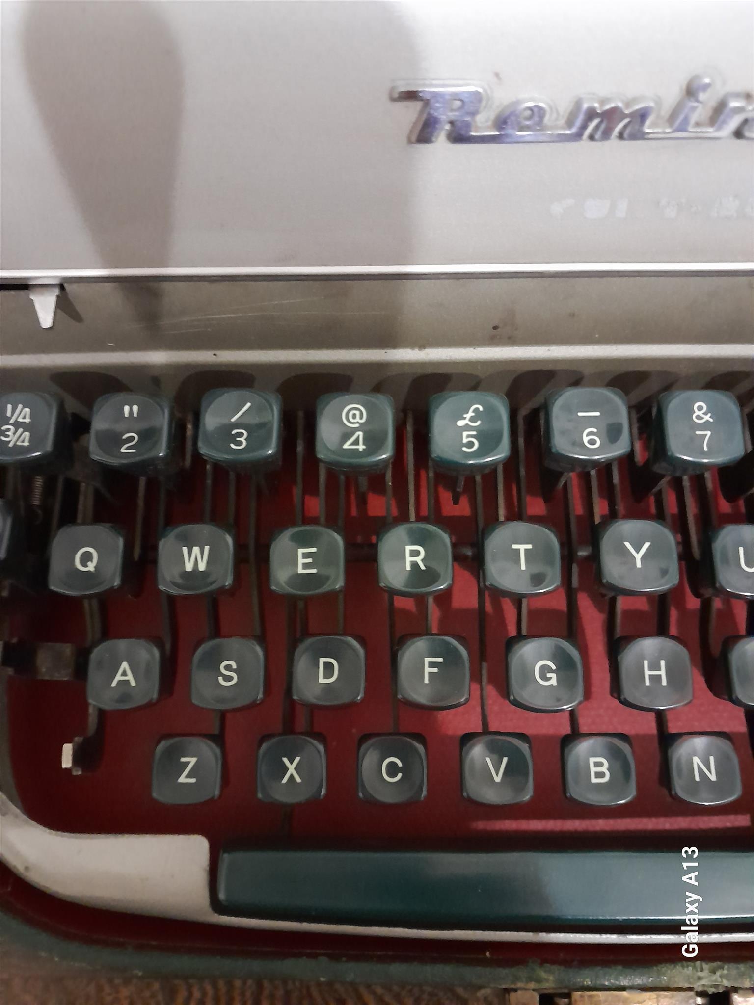 Remington Rand Antique Portable Typewriter, Model Quiet-Riter Miracle Tab, made in England (with imperial characters), Carry Case, all keys work, needs new ribbons.