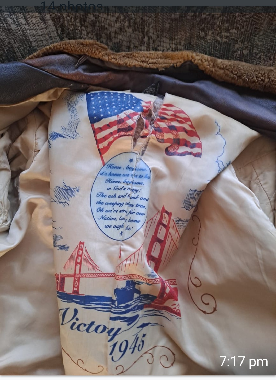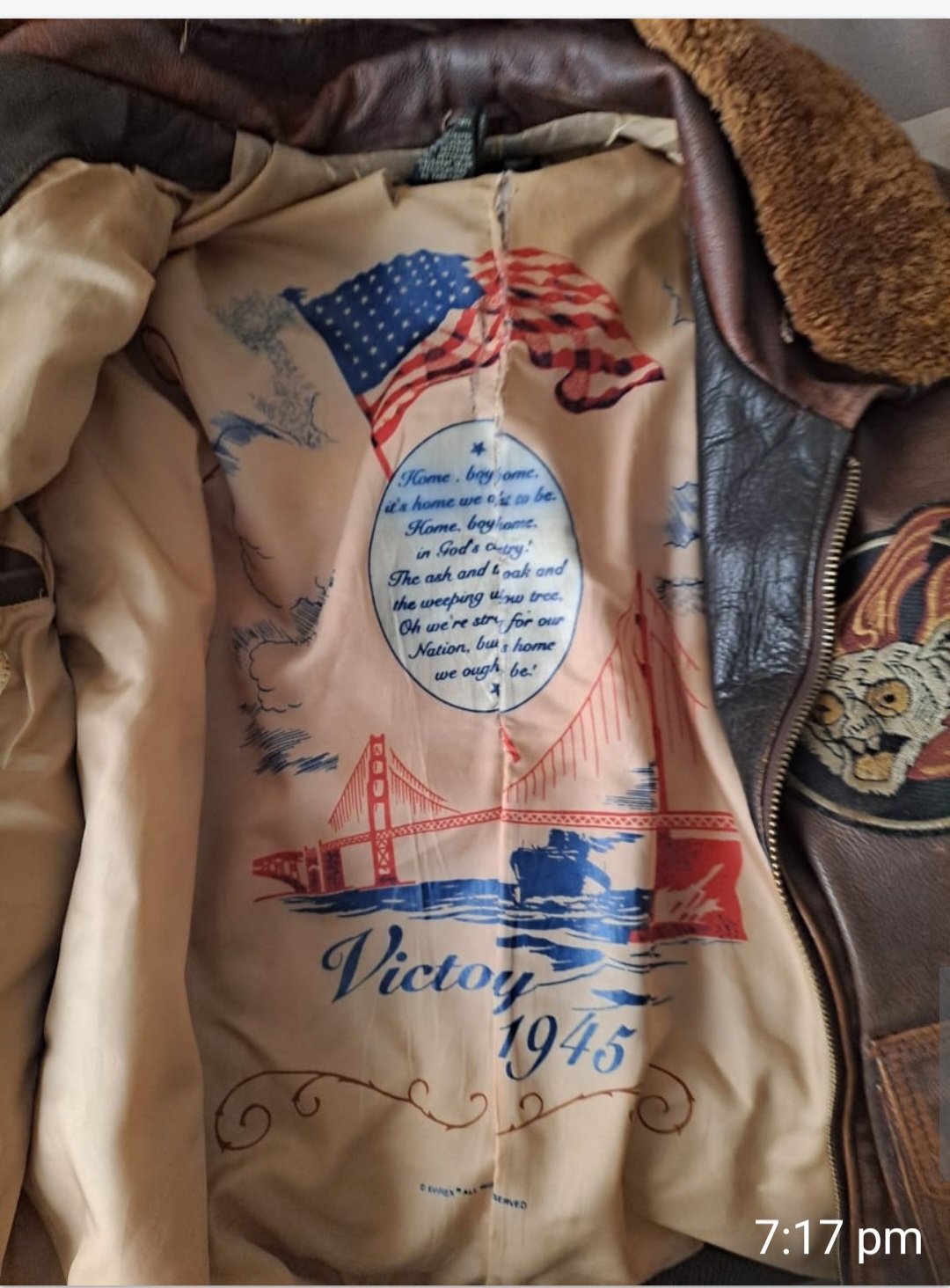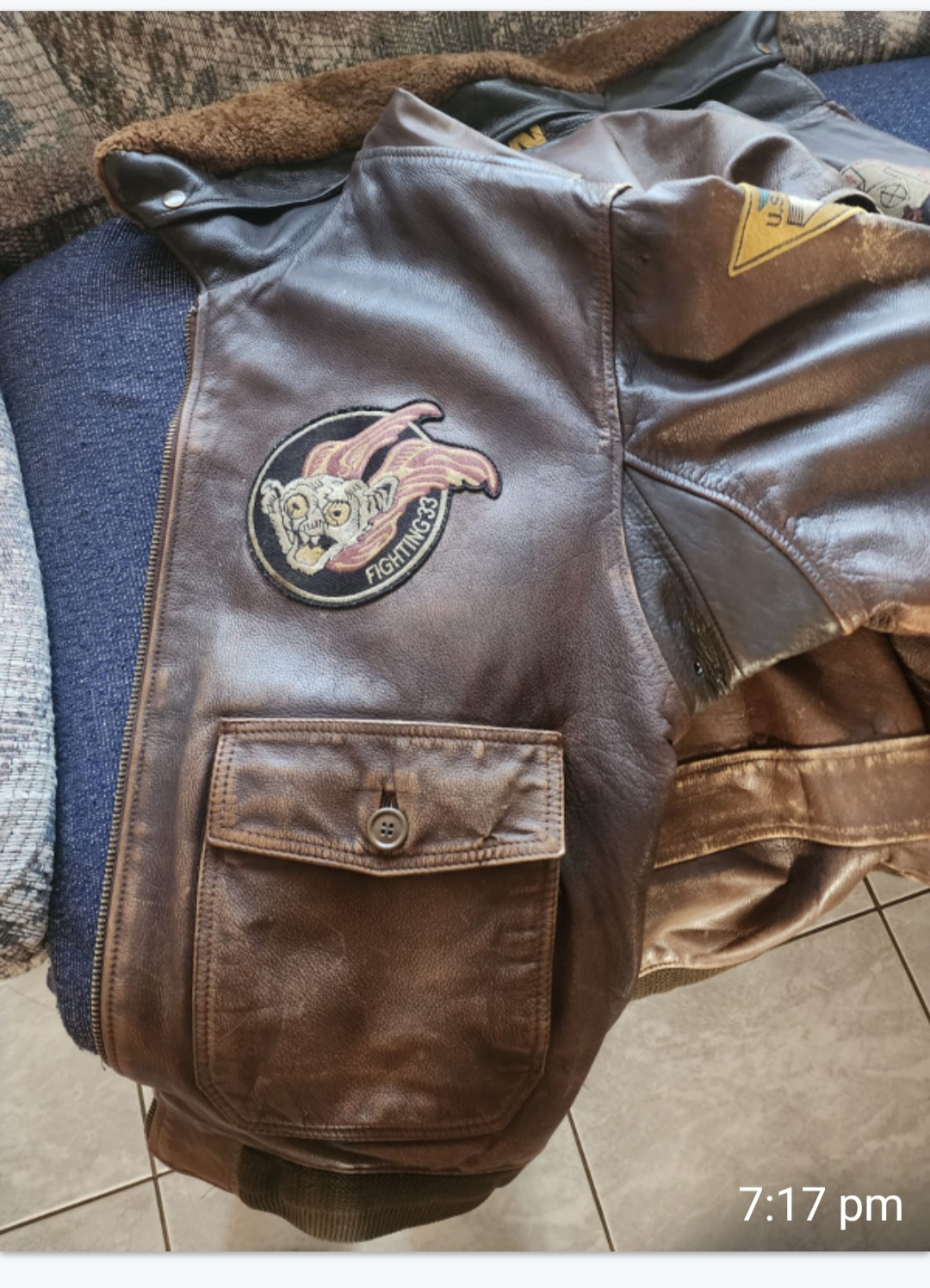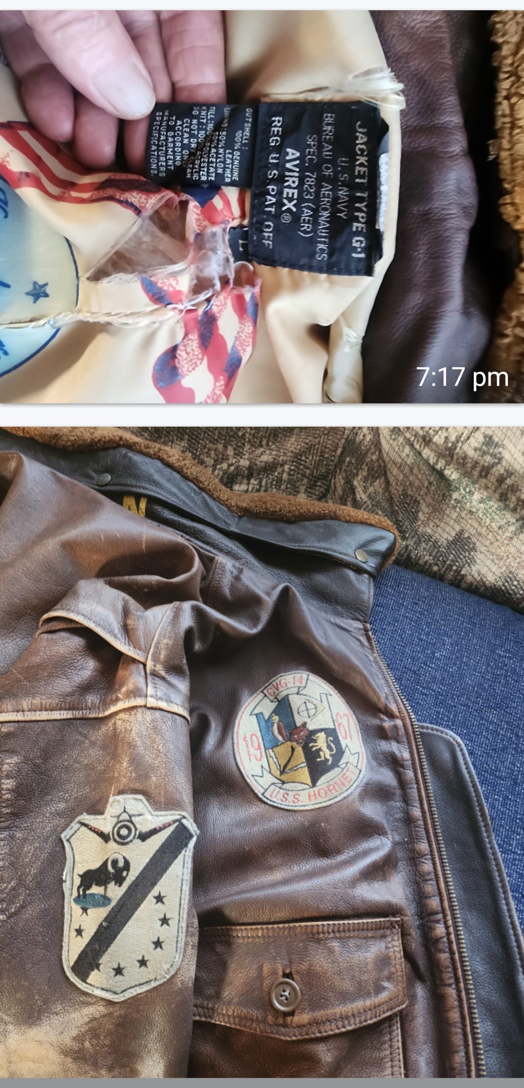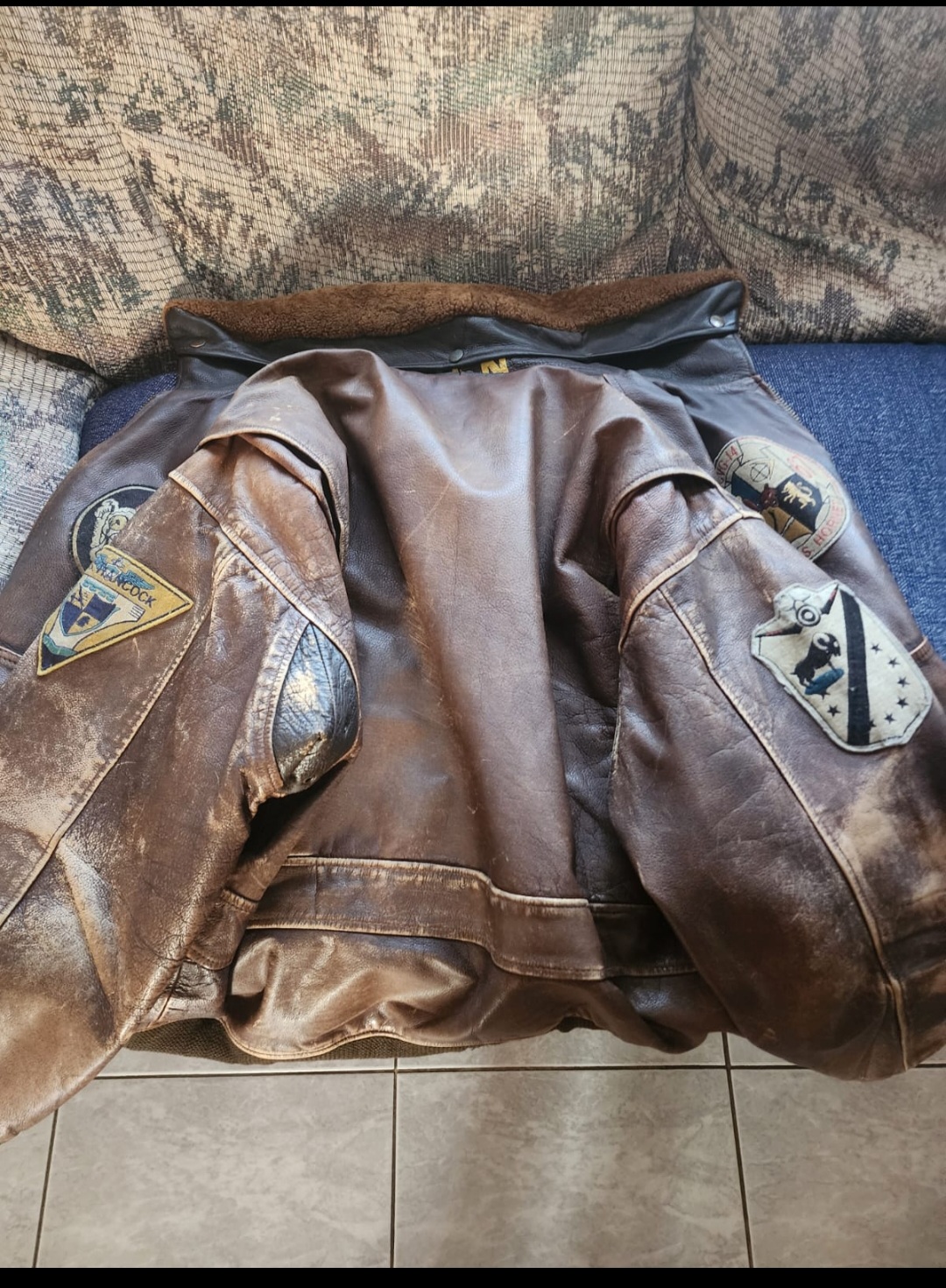 Wearable collectors item navy father and son avirex leather bomber jacket. Father used it in the 2nd world War and it was used later by the son. Size large. Market value R18000.00 Selling for R8000.00 negotiable.