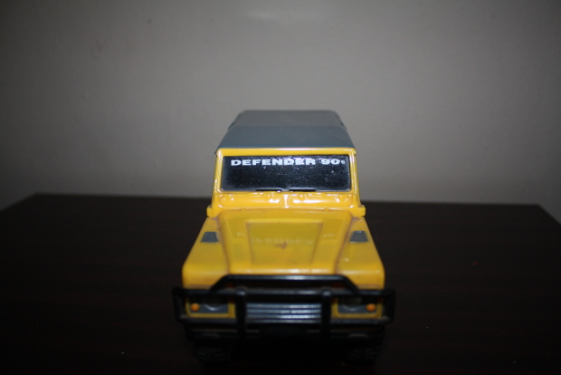 Land Rover Defender 90. Yellow with grey top. Plastic. Good condition. R 250