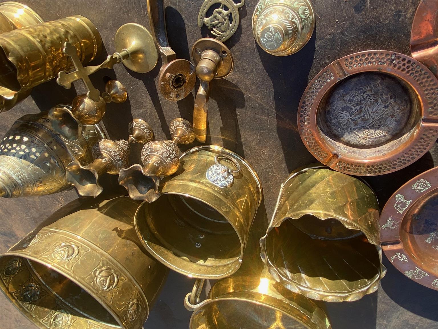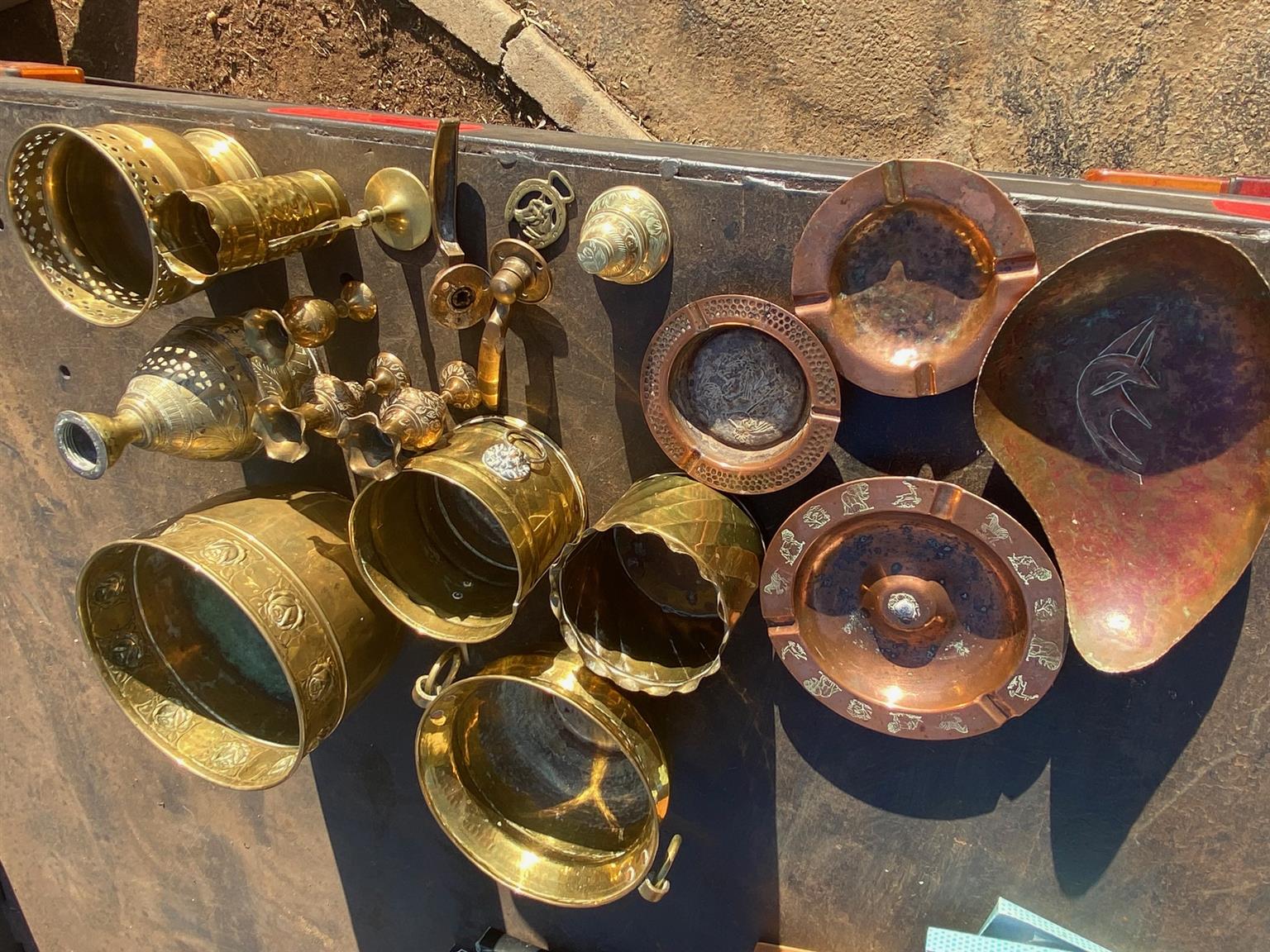 Ashtrays, pot plants, vases, cross, planters, etc Antique, Vintage Copper & Brass 2 x door open handles.
